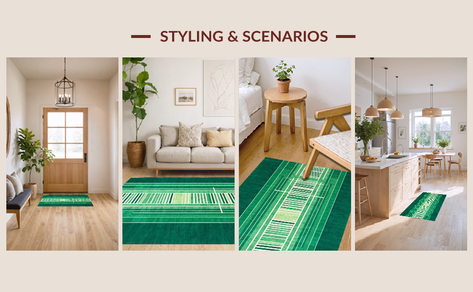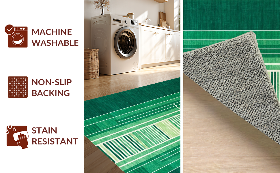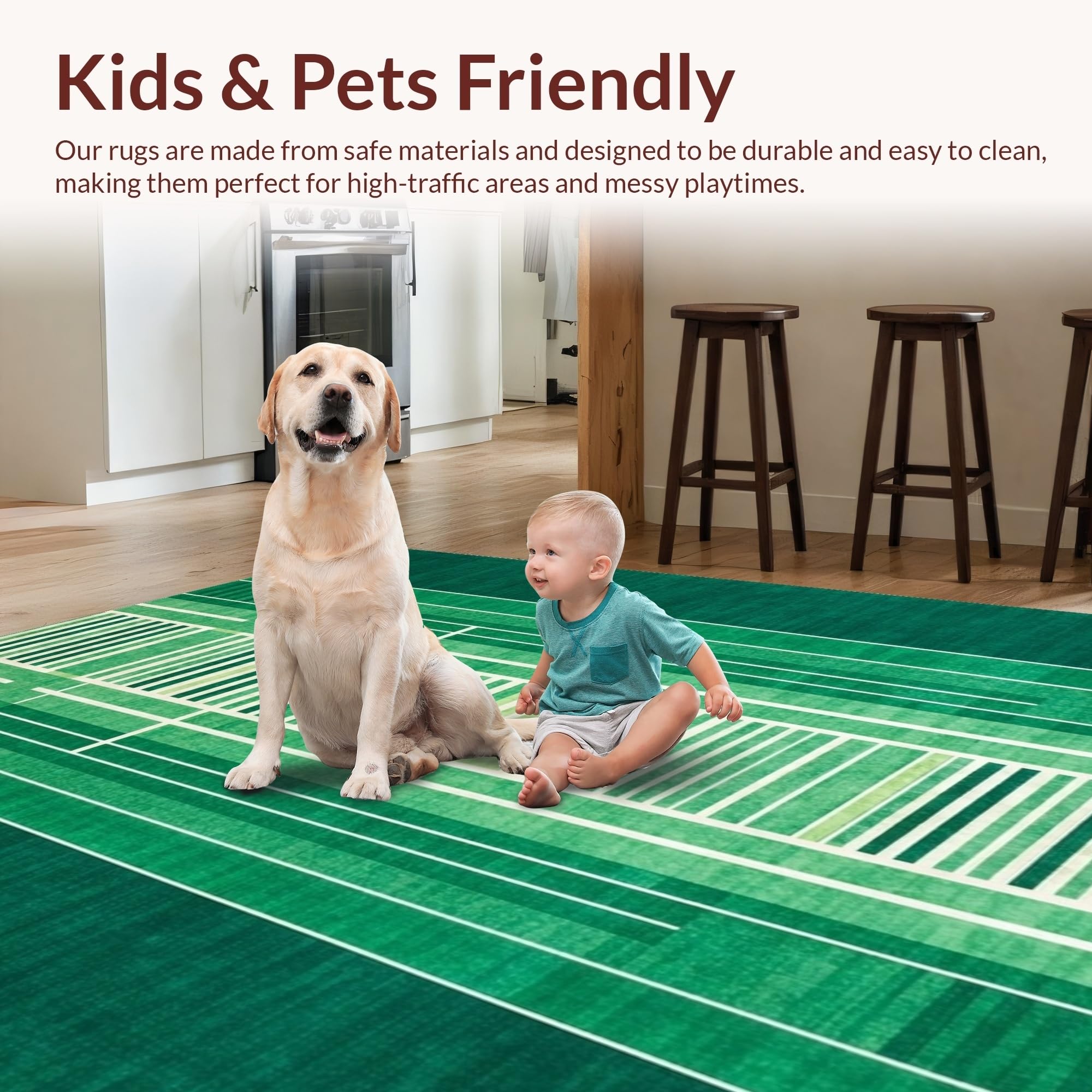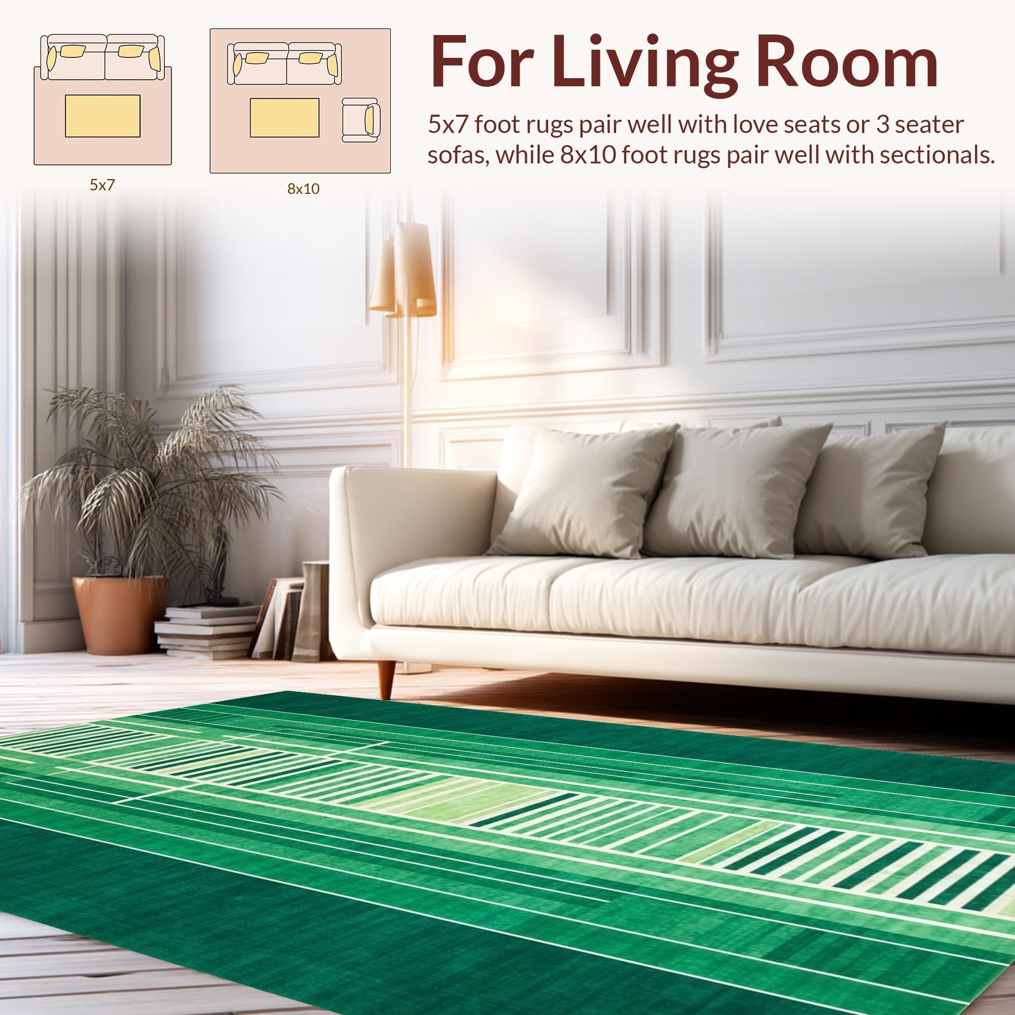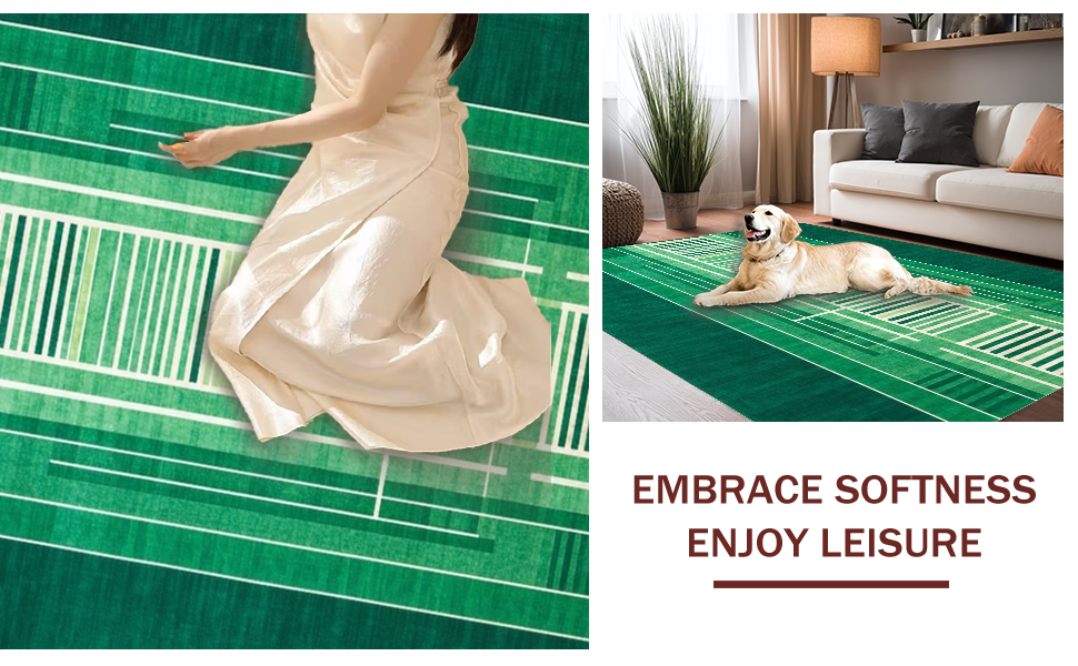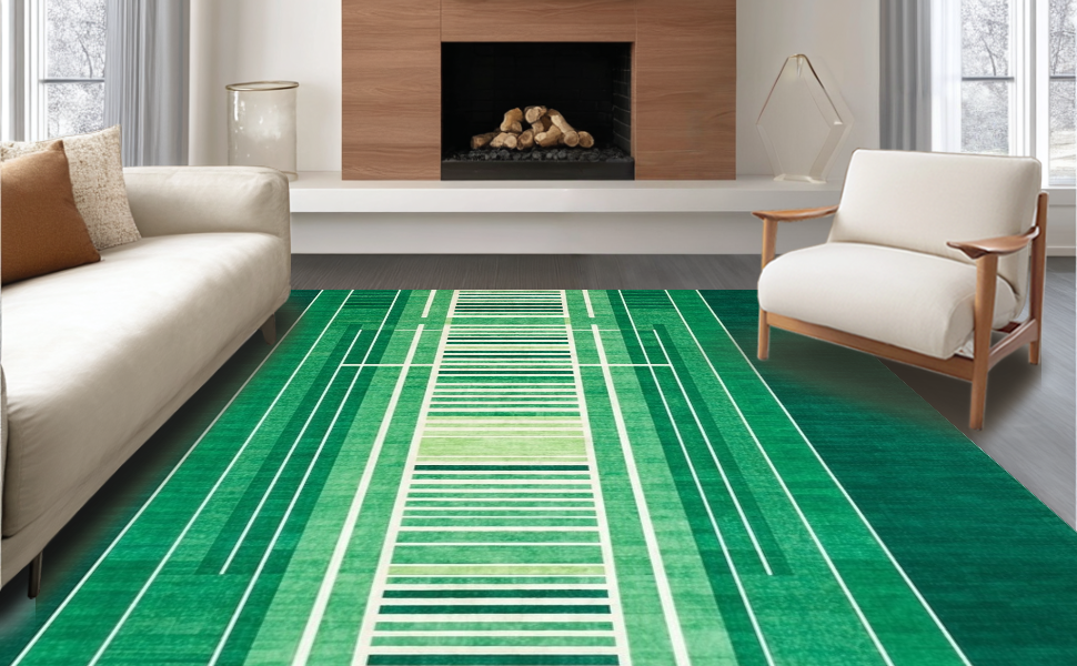 Ultra Soft Area Rug, Non Slip, Stain Resistant, Washable Area Rugs for Living Room, Bedroom, Refreshing Geometric Movement Theme(Green) Overview:
