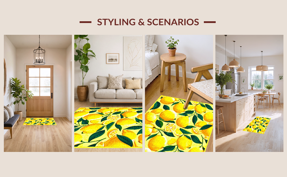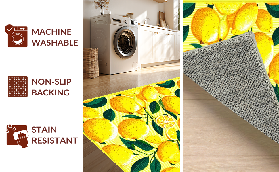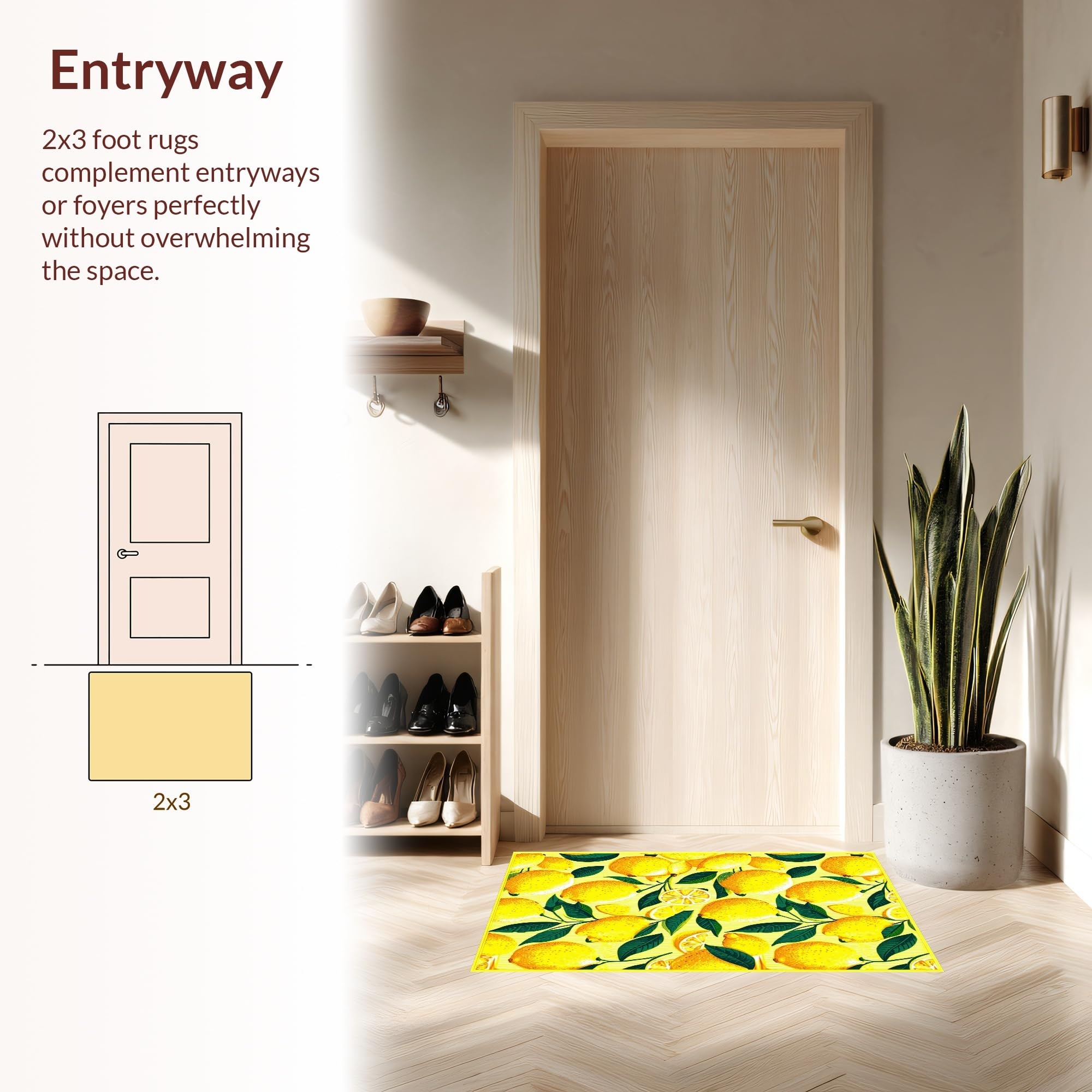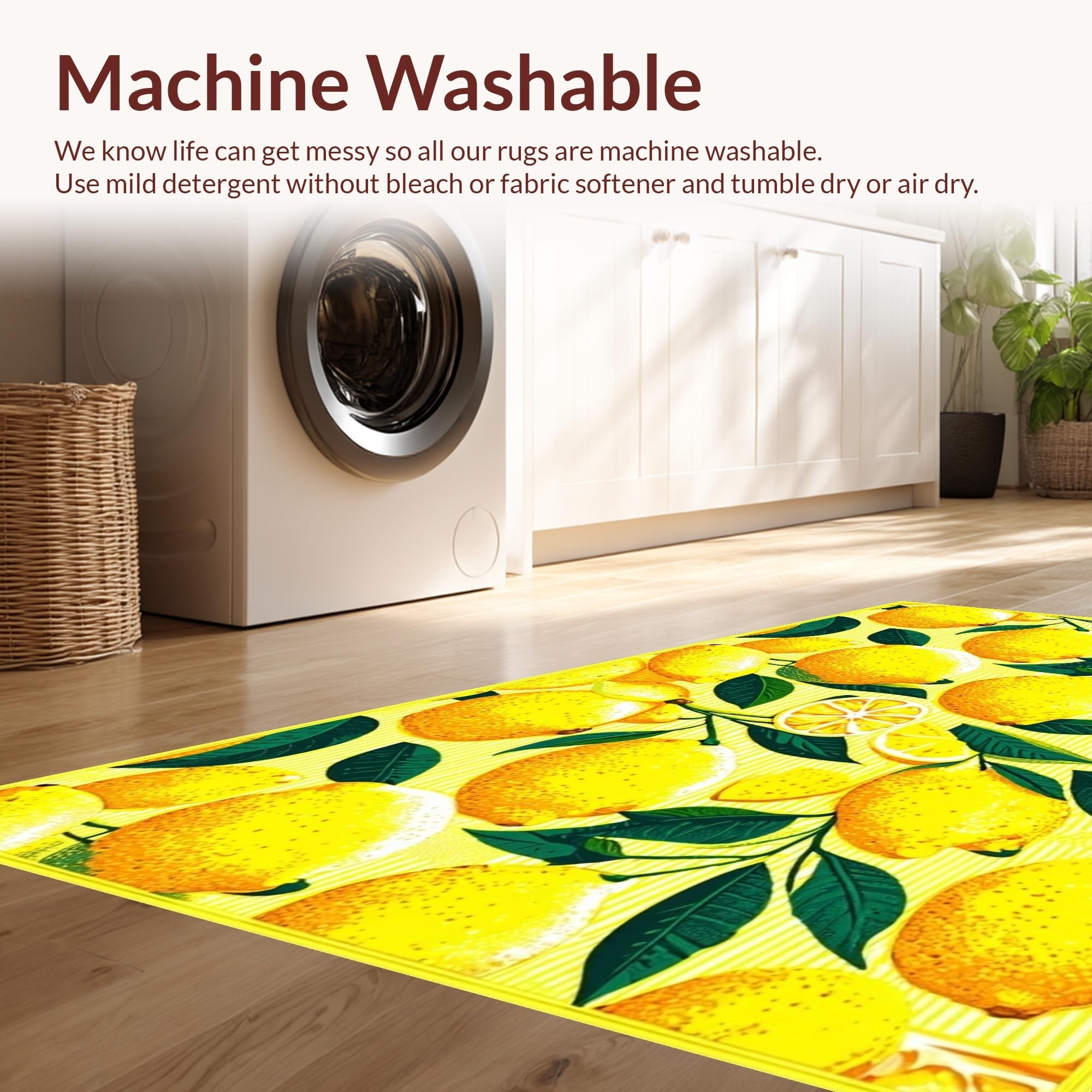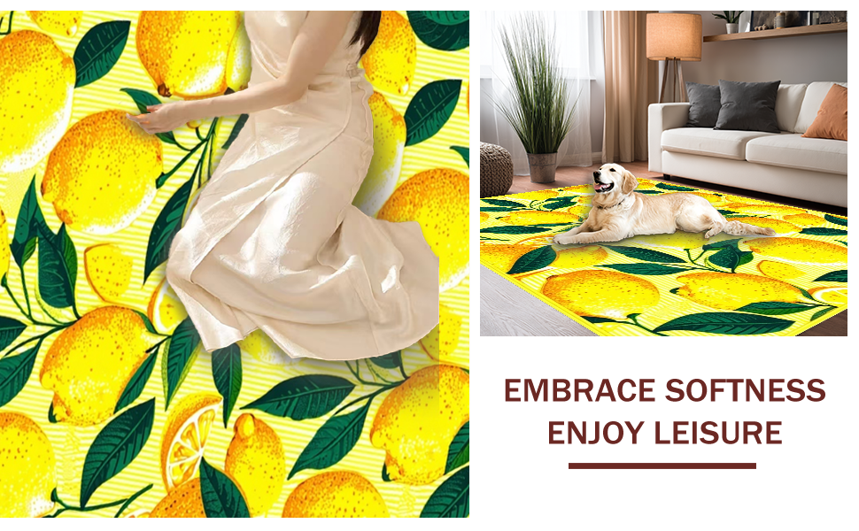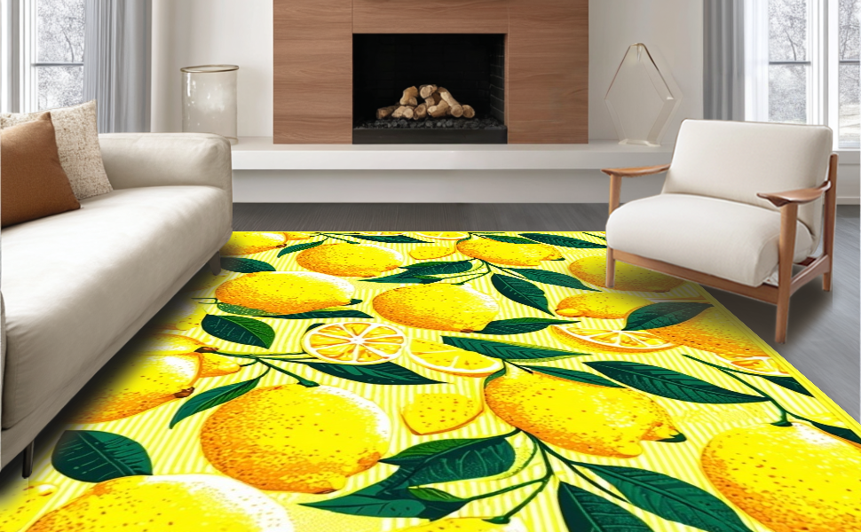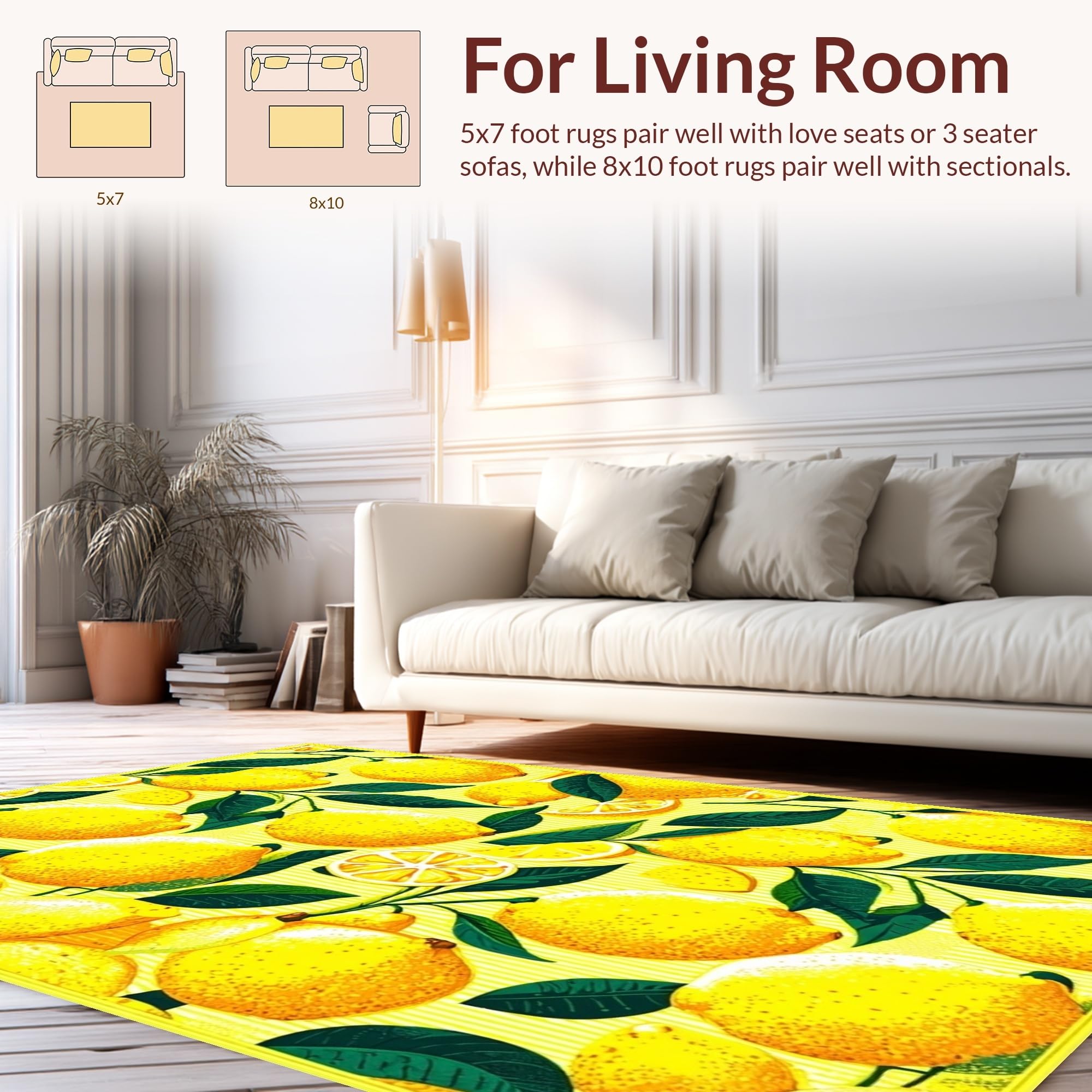 Ultra Soft Area Rug, Non Slip, Stain Resistant, Washable Area Rugs for Living Room, Bedroom, Refreshing Springtime Lemon Vibe(Yellow) Overview:
