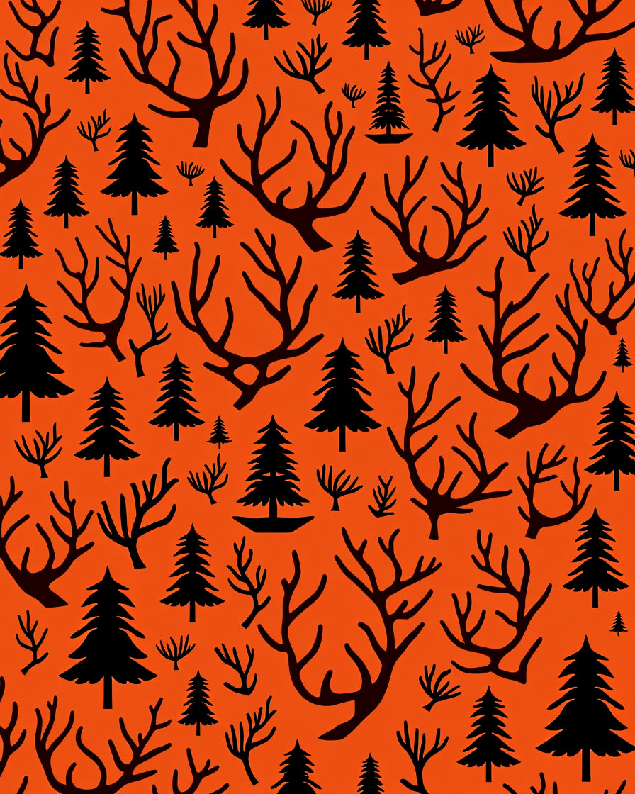 Reindeer Antler with Evergreen Tree Forest Scene(Orange)