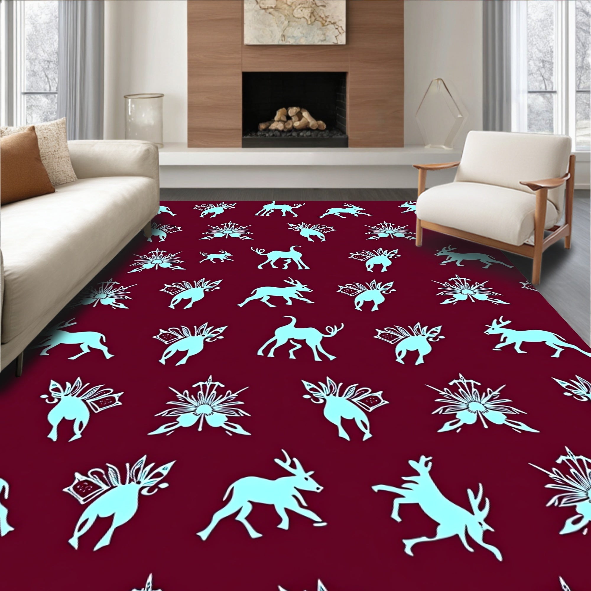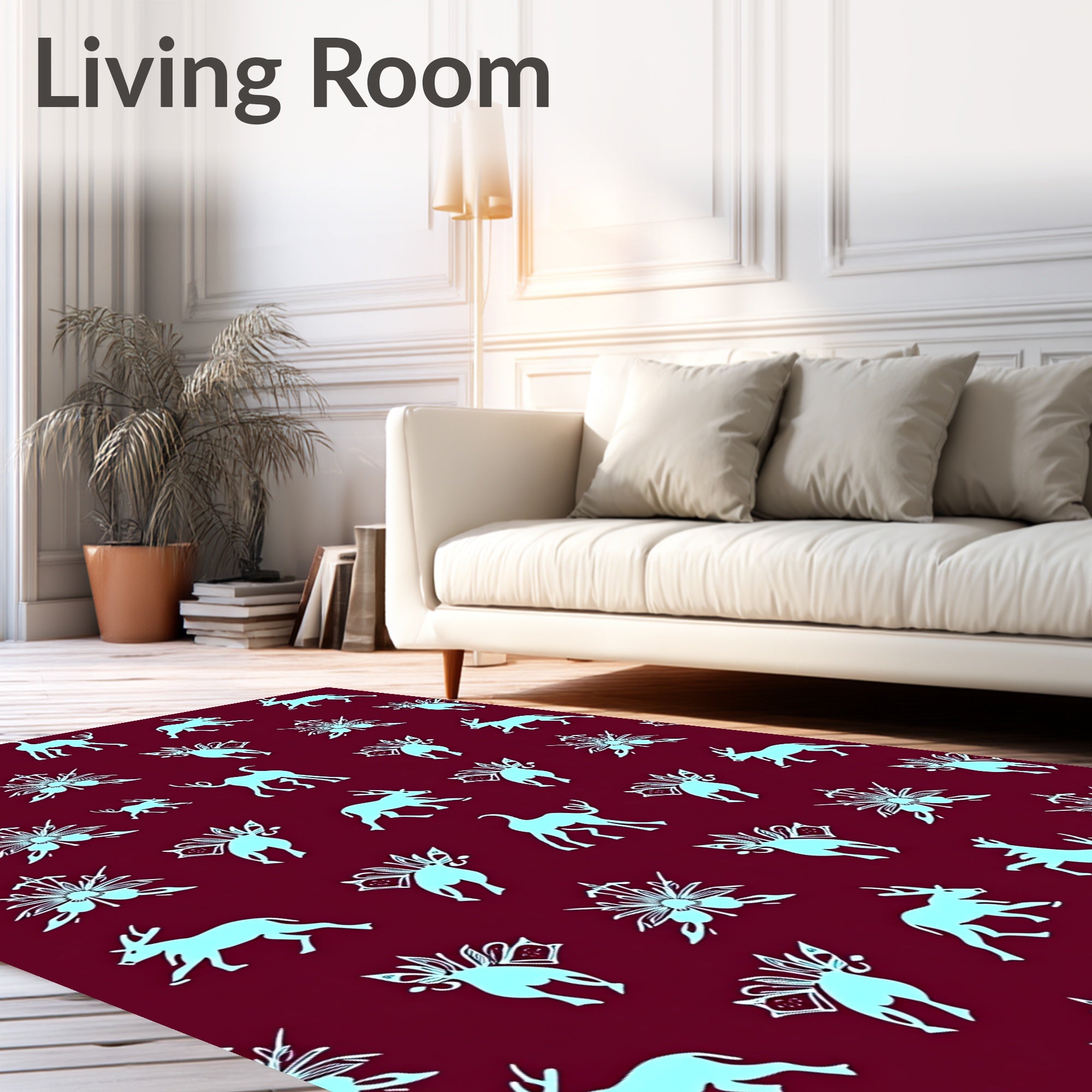 Ultra Soft Area Rug, Non Slip, Stain Resistant, Washable Area Rugs for Living Room, Bedroom, Reindeer Nordic Accent(Red) Overview: