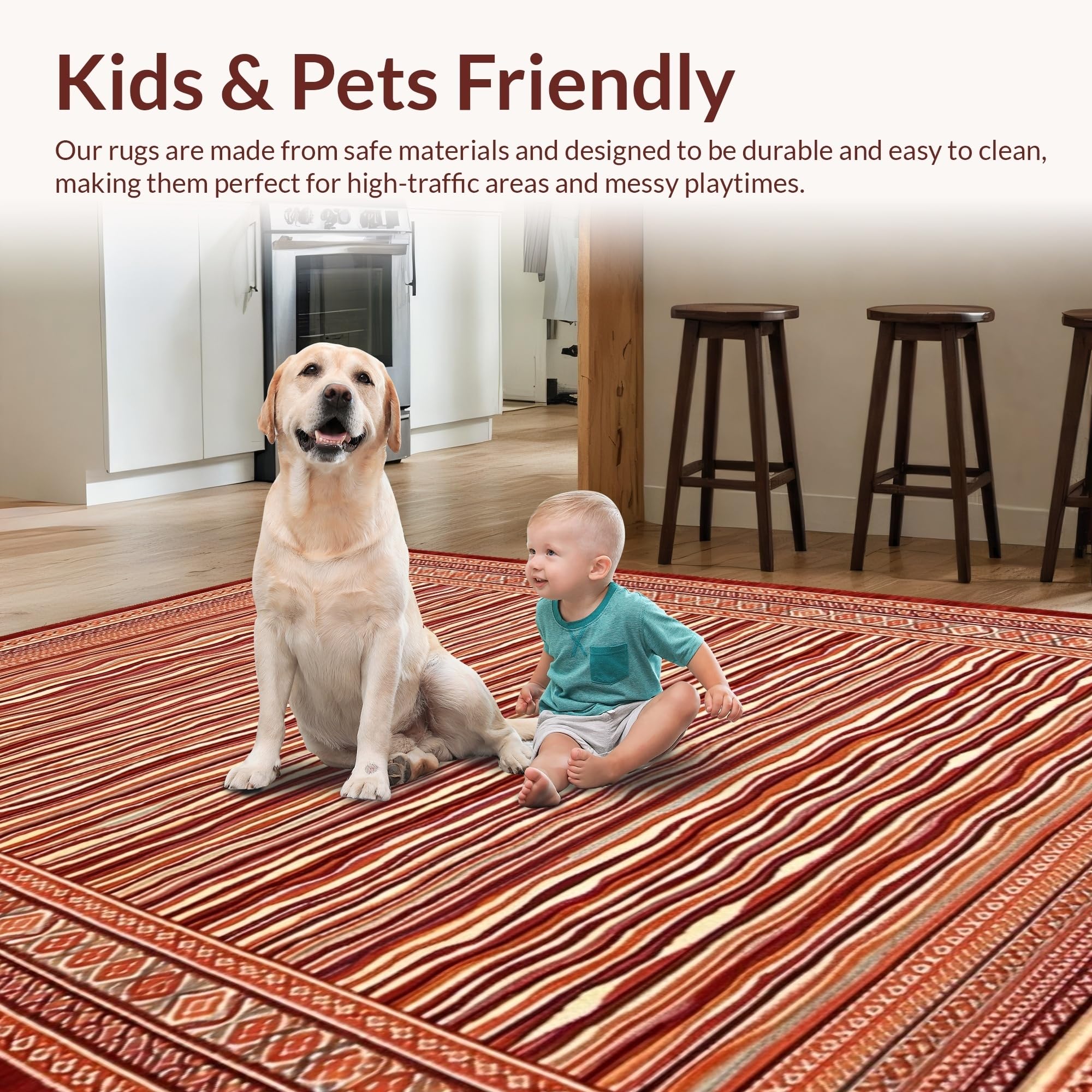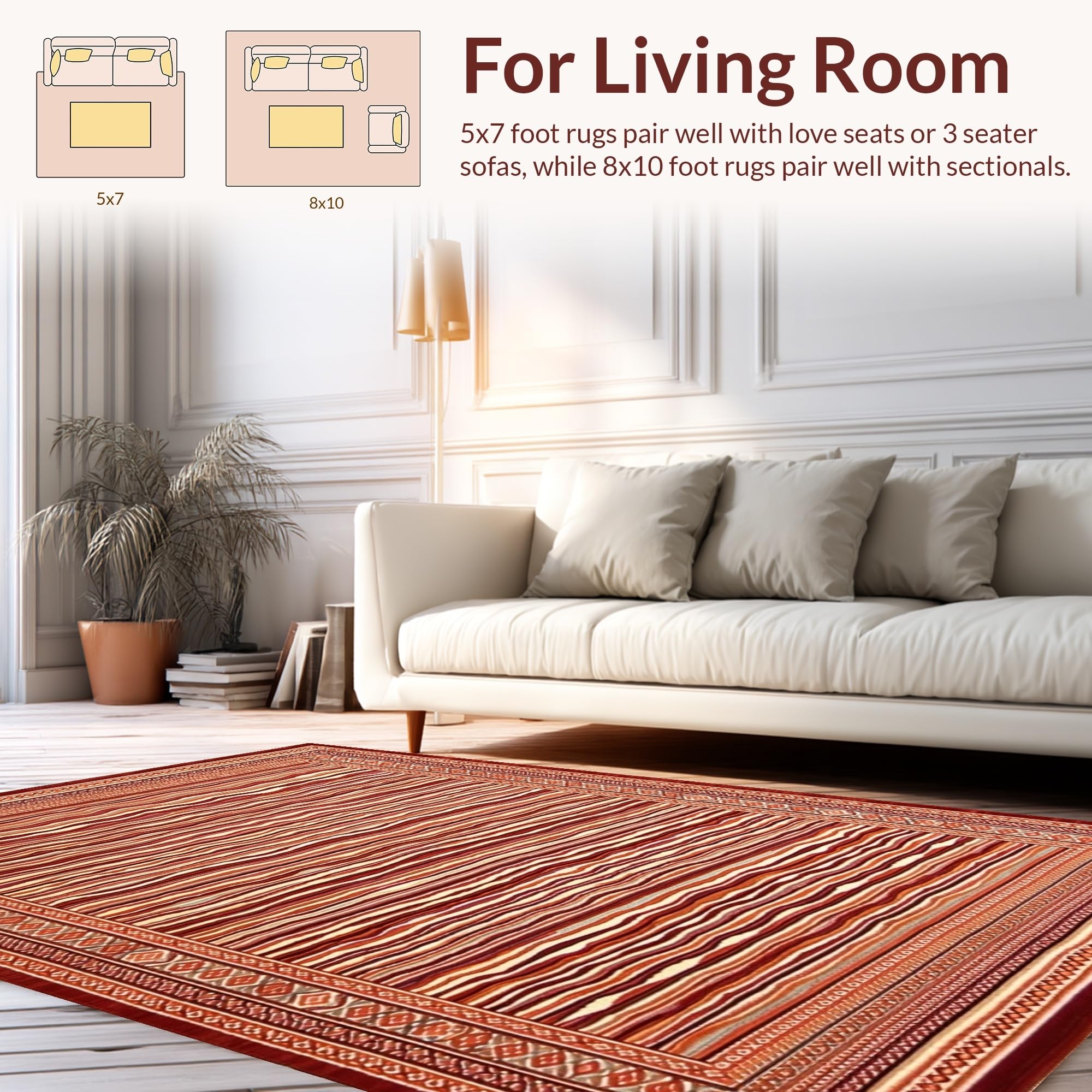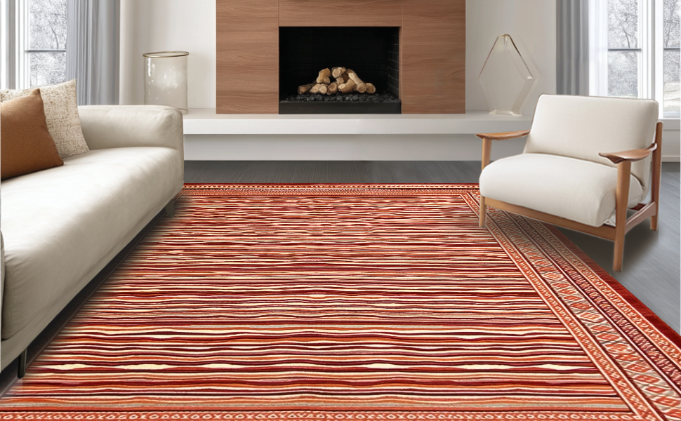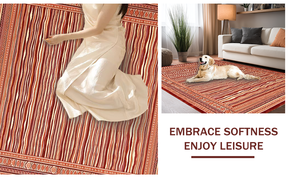 Ultra Soft Area Rug, Non Slip, Stain Resistant, Washable Area Rugs for Living Room, Bedroom, Retro Abstract Melting Design(Red) Overview: