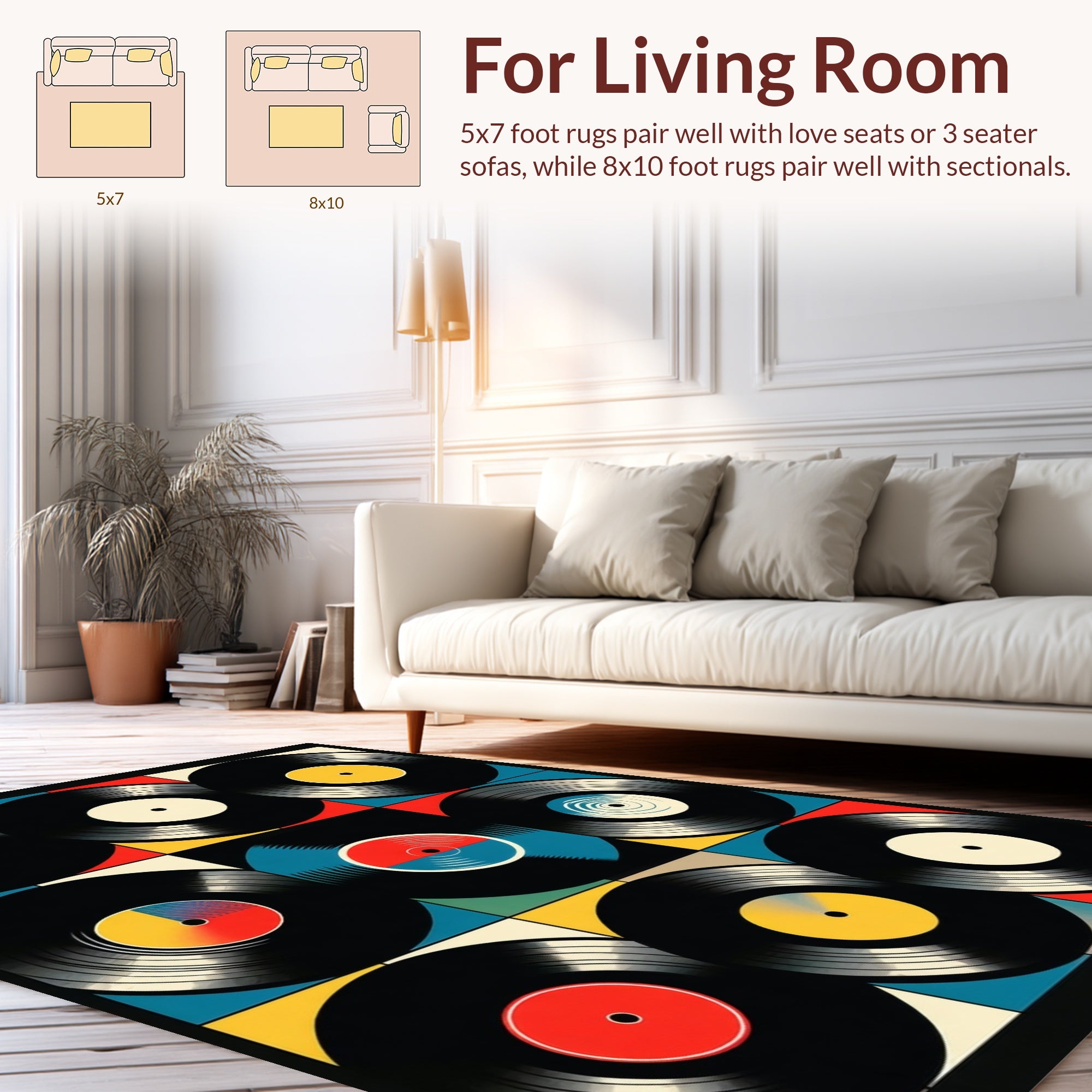 Flatwoven High Traffic Area Rug, Retro Artistic Vinyl Record Design, Non Slip, Stain Resistant, Washable Area Rugs for Living Room, Bedroom (Black) Overview: