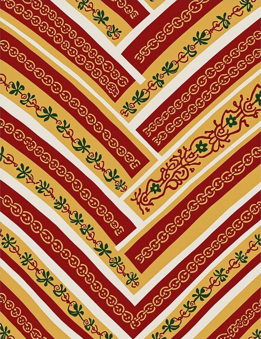 Retro Autumn Chevron with Delicate Floral Filigree Details(Burgundy)
