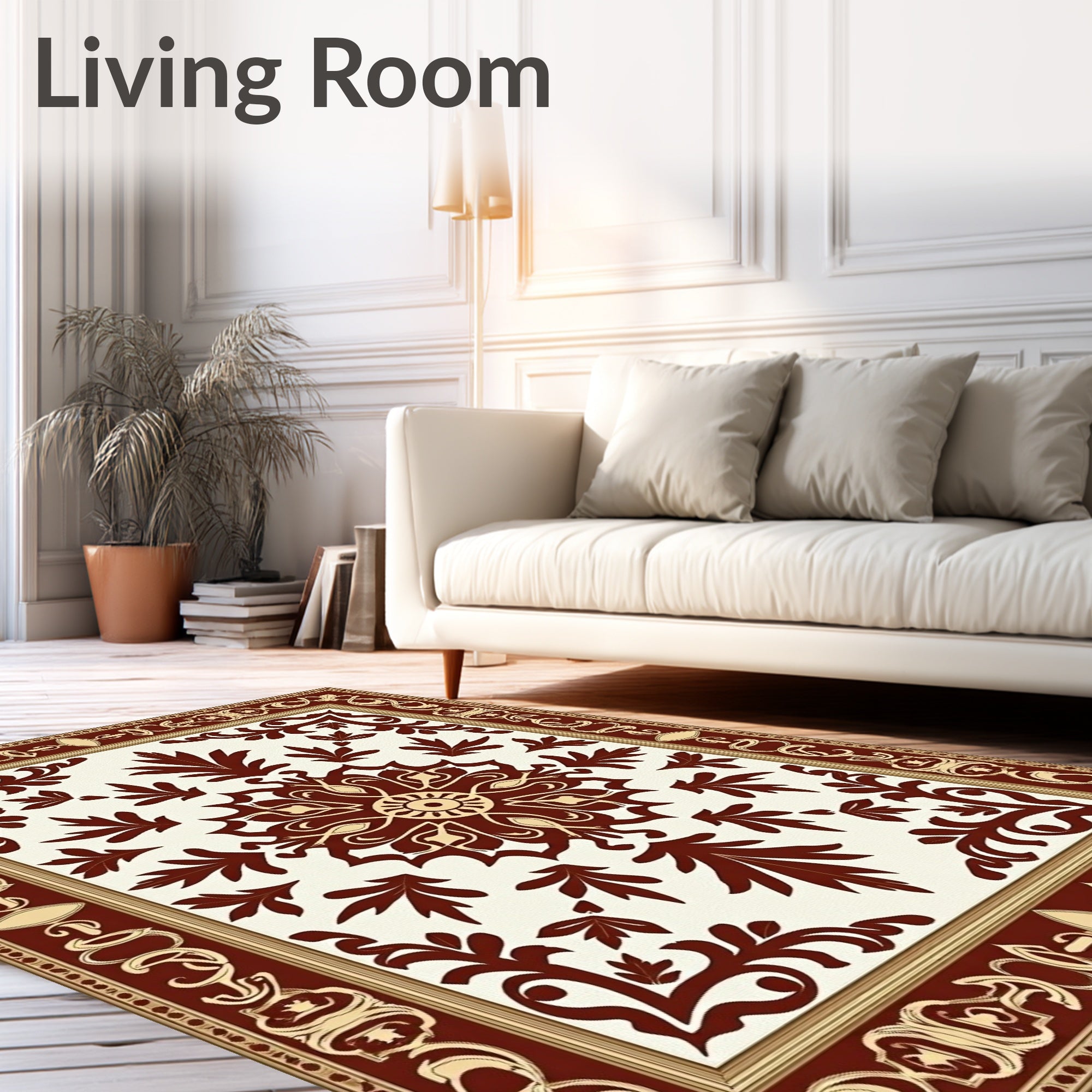 Ultra Soft Area Rug, Non Slip, Stain Resistant, Washable Area Rugs for Living Room, Bedroom, Retro Autumn Medallion with Interlocking Vine Motifs(Brown) Overview: