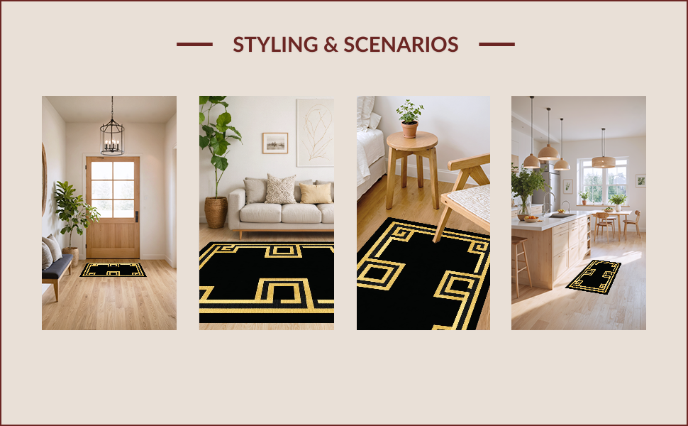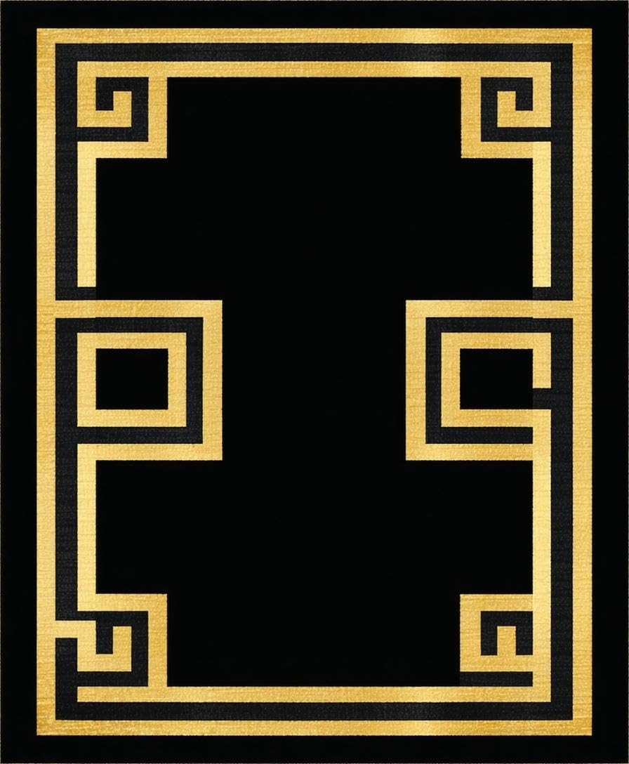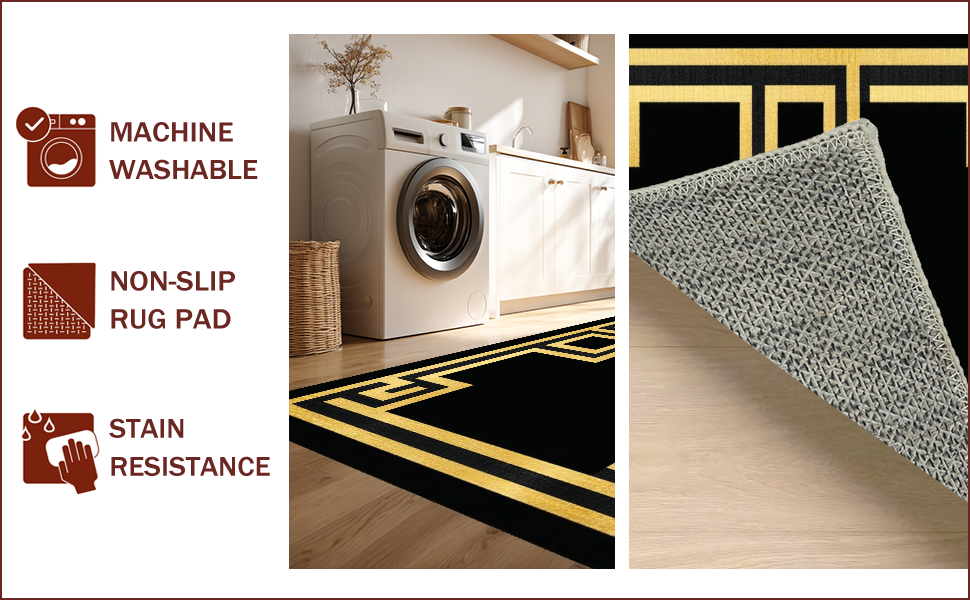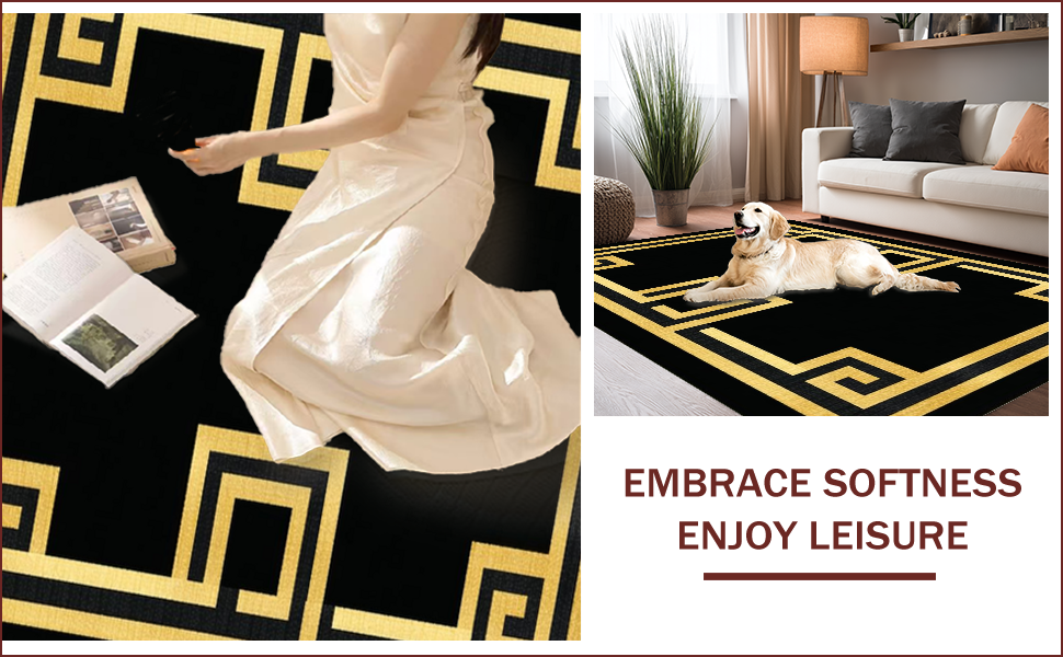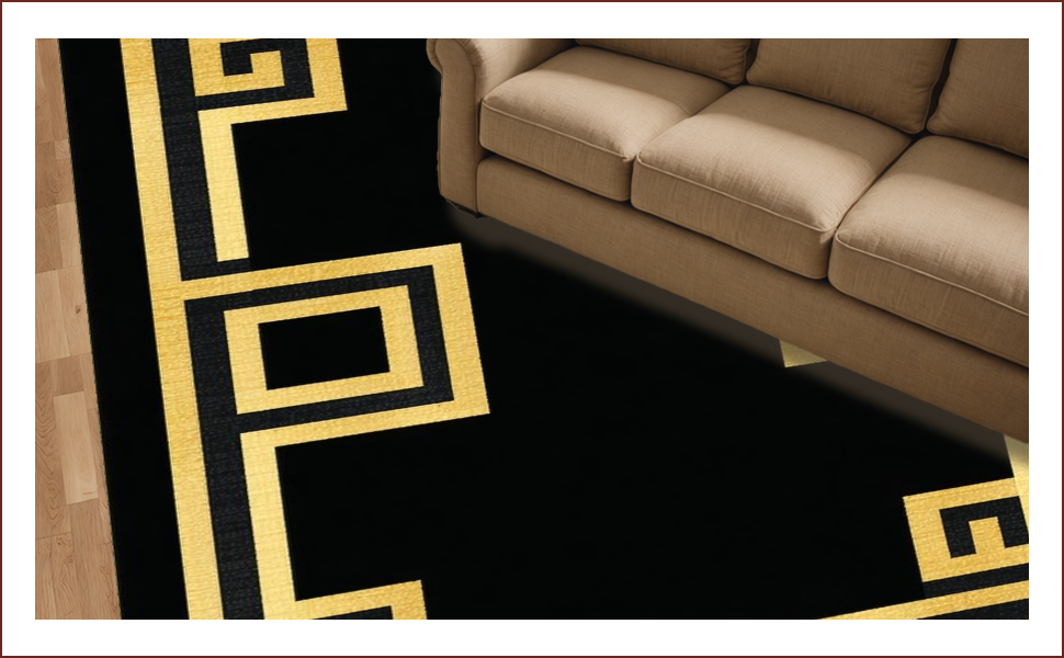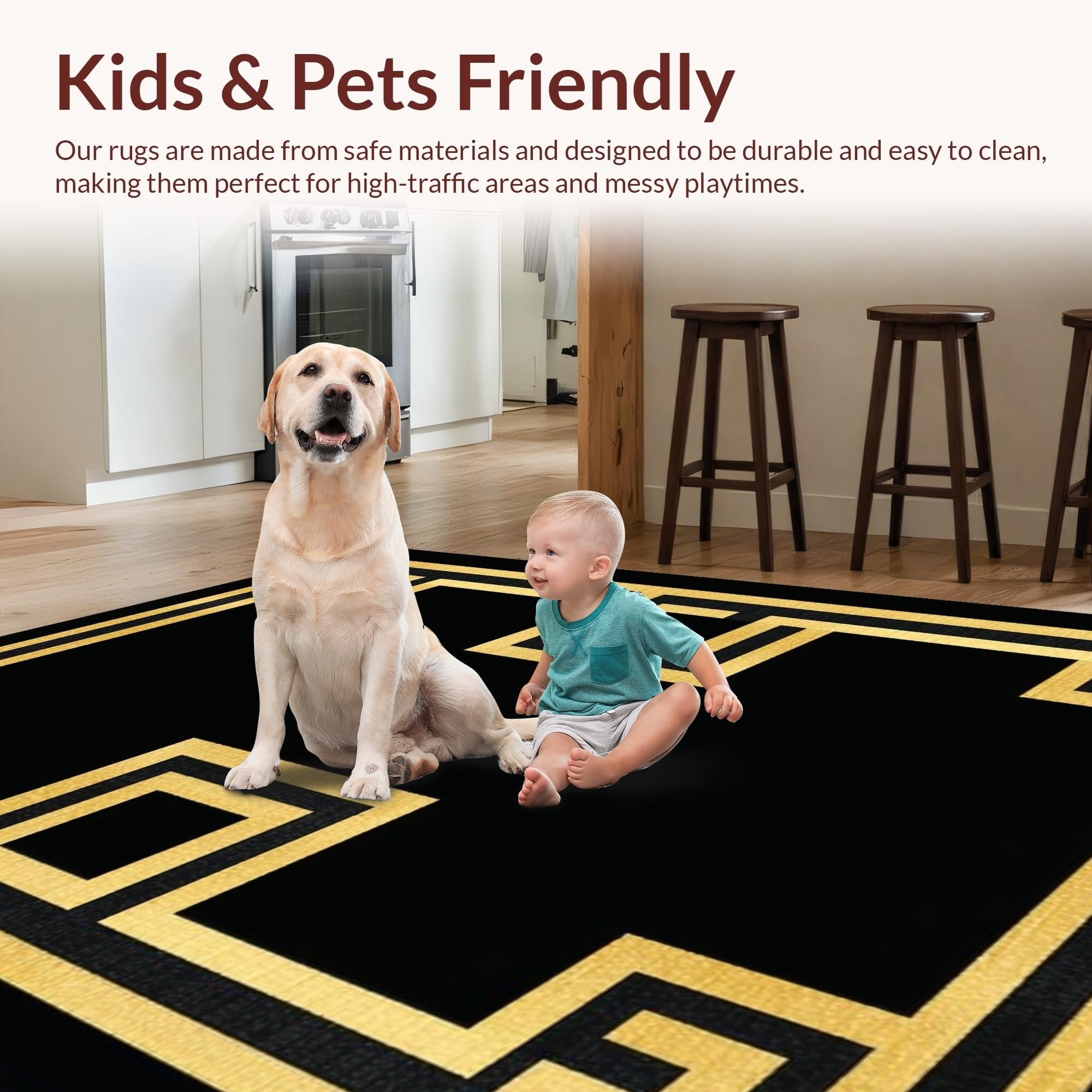 Ultra Soft Area Rug, Non Slip, Stain Resistant, Washable Area Rugs for Living Room, Bedroom, Retro Black Gold Geometric Elegance(Black) Overview: