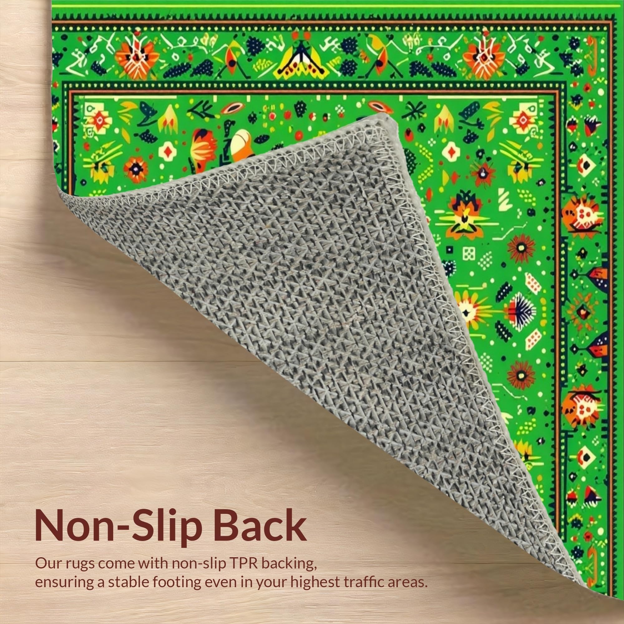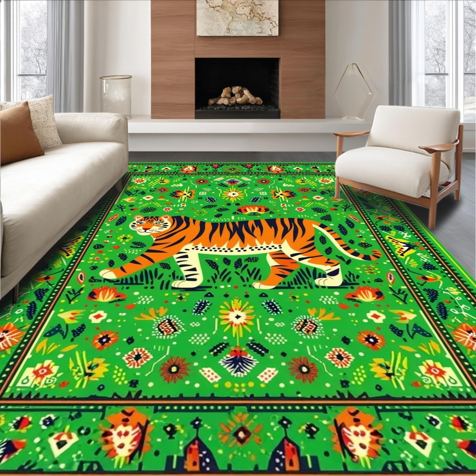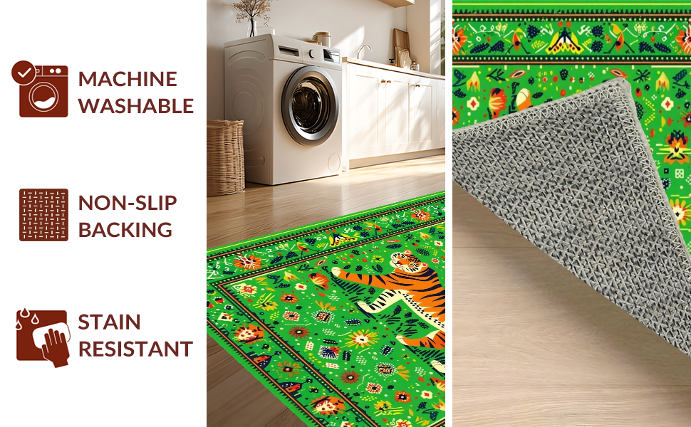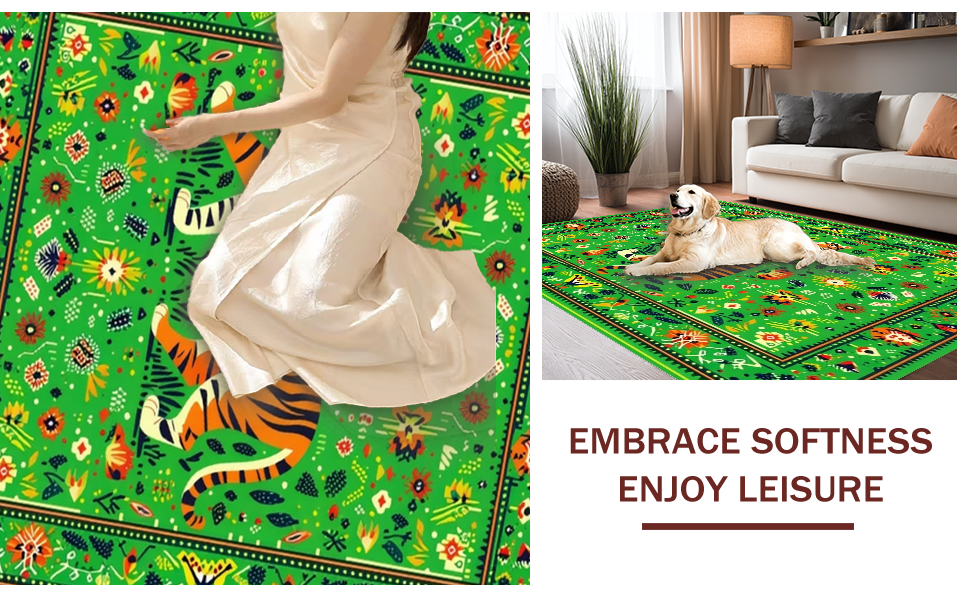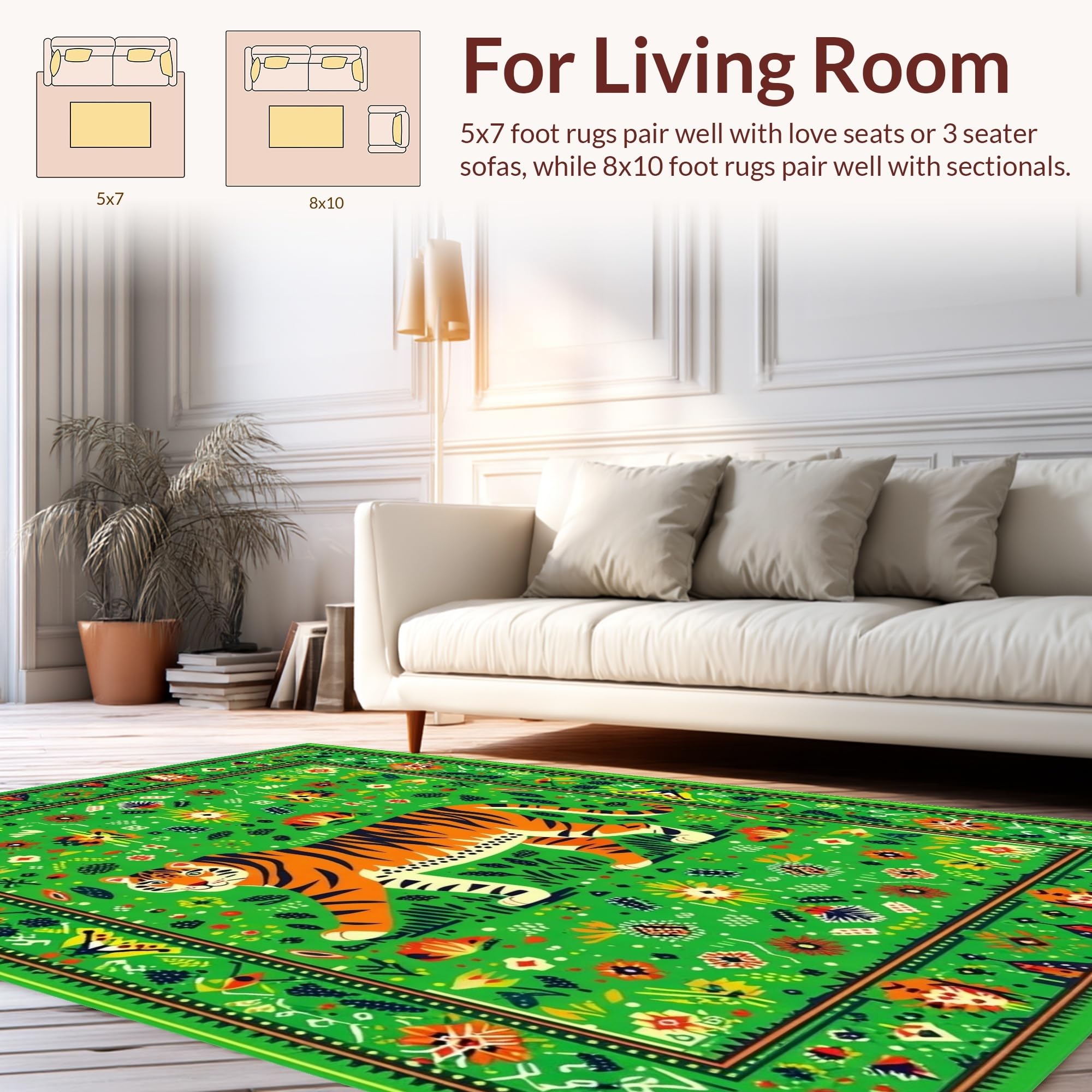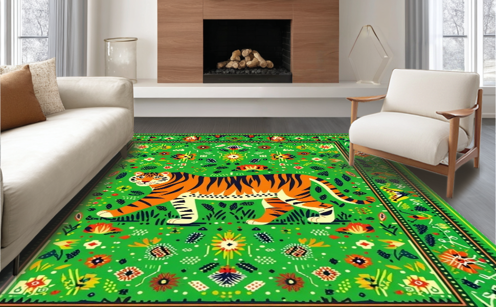 Ultra Soft Area Rug, Non Slip, Stain Resistant, Washable Area Rugs for Living Room, Bedroom, Retro Colorful Jungle Theme(Green) Overview: