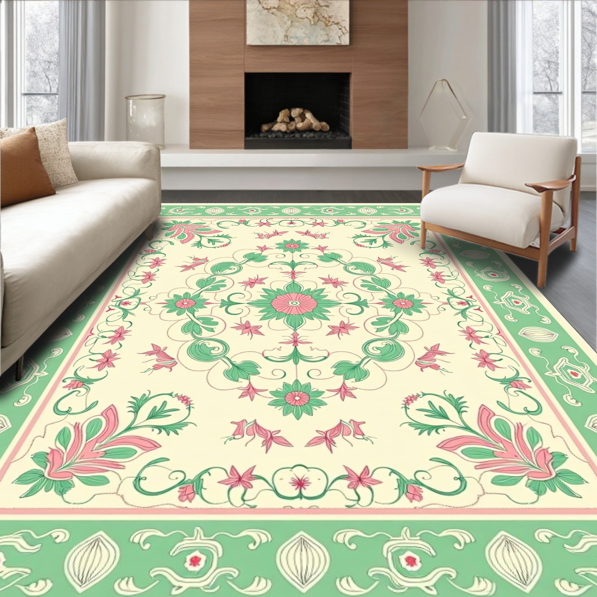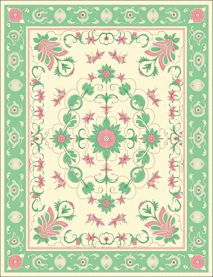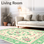 Flatwoven High Traffic Area Rug, Retro Floral Damask Interlocking Vinework Classic Motif Arrangement, Non Slip, Stain Resistant, Washable Area Rugs for Living Room, Bedroom (Green) Overview:
