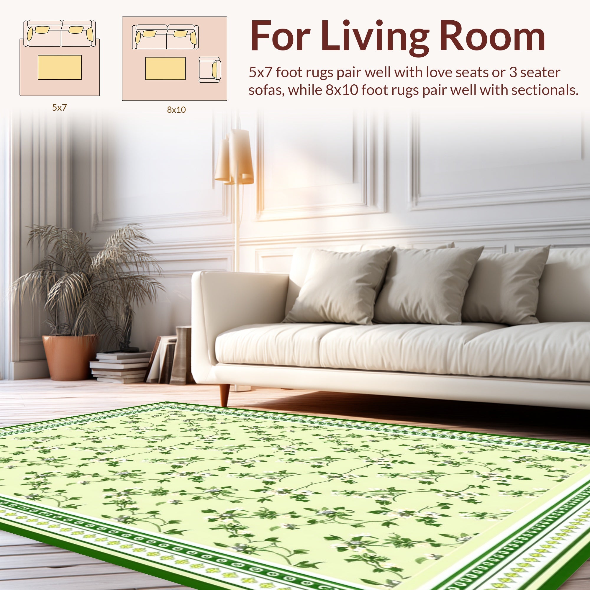 Flatwoven High Traffic Area Rug, Retro Floral Delight, Non Slip, Stain Resistant, Washable Area Rugs for Living Room, Bedroom (Ivory) Overview: