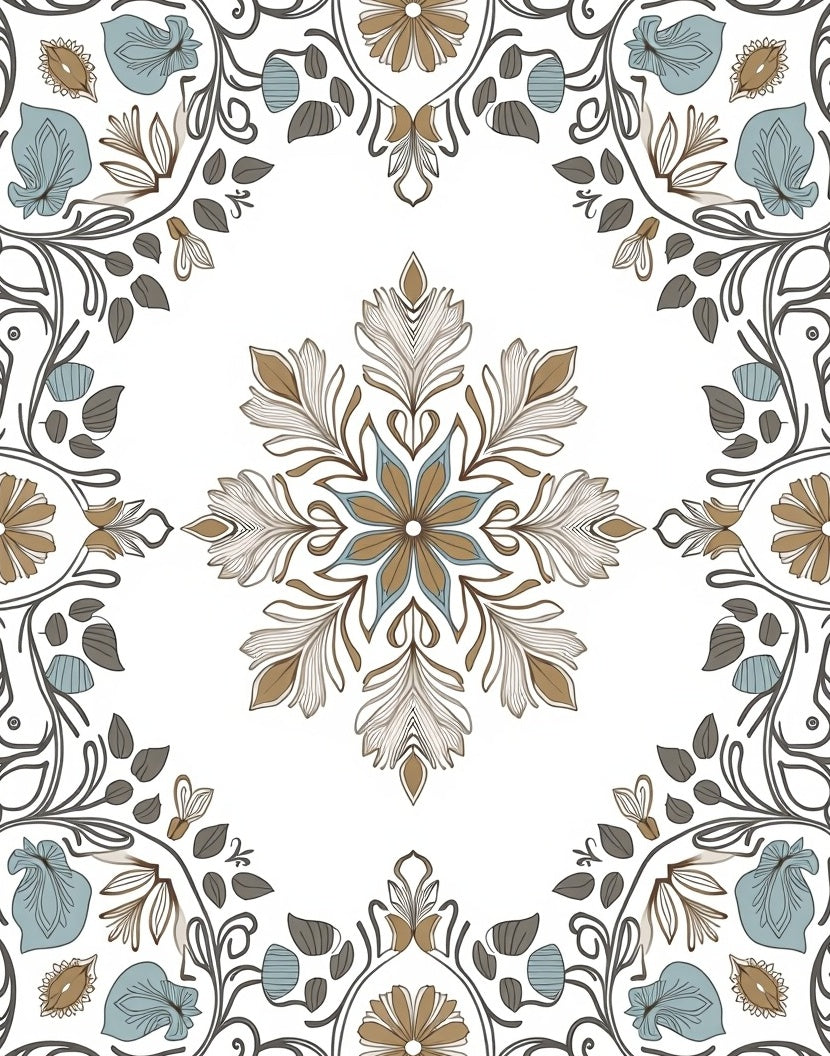 Retro Garden Tapestry with Interlocking Vine and Blossom Motifs(Brown)