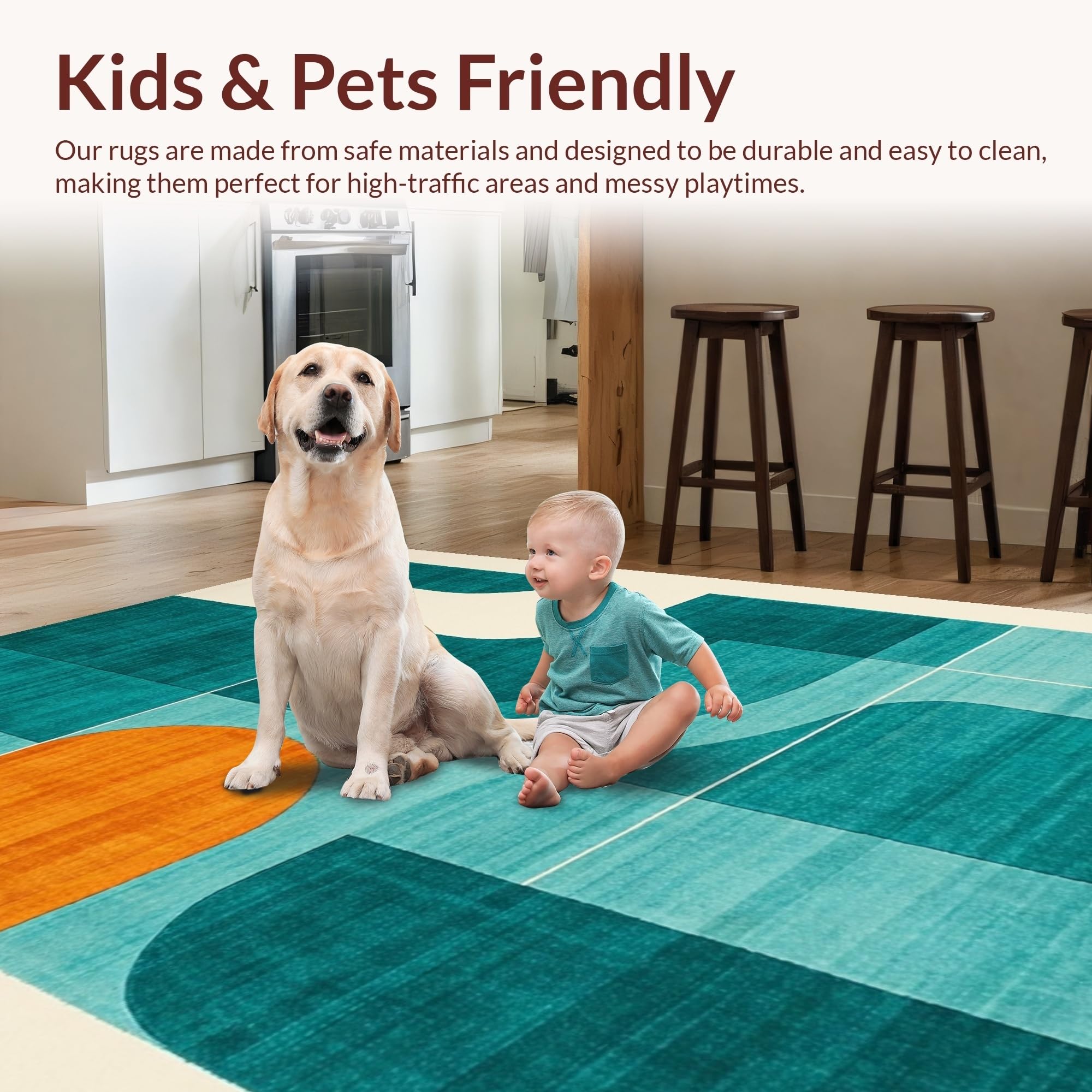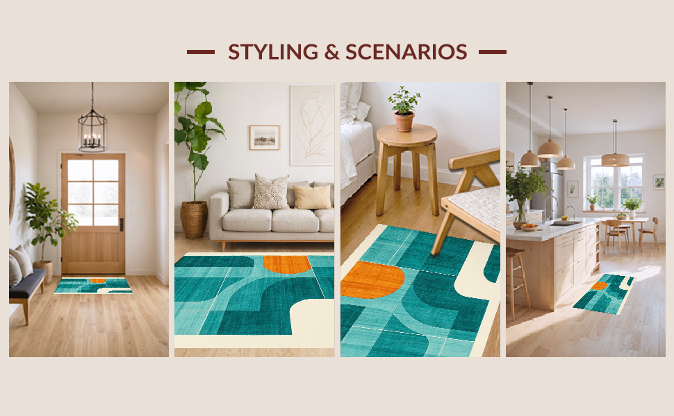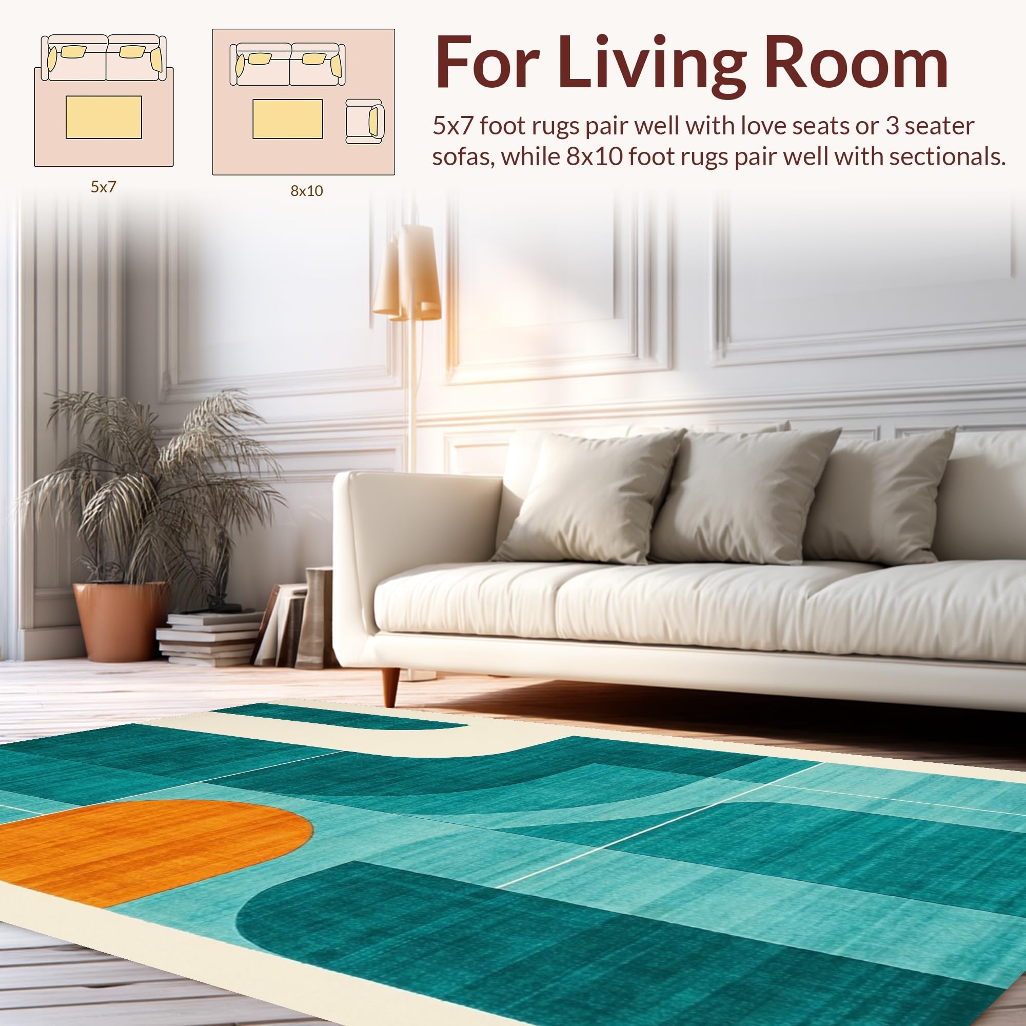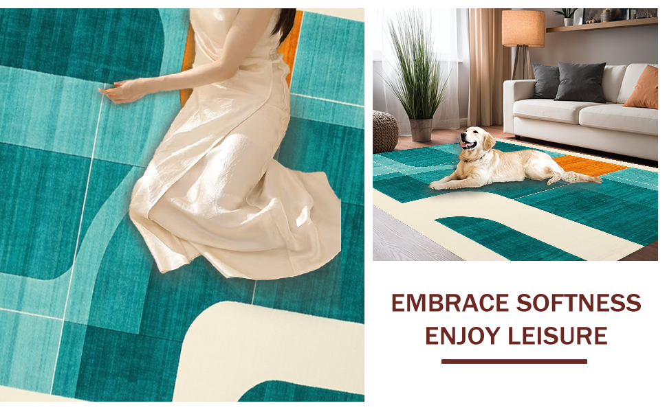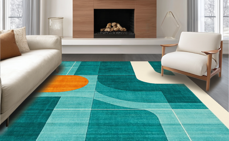 Ultra Soft Area Rug, Non Slip, Stain Resistant, Washable Area Rugs for Living Room, Bedroom, Retro Minimalist Line Art(Blue) Overview: