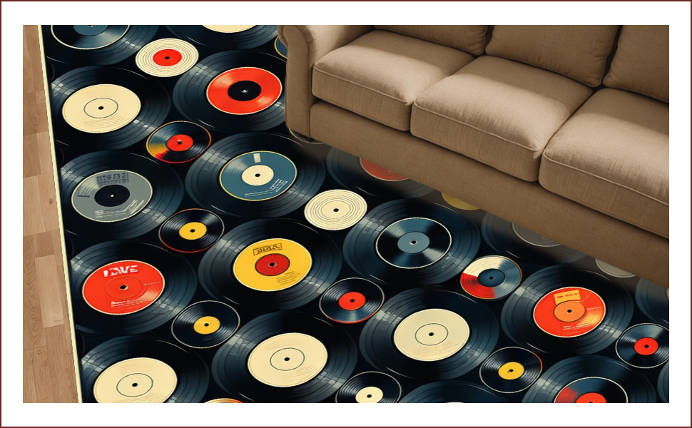 Ultra Soft Area Rug, Non Slip, Stain Resistant, Washable Area Rugs for Living Room, Bedroom, Retro Music Theme Non-Slip Bath Decor(Red) Overview: