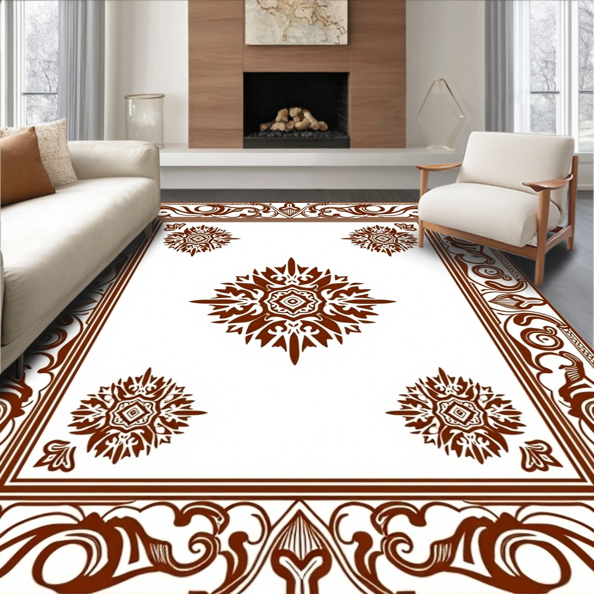Flatwoven High Traffic Area Rug, Retro Paisley Motif Design with Subtle Fade Treatment, Non Slip, Stain Resistant, Washable Area Rugs for Living Room, Bedroom (Brown) Overview: