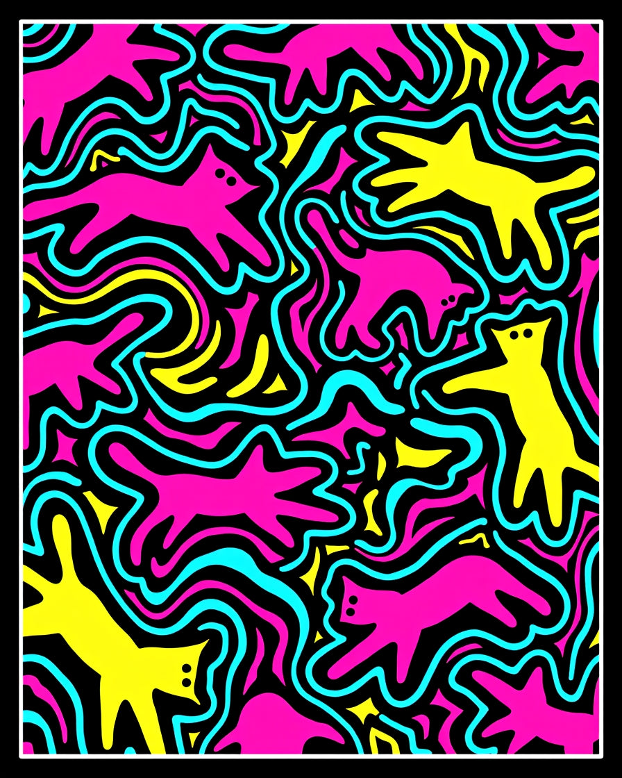 Retro Pop Art Cat Carnival Vibrant Feline Silhouettes with Festive Light Trails(Pink)