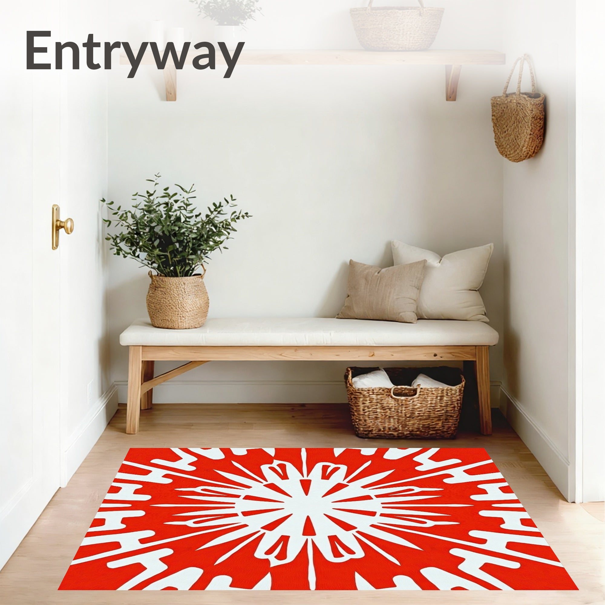 Ultra Soft Area Rug, Non Slip, Stain Resistant, Washable Area Rugs for Living Room, Bedroom, Retro Sunburst Check with Vintage Abstract Motifs(Red) Overview: