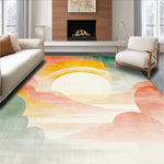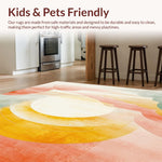 Ultra Soft Area Rug, Non Slip, Stain Resistant, Washable Area Rugs for Living Room, Bedroom, Retro Sunshine Boho Rug with Abstract Sun and Rainbow Crystal Hues for Entry(Yellow) Overview: