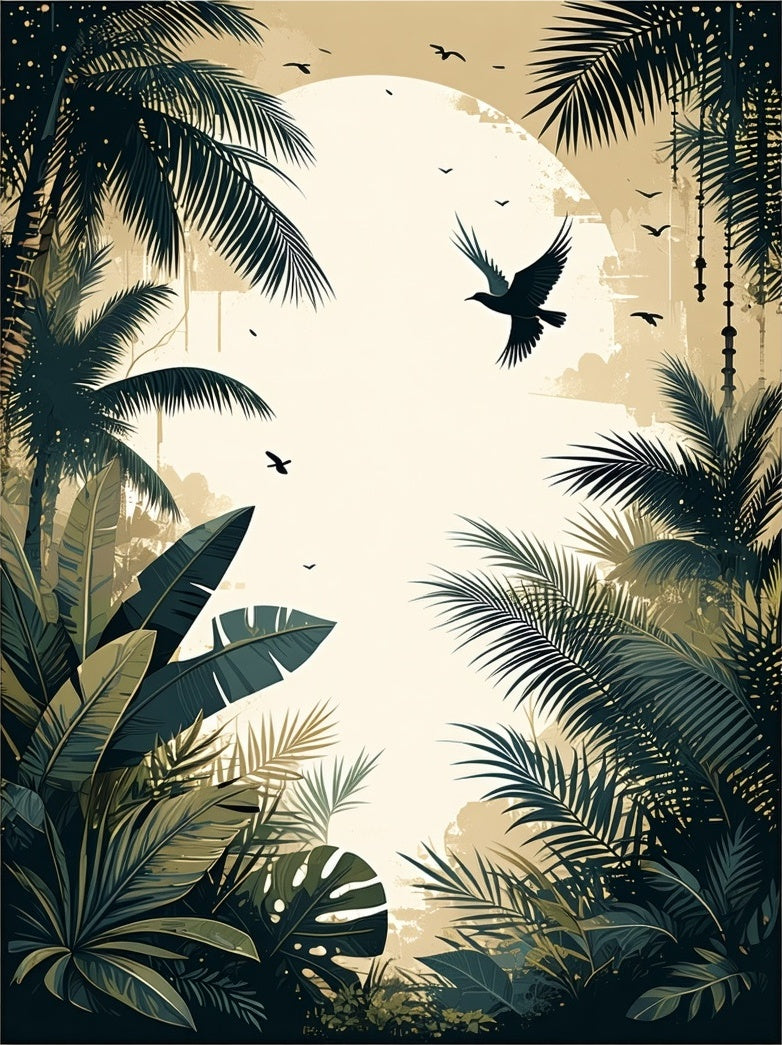 Reversible Balcony with Distinctive Tropical Foliage Print(Beige)