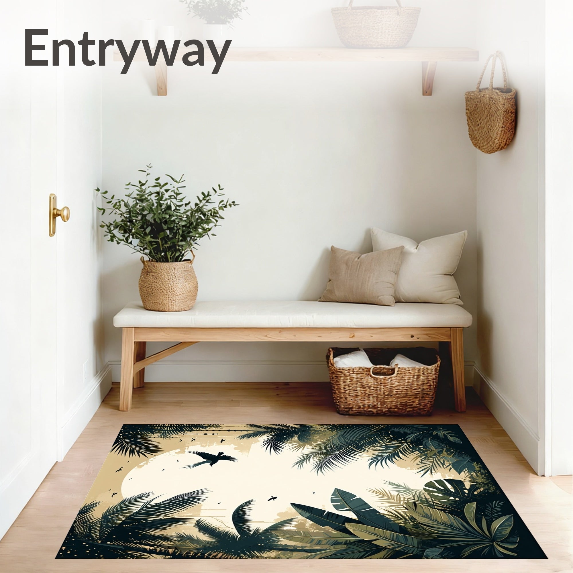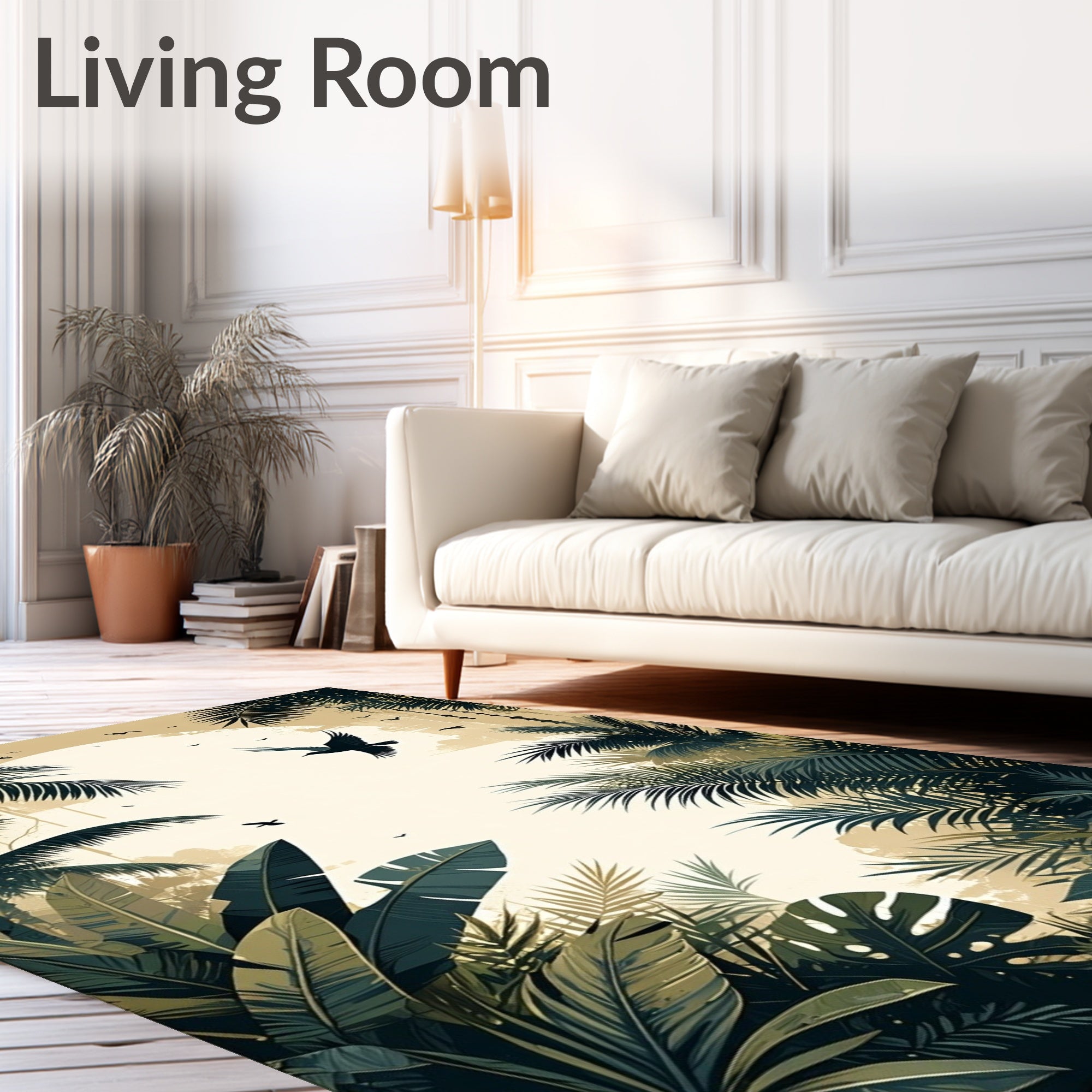 Flatwoven High Traffic Area Rug, Reversible Balcony with Distinctive Tropical Foliage Print, Non Slip, Stain Resistant, Washable Area Rugs for Living Room, Bedroom (Beige) Overview: