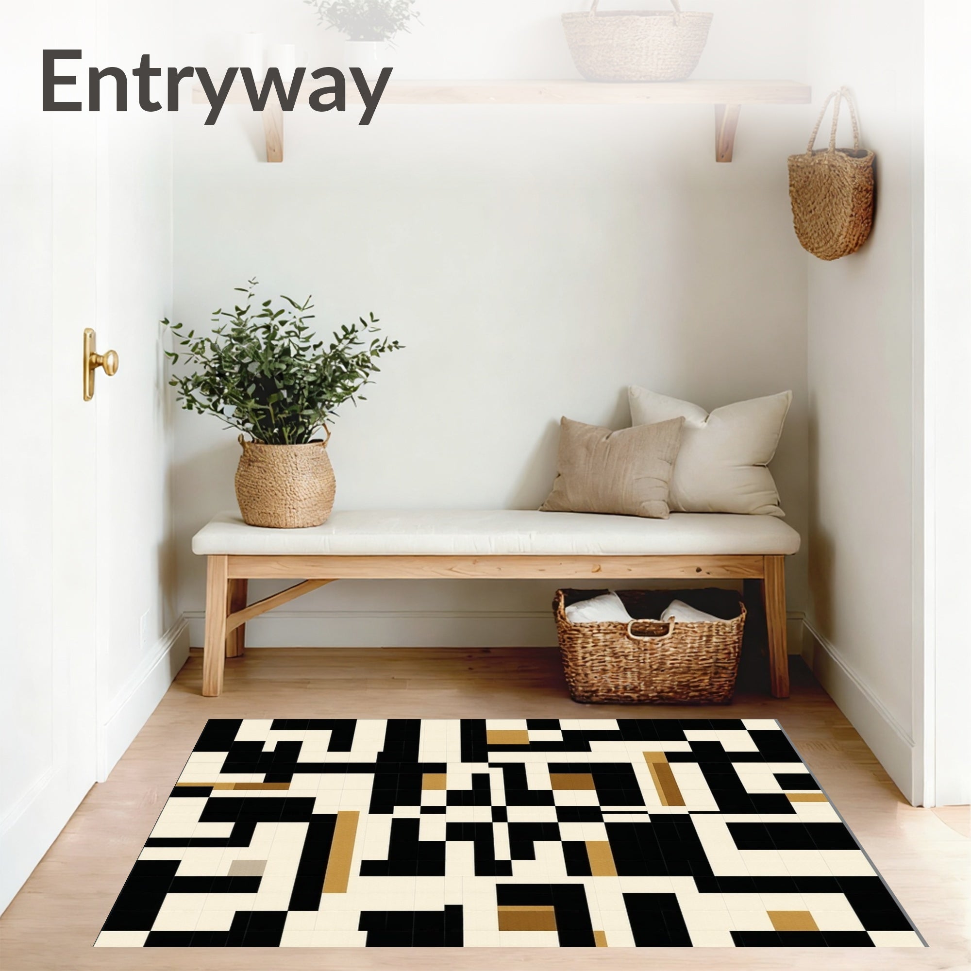 Reversible Geometric Patio for Deck and Spaces(Beige)