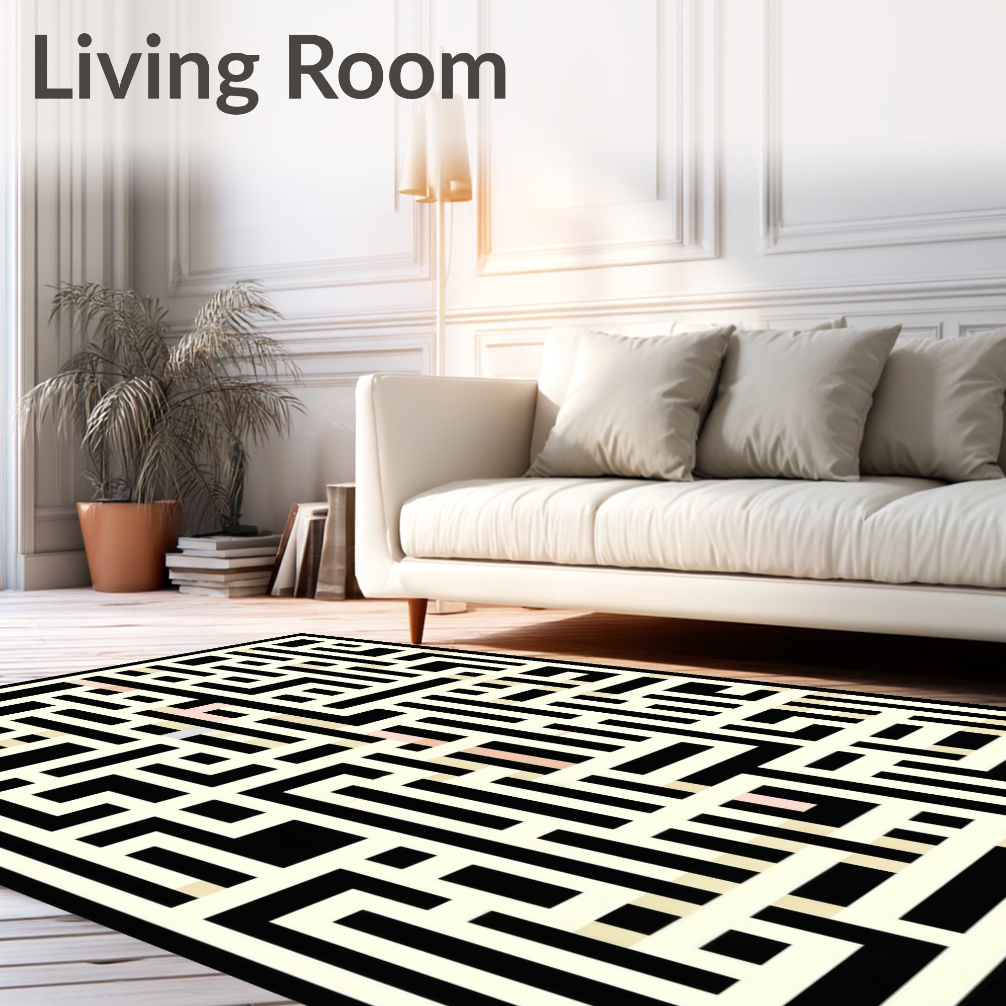 Flatwoven High Traffic Area Rug, Reversible Patio Geometric Maze Black And Beige, Non Slip, Stain Resistant, Washable Area Rugs for Living Room, Bedroom (Beige) Overview: