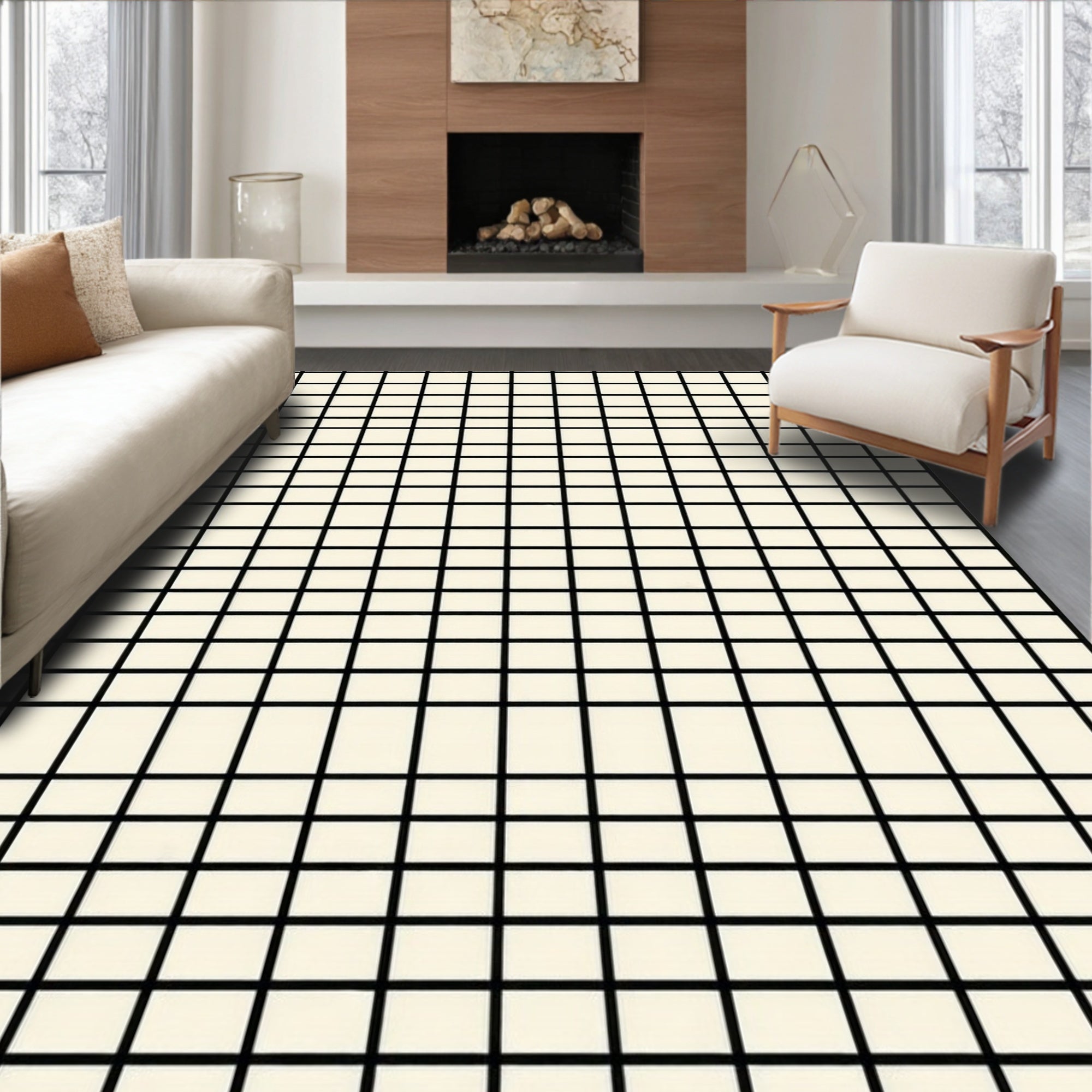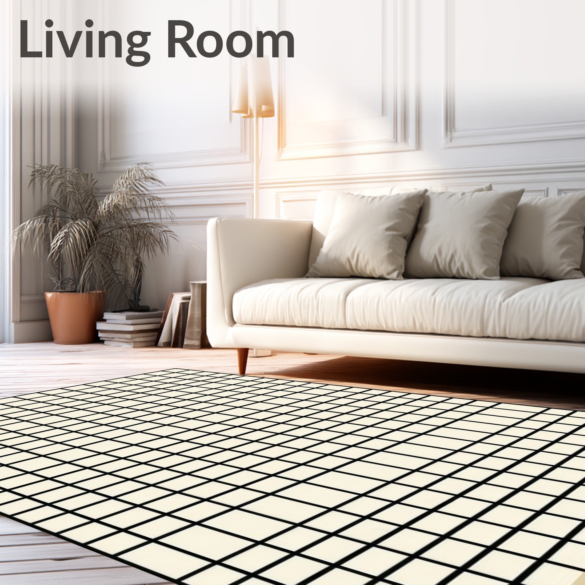 Flatwoven High Traffic Area Rug, Reversible Trellis Black & Beige Patio Accent, Non Slip, Stain Resistant, Washable Area Rugs for Living Room, Bedroom (Beige) Overview: