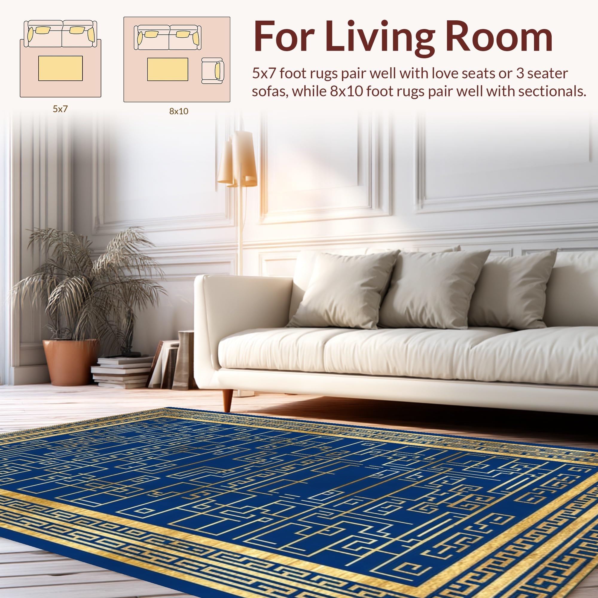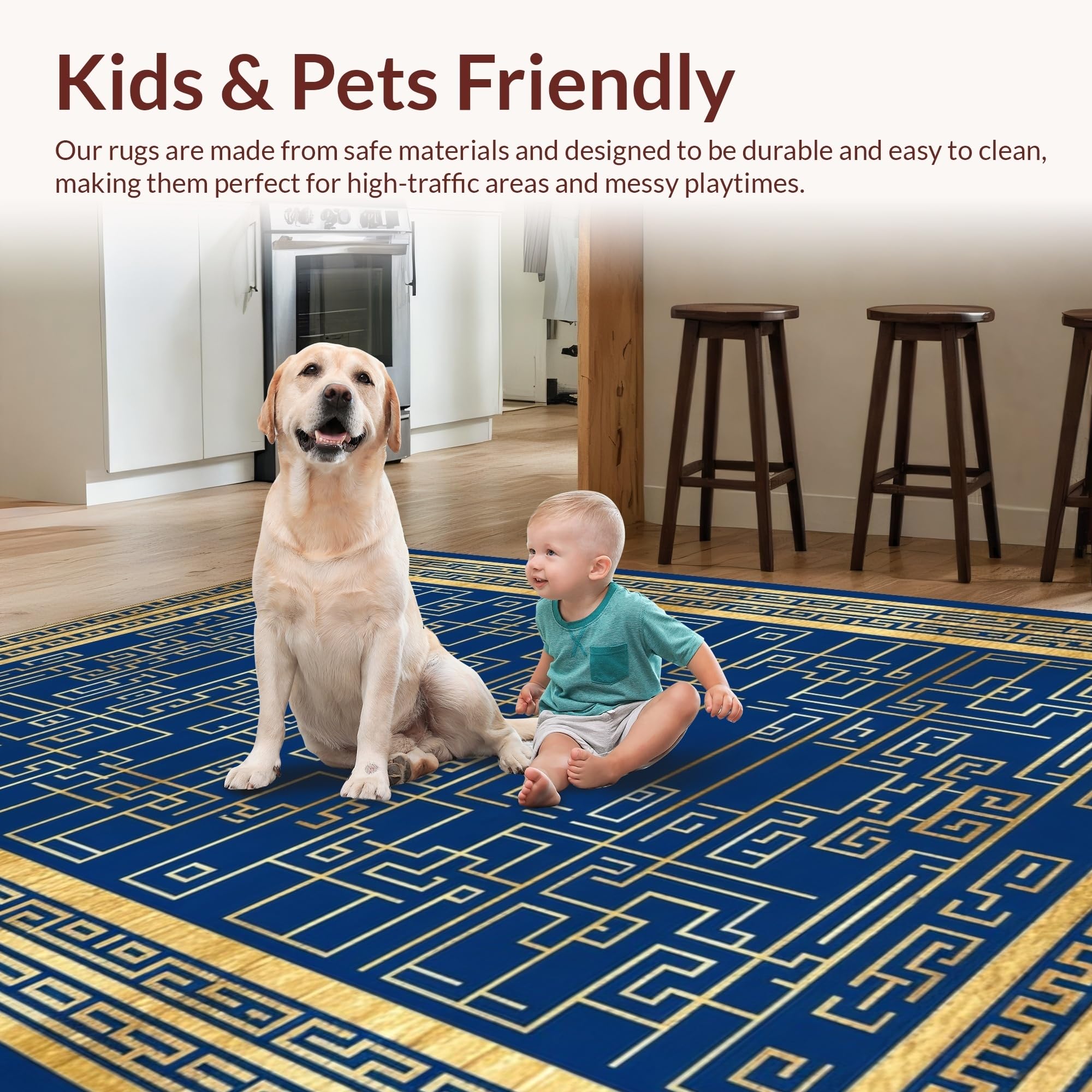 Ultra Soft Area Rug, Non Slip, Stain Resistant, Washable Area Rugs for Living Room, Bedroom, Rich Boho Tiled Arrangement(Blue) Overview: