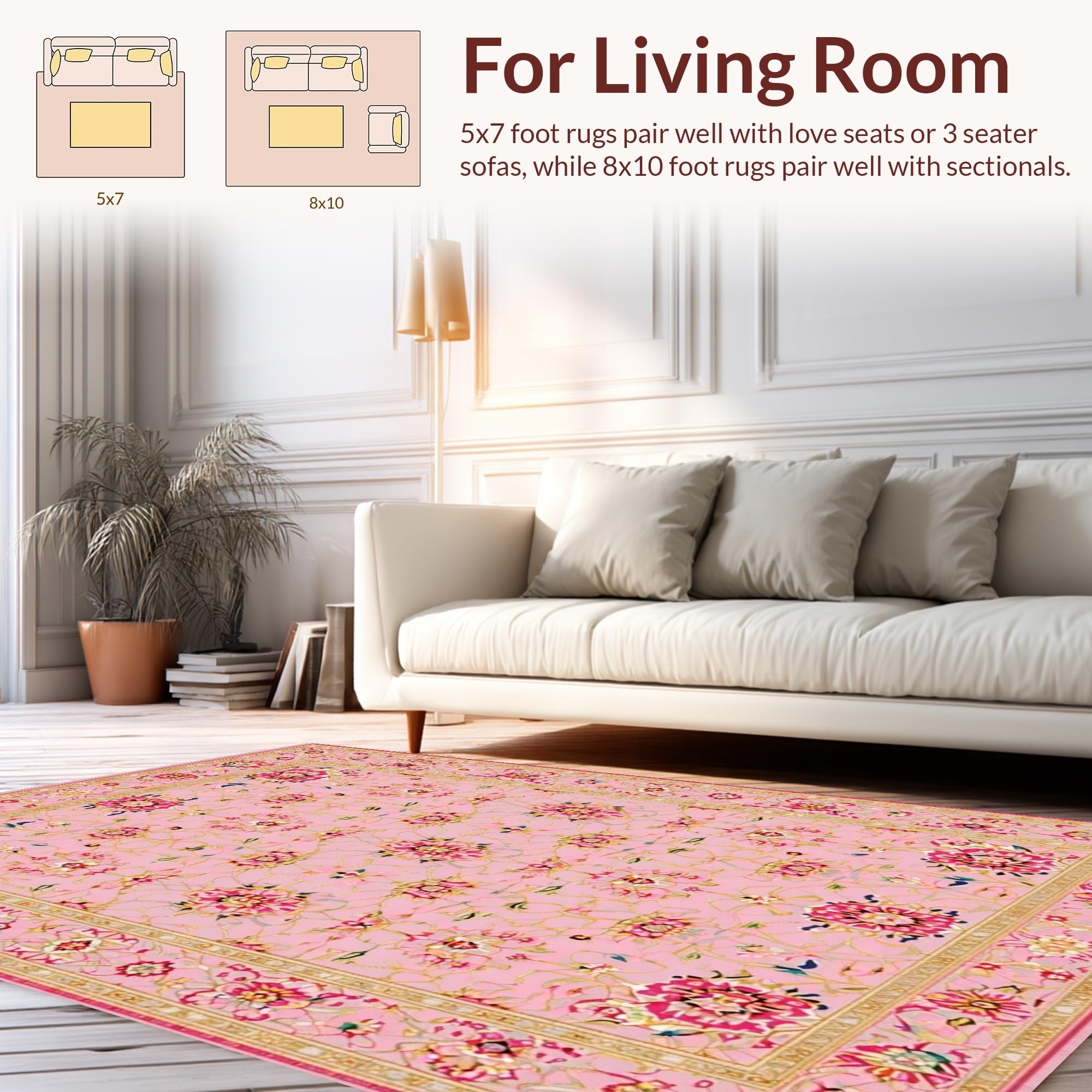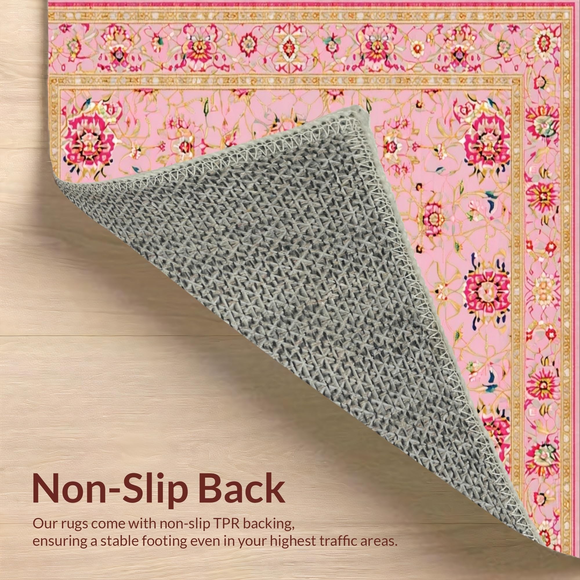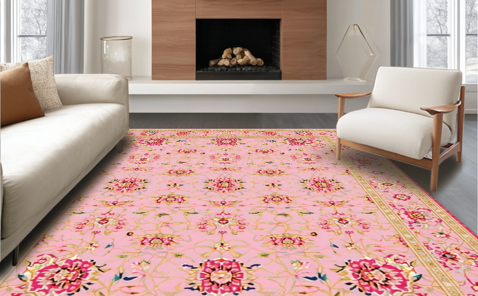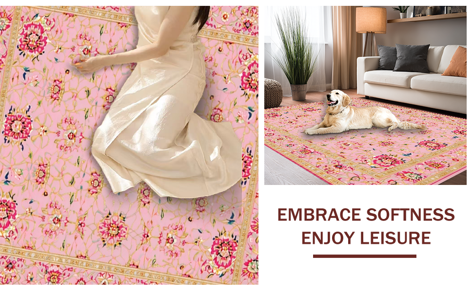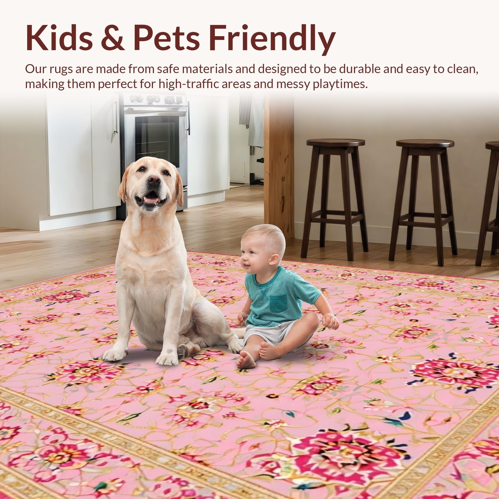 Ultra Soft Area Rug, Non Slip, Stain Resistant, Washable Area Rugs for Living Room, Bedroom, Rich Colorful Ethnic Arrangement(Pink) Overview: