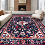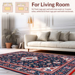 Flatwoven High Traffic Area Rug, Rich Geometric Patterned Design, Non Slip, Stain Resistant, Washable Area Rugs for Living Room, Bedroom (Blue) Overview: