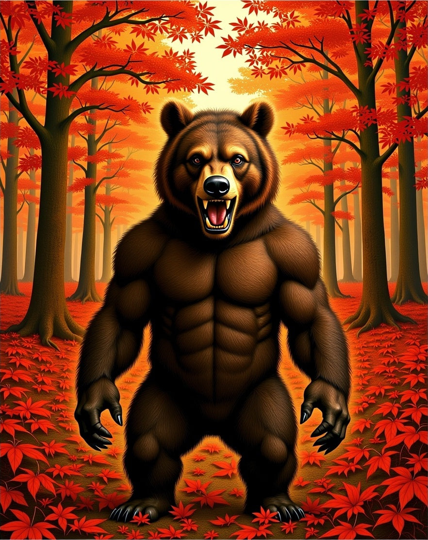 Roaring Predator Autumn Woodland Adventure Hunting Territory Scene(Brown)