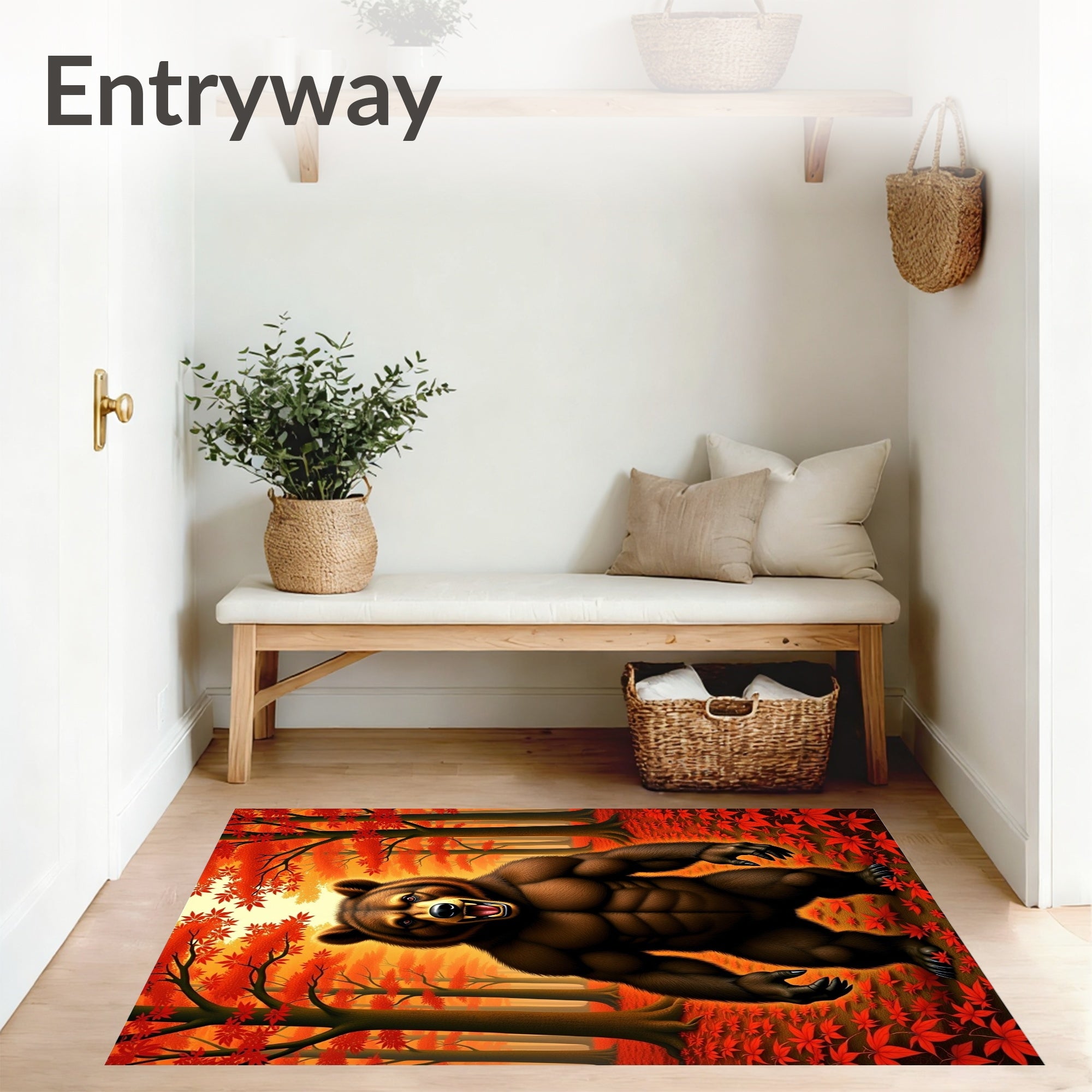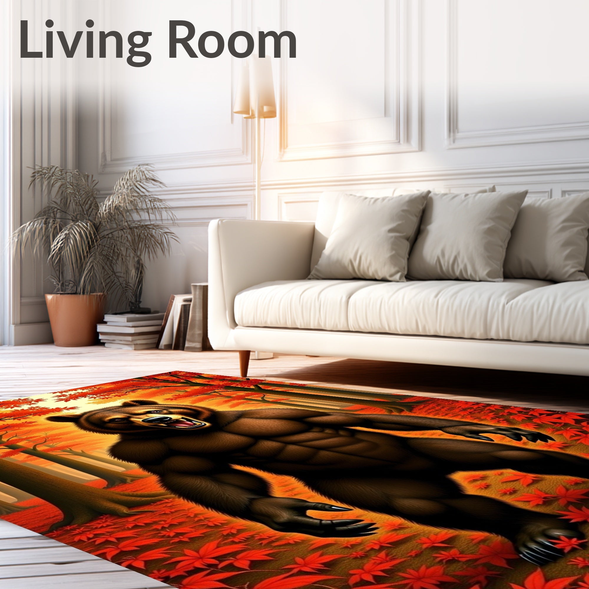 Flatwoven High Traffic Area Rug, Roaring Predator Autumn Woodland Adventure Hunting Territory Scene, Non Slip, Stain Resistant, Washable Area Rugs for Living Room, Bedroom (Brown) Overview: