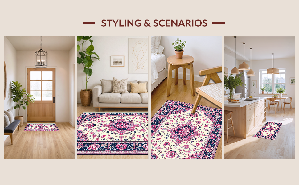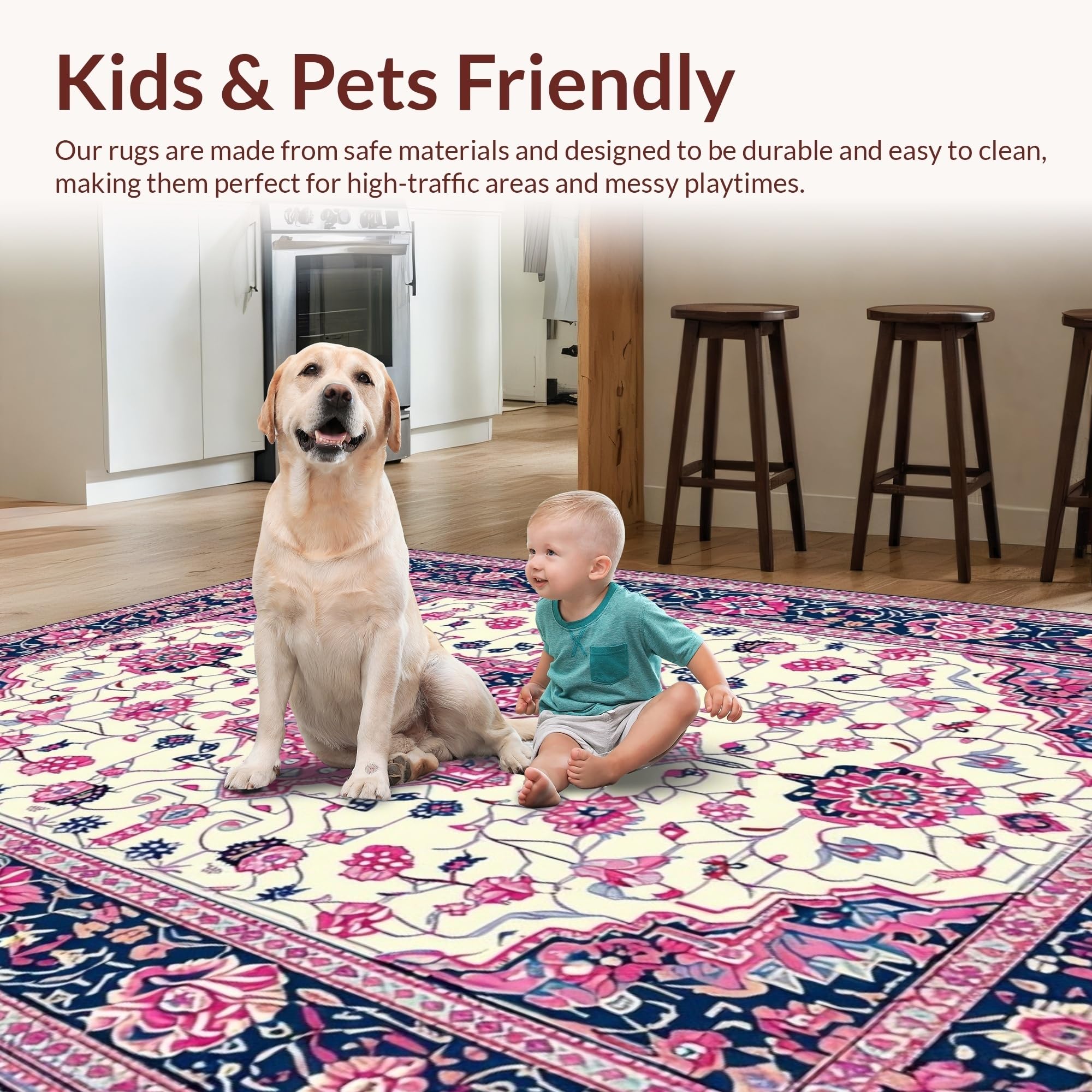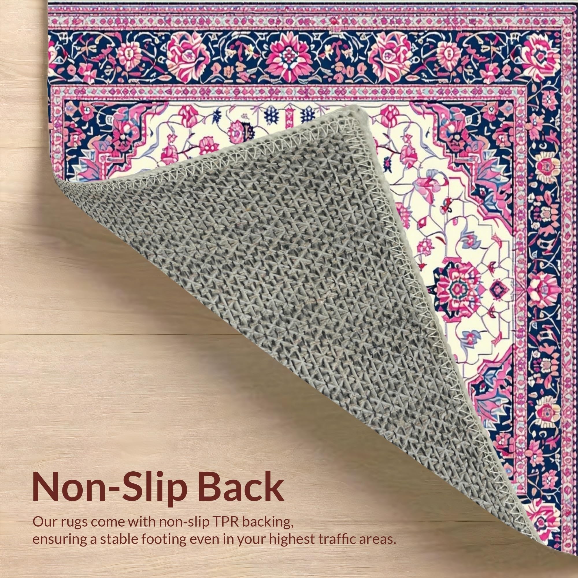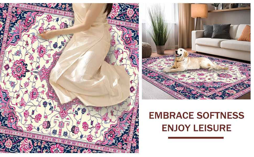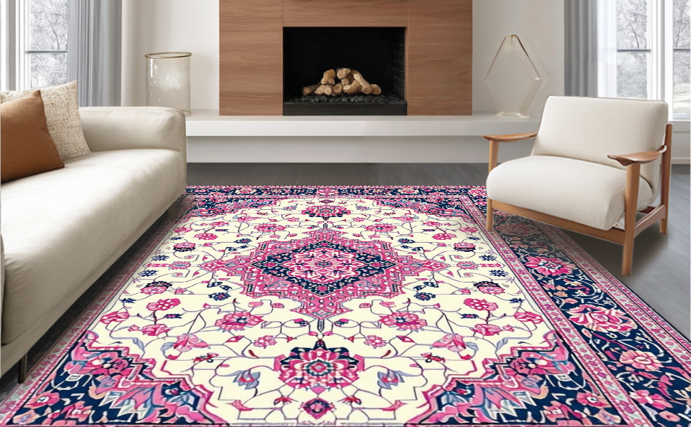 Ultra Soft Area Rug, Non Slip, Stain Resistant, Washable Area Rugs for Living Room, Bedroom, Romantic Pink Floral Whimsy(Ivory) Overview: