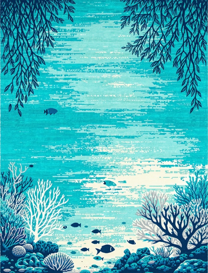 Round Ocean Coral Reef Inspired Design(Blue)