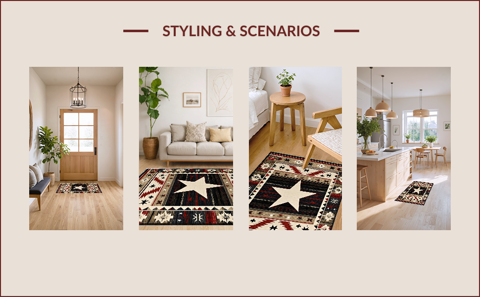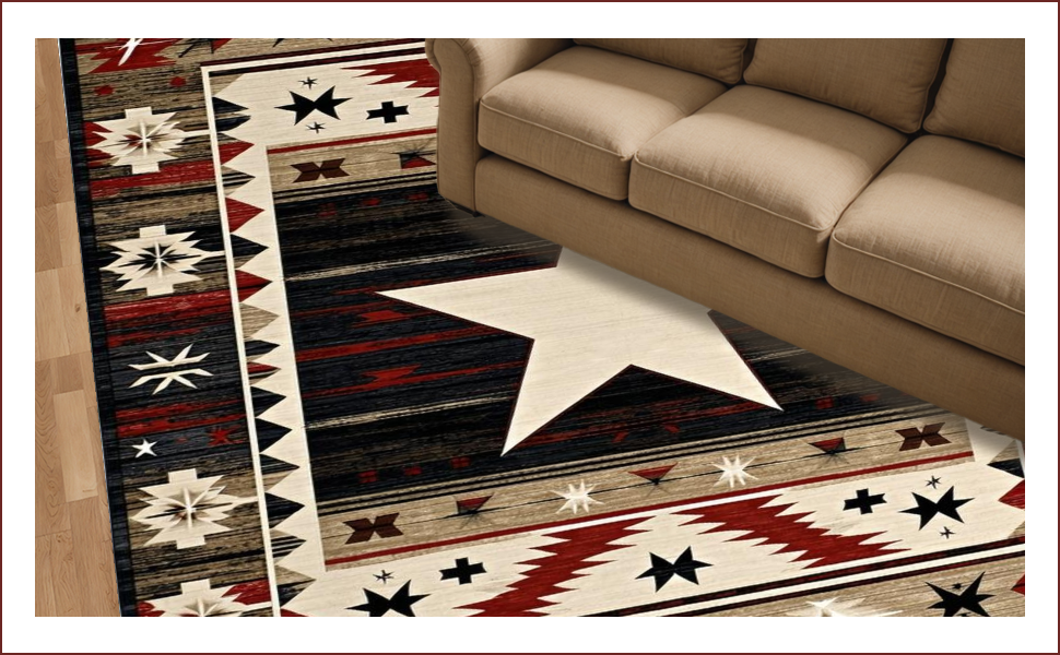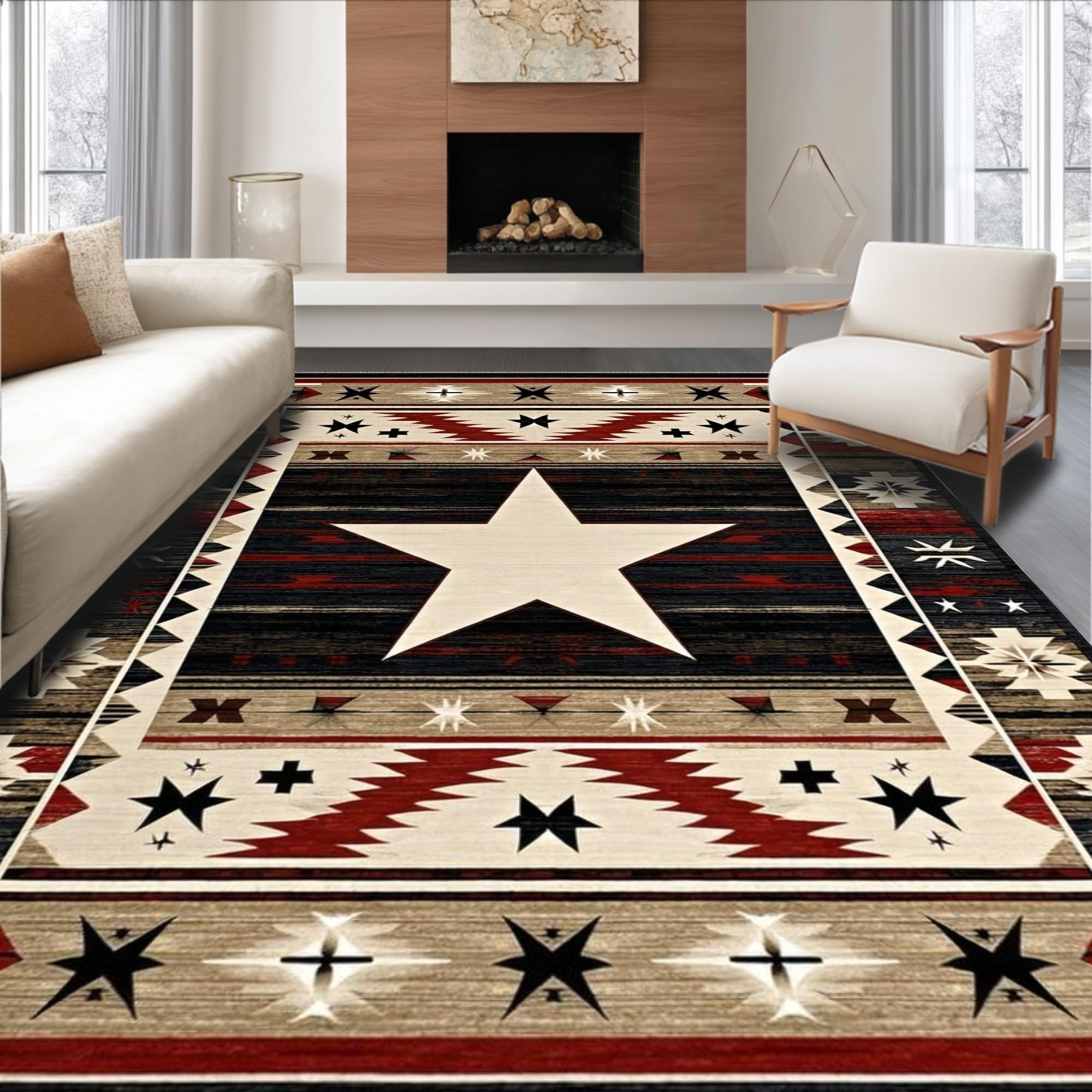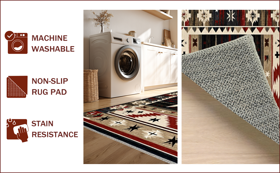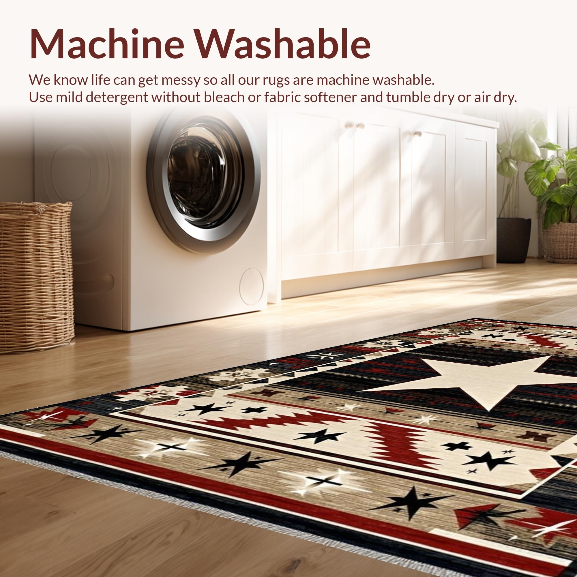 Ultra Soft Area Rug, Non Slip, Stain Resistant, Washable Area Rugs for Living Room, Bedroom, Rustic Americana Star Themed(Red) Overview: