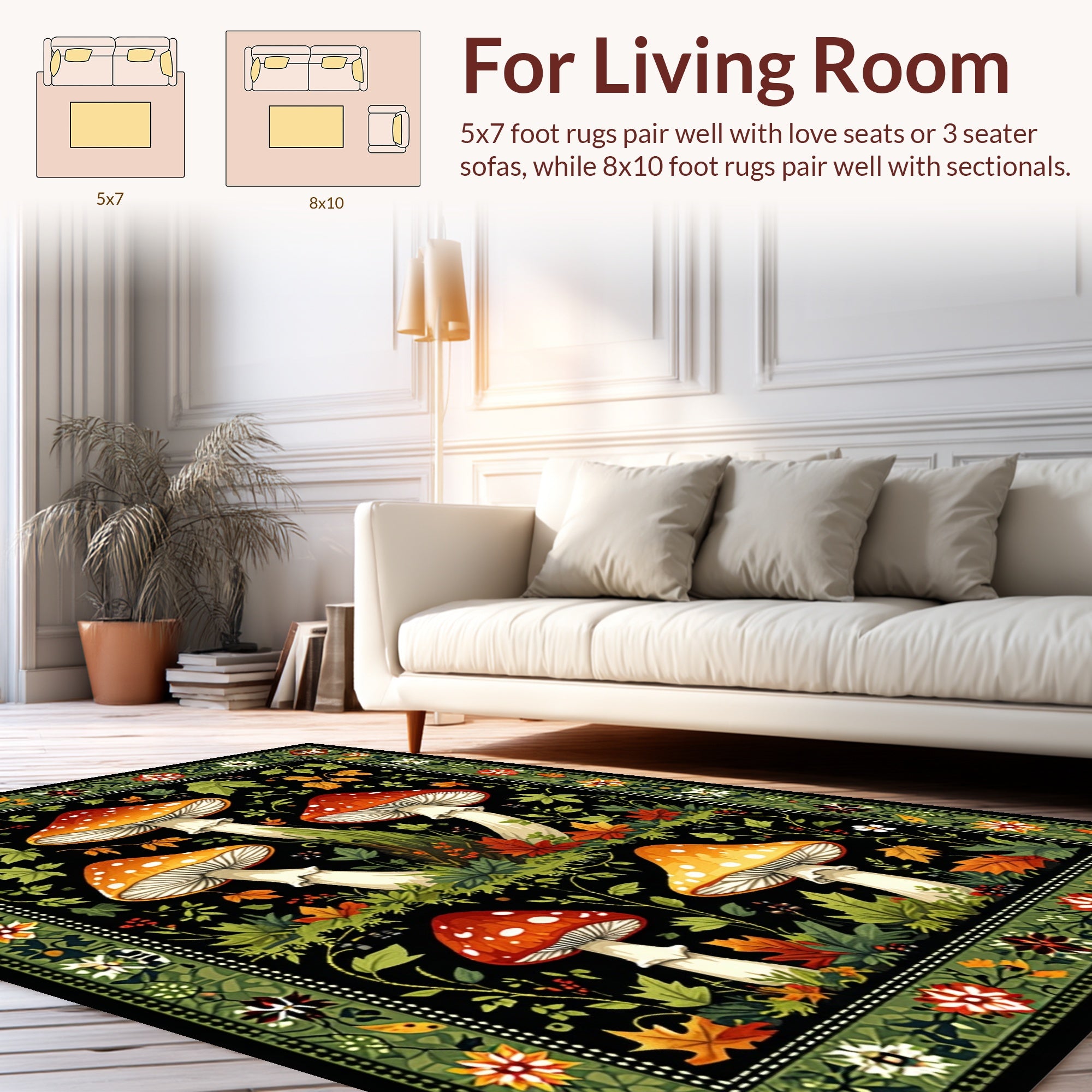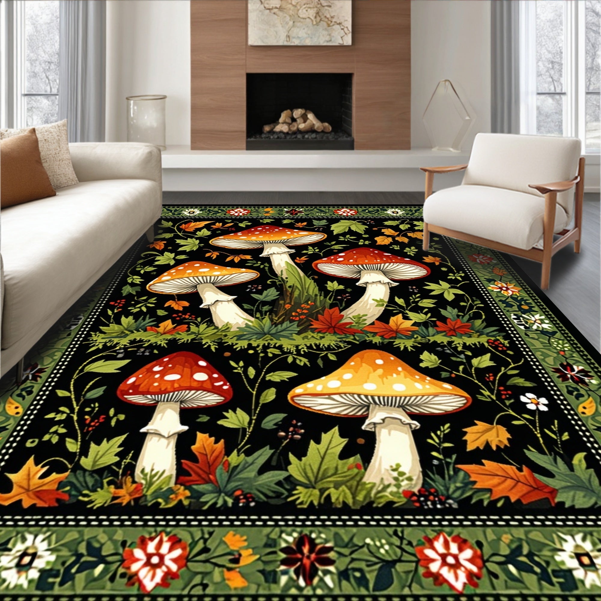 Flatwoven High Traffic Area Rug, Rustic Autumnal Nature, Non Slip, Stain Resistant, Washable Area Rugs for Living Room, Bedroom (Black) Overview:
