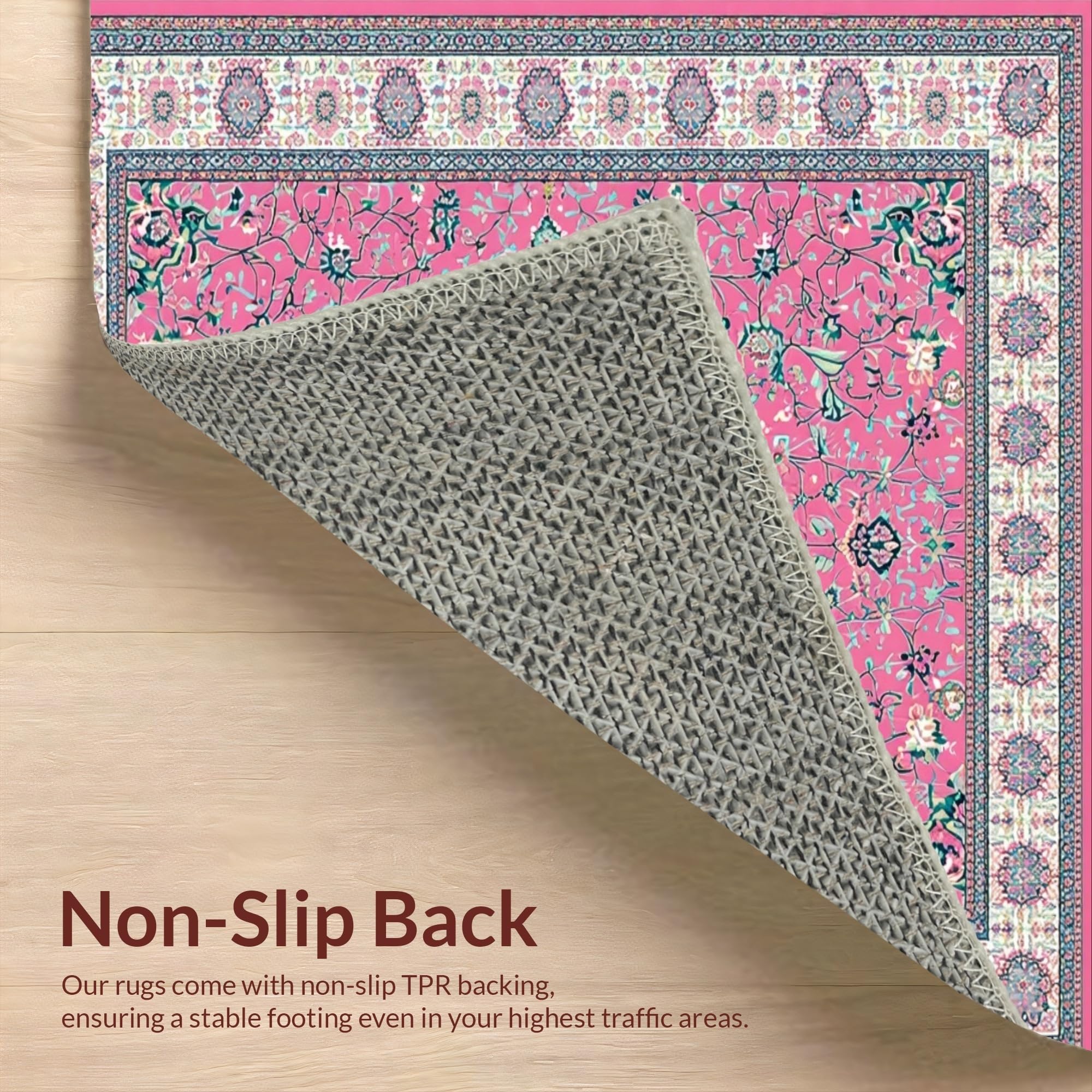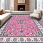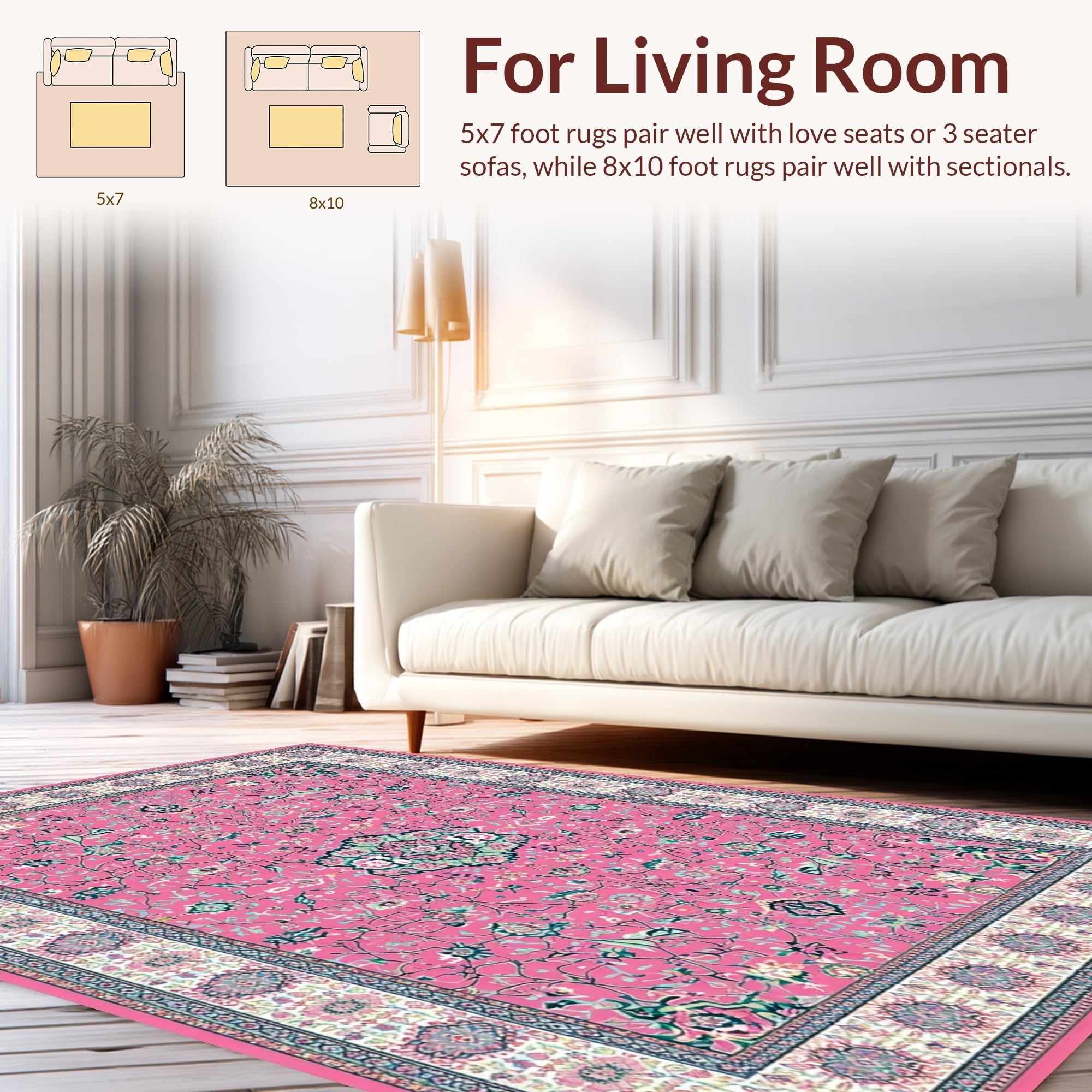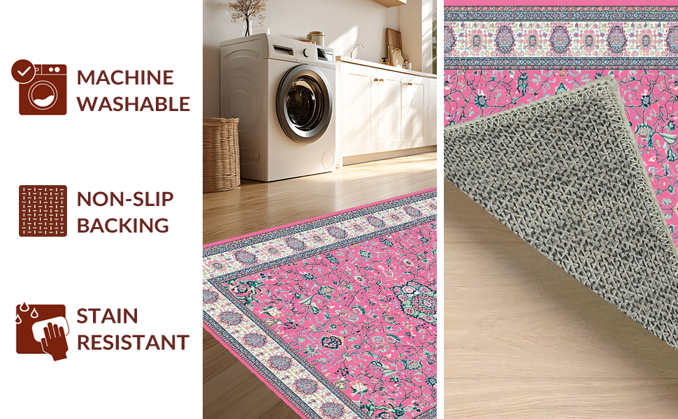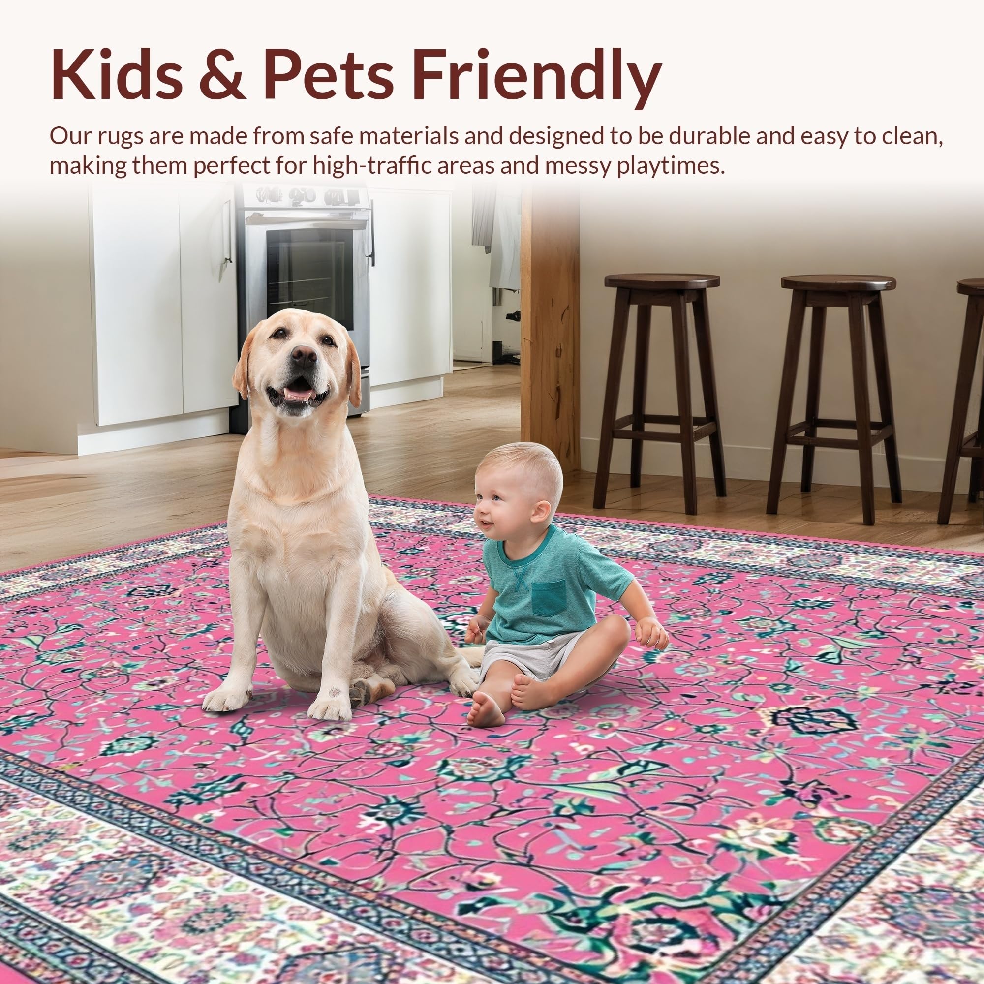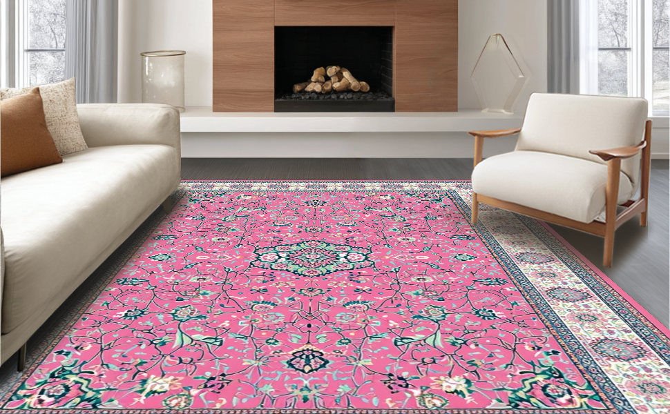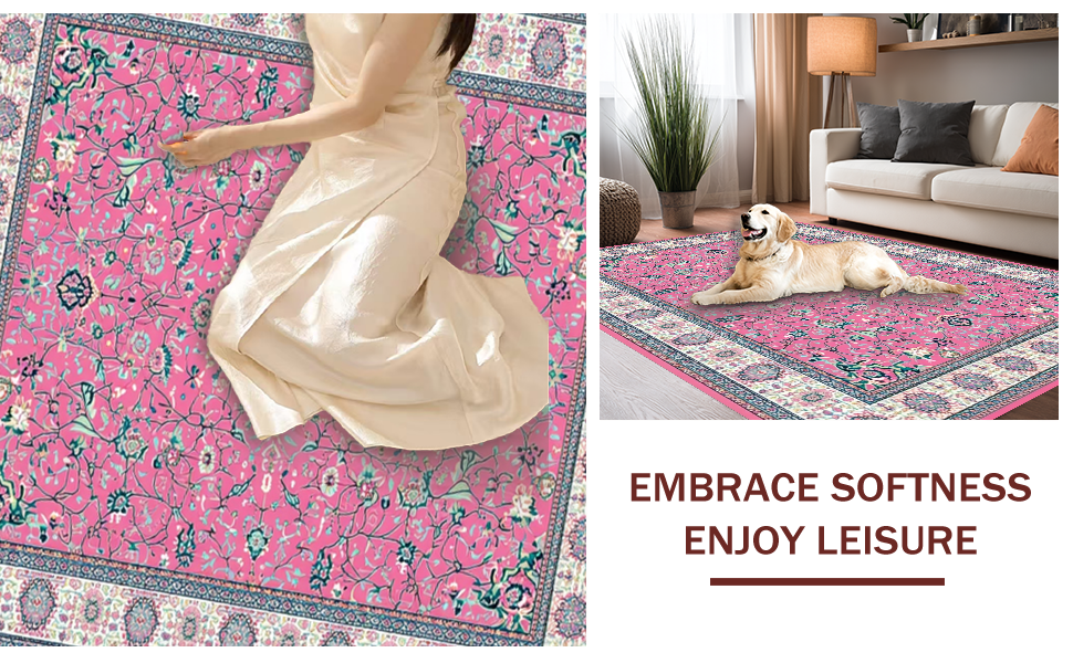 Ultra Soft Area Rug, Non Slip, Stain Resistant, Washable Area Rugs for Living Room, Bedroom, Rustic Beige Floral Harmony(Pink) Overview: