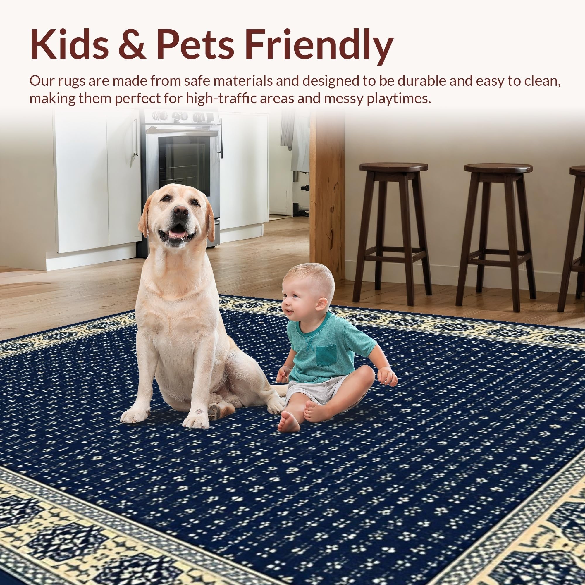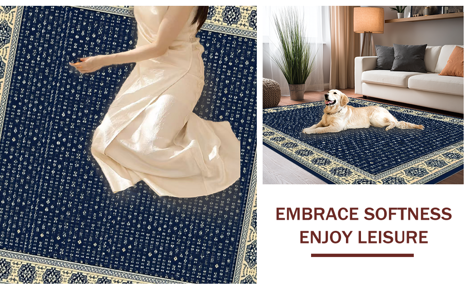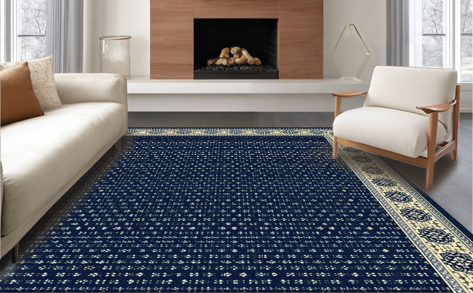 Ultra Soft Area Rug, Non Slip, Stain Resistant, Washable Area Rugs for Living Room, Bedroom, Rustic Beige Tiled Arrangement(Blue) Overview: