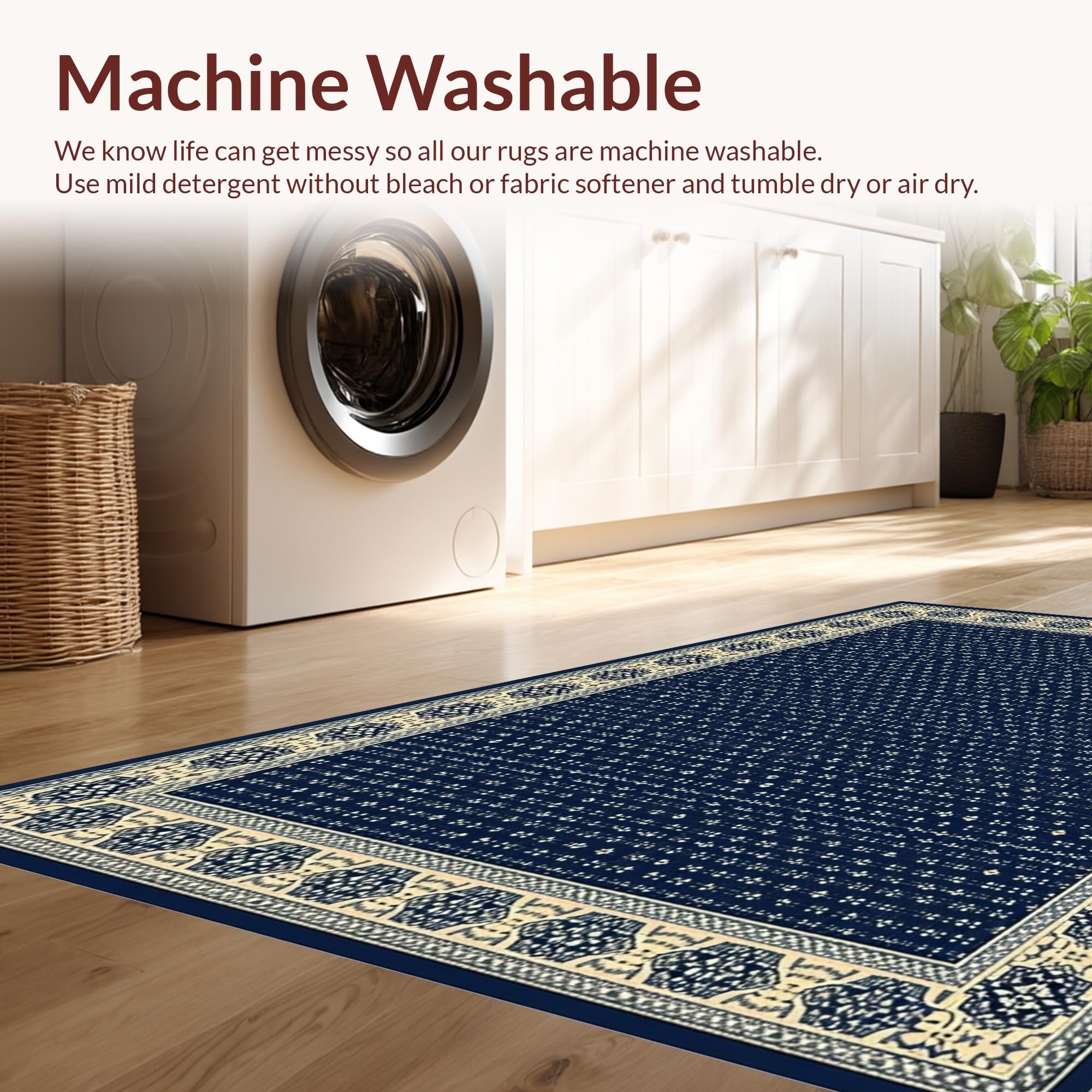 - Machine Washable: Our rugs can be easily thrown in the wash machine.