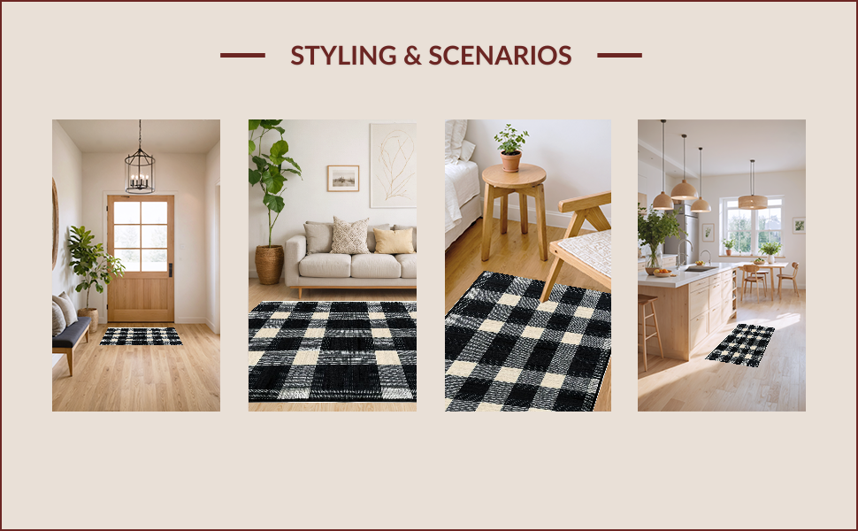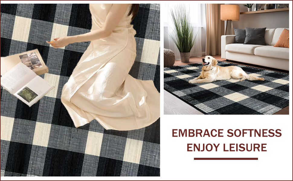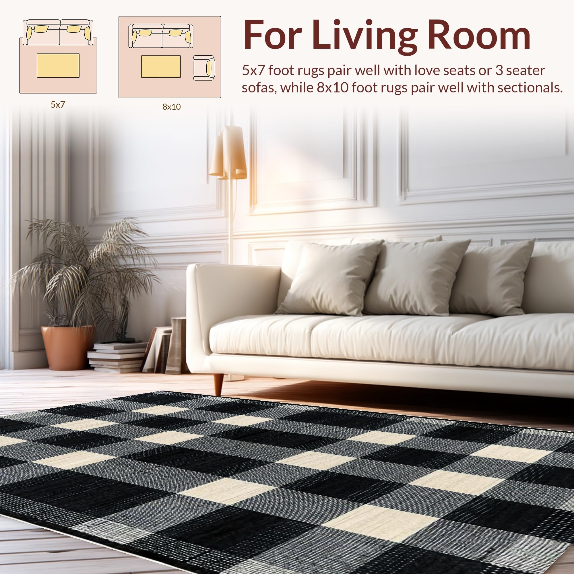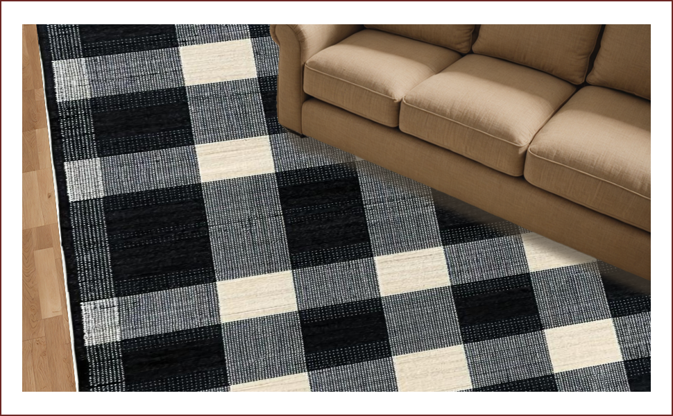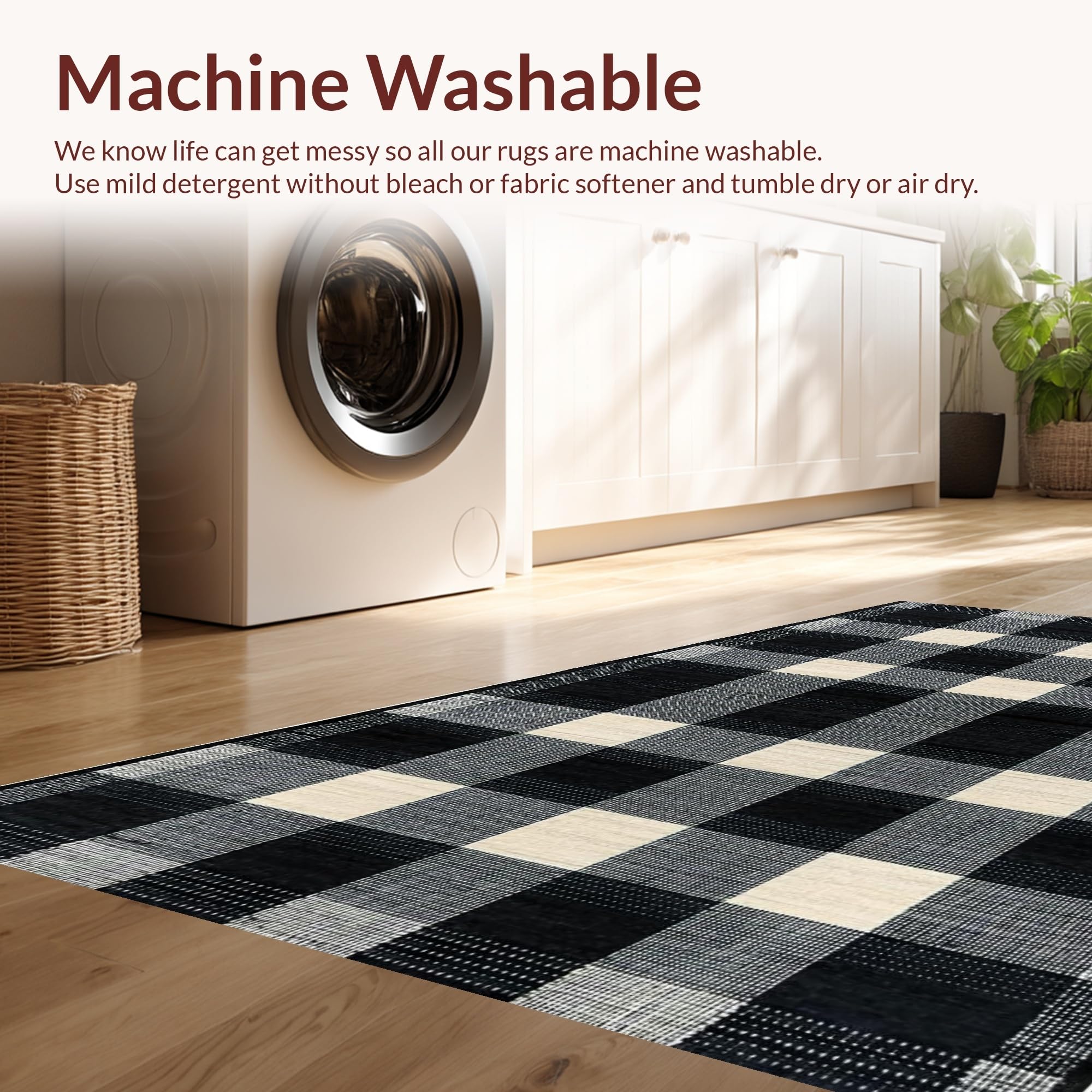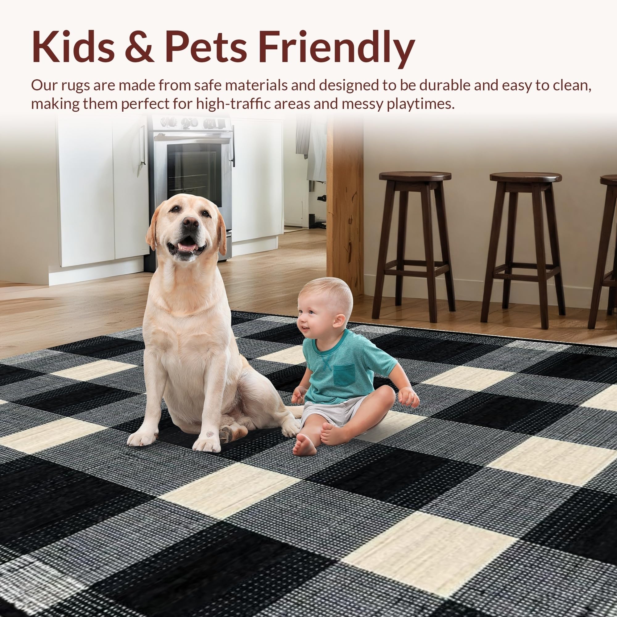 Ultra Soft Area Rug, Non Slip, Stain Resistant, Washable Area Rugs for Living Room, Bedroom, Rustic Black and Beige Motif(Black) Overview: