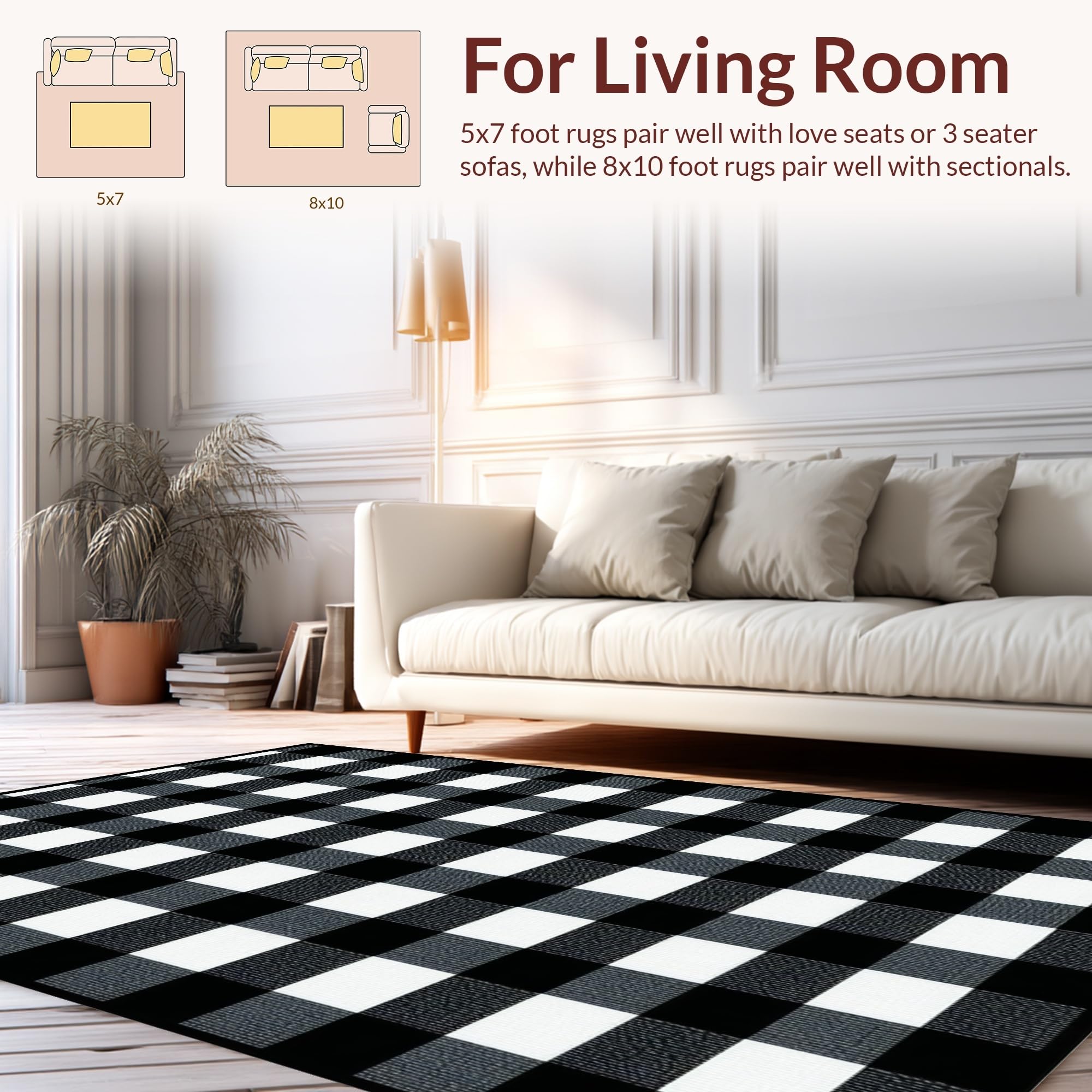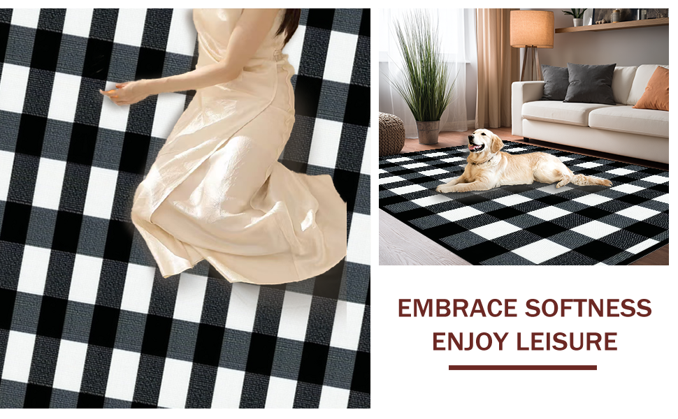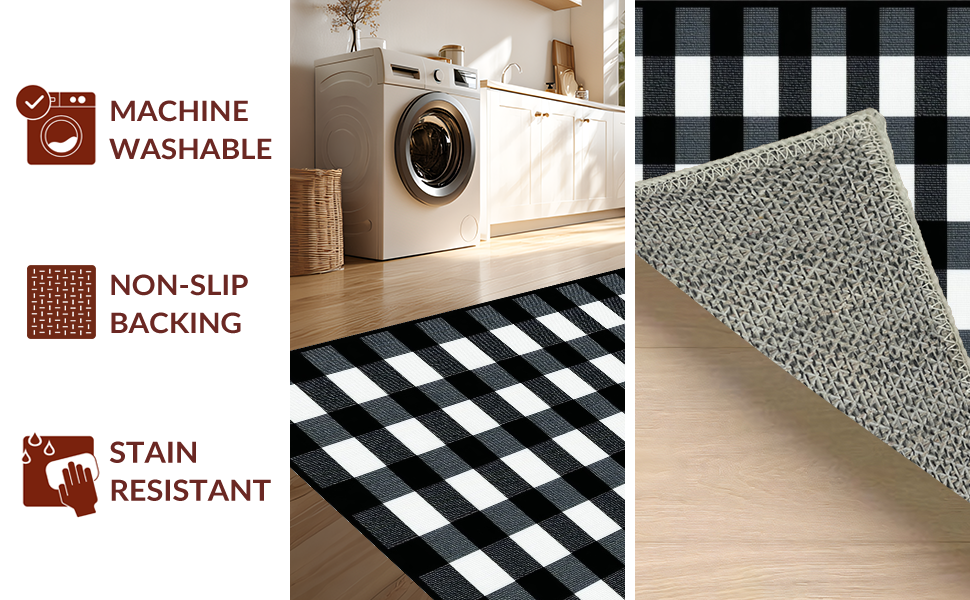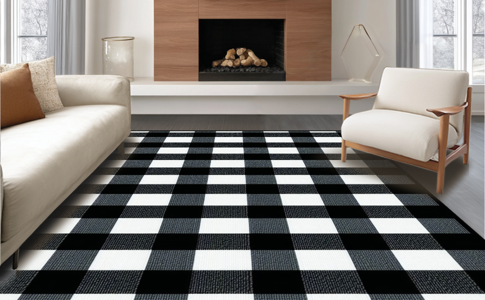 Ultra Soft Area Rug, Non Slip, Stain Resistant, Washable Area Rugs for Living Room, Bedroom, Rustic Black and White Checkered Design(Black) Overview: