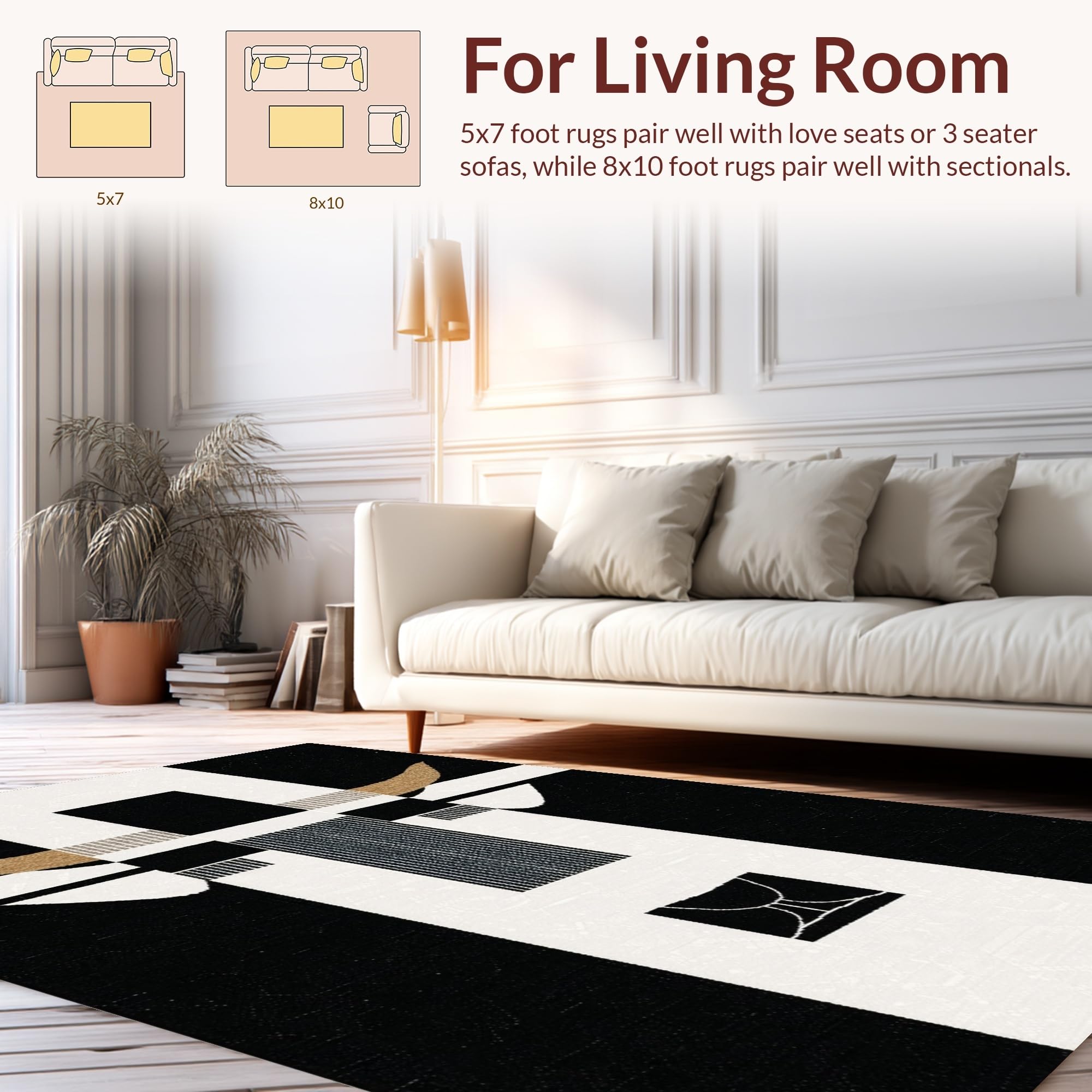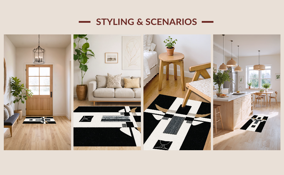 Ultra Soft Area Rug, Non Slip, Stain Resistant, Washable Area Rugs for Living Room, Bedroom, Rustic Black and White Cow Pattern(Black) Overview: