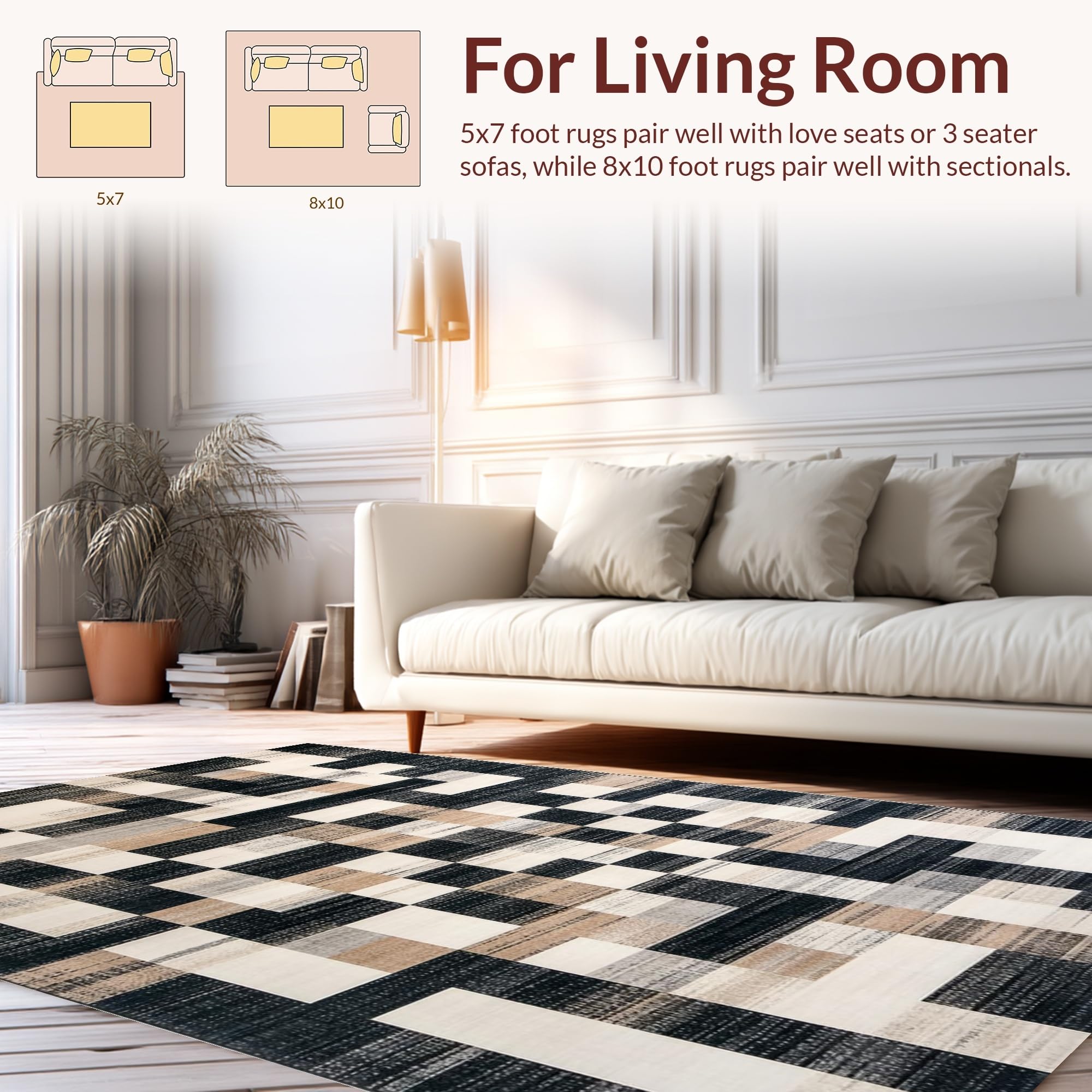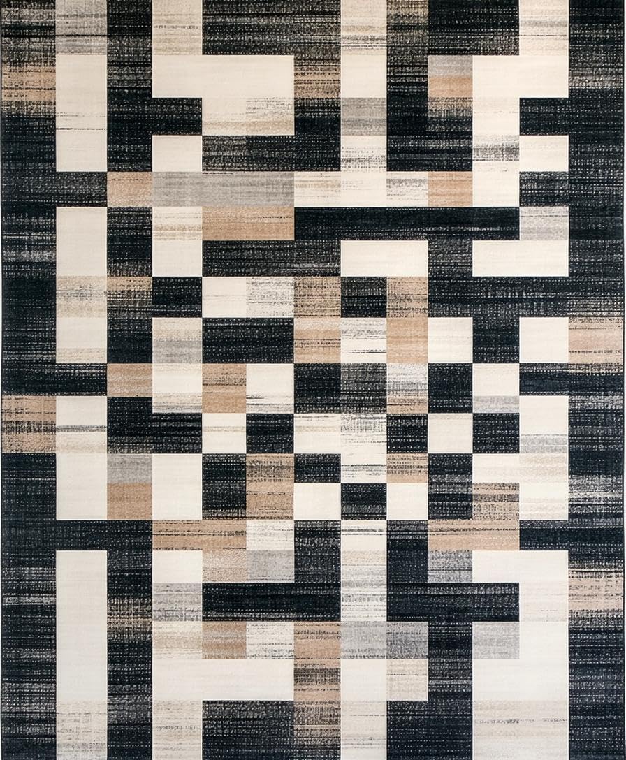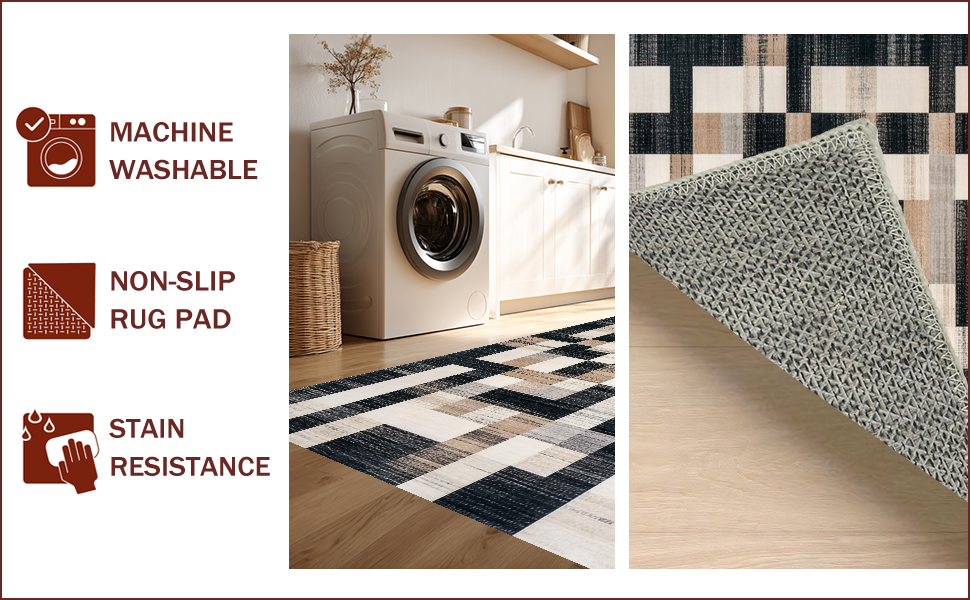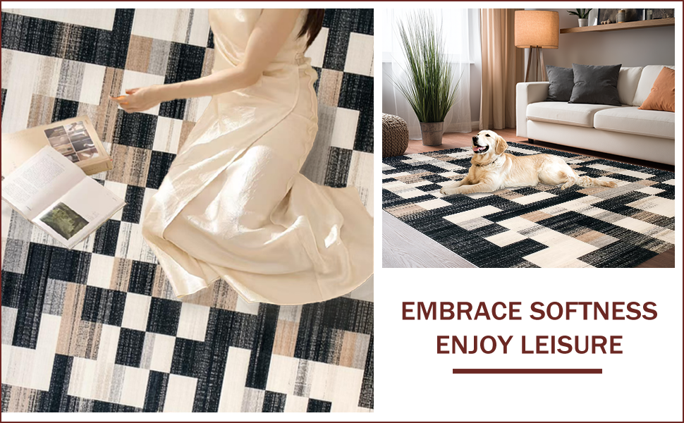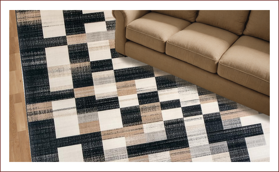 Ultra Soft Area Rug, Non Slip, Stain Resistant, Washable Area Rugs for Living Room, Bedroom, Rustic Black Geometric Elegance(Black) Overview: