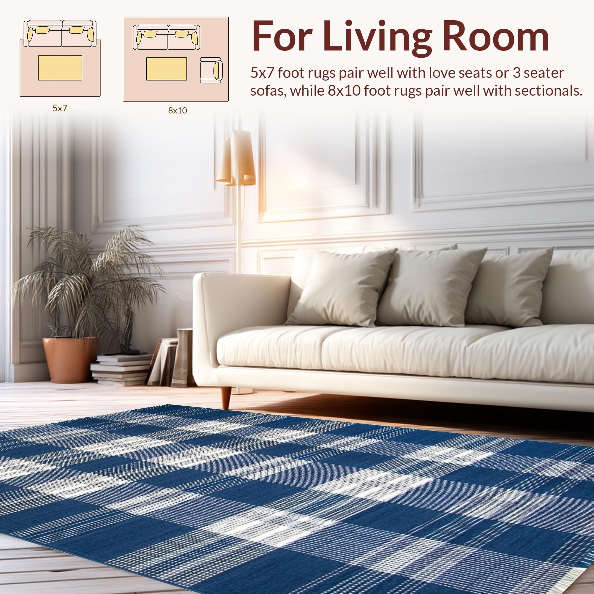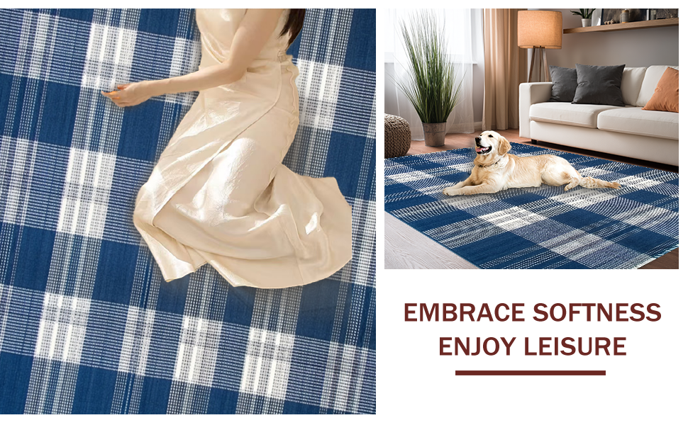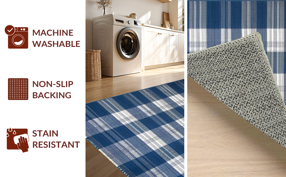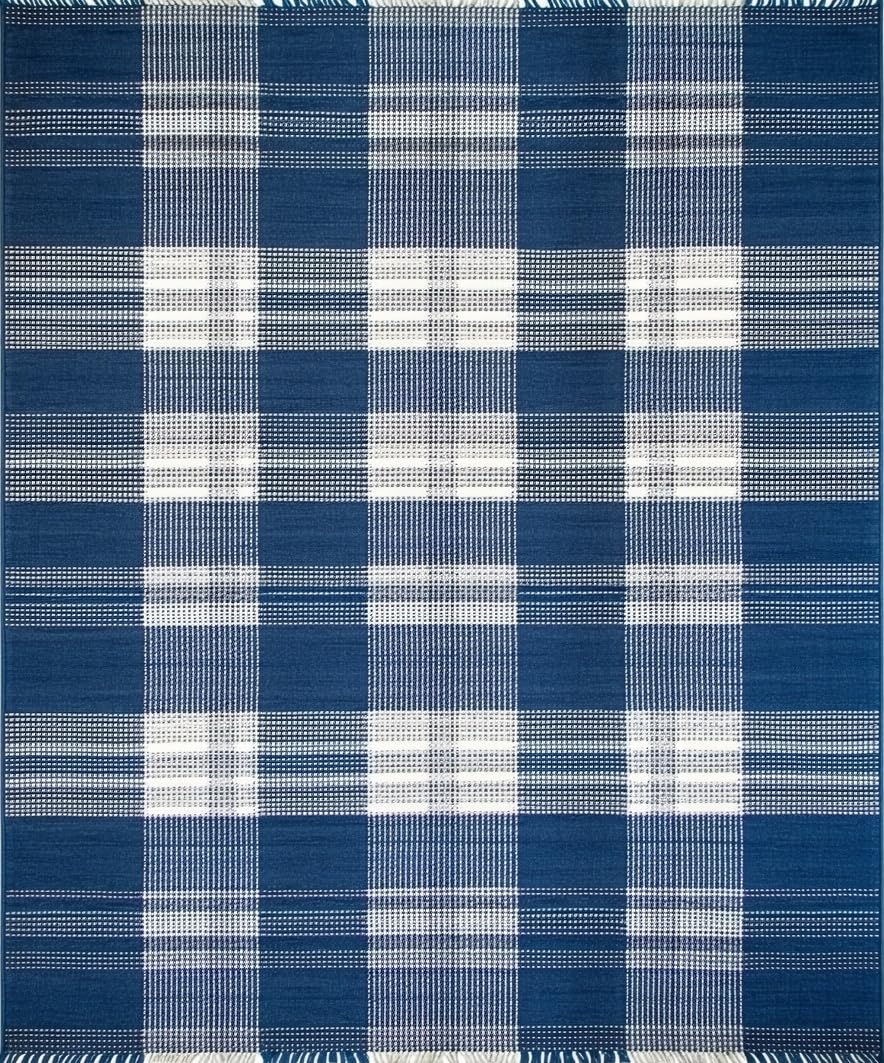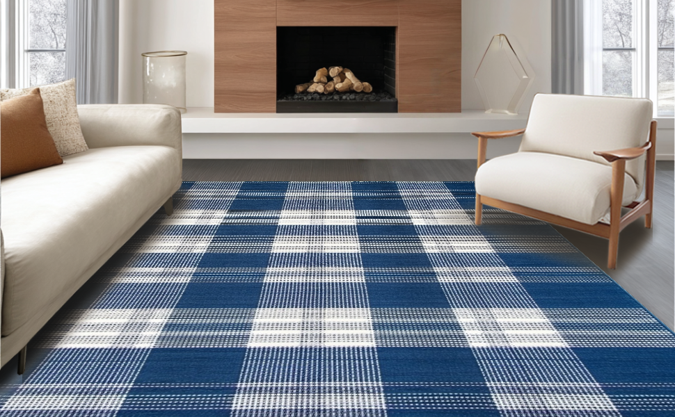 Ultra Soft Area Rug, Non Slip, Stain Resistant, Washable Area Rugs for Living Room, Bedroom, Rustic Blue Checkered Aesthetic(Blue) Overview: