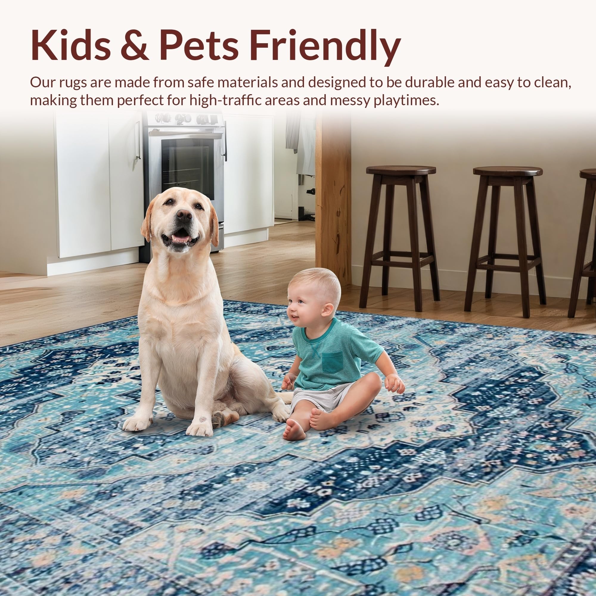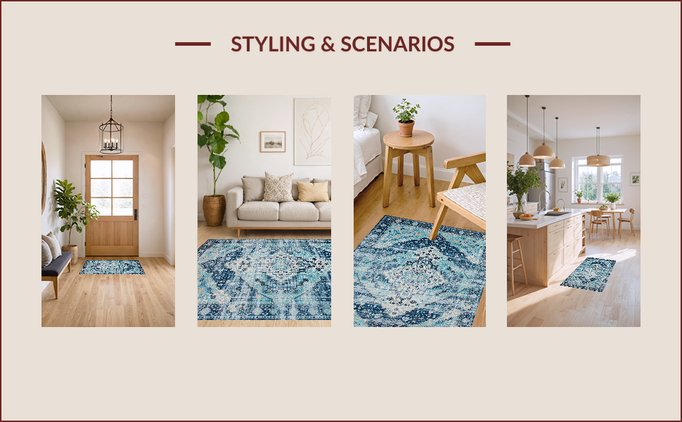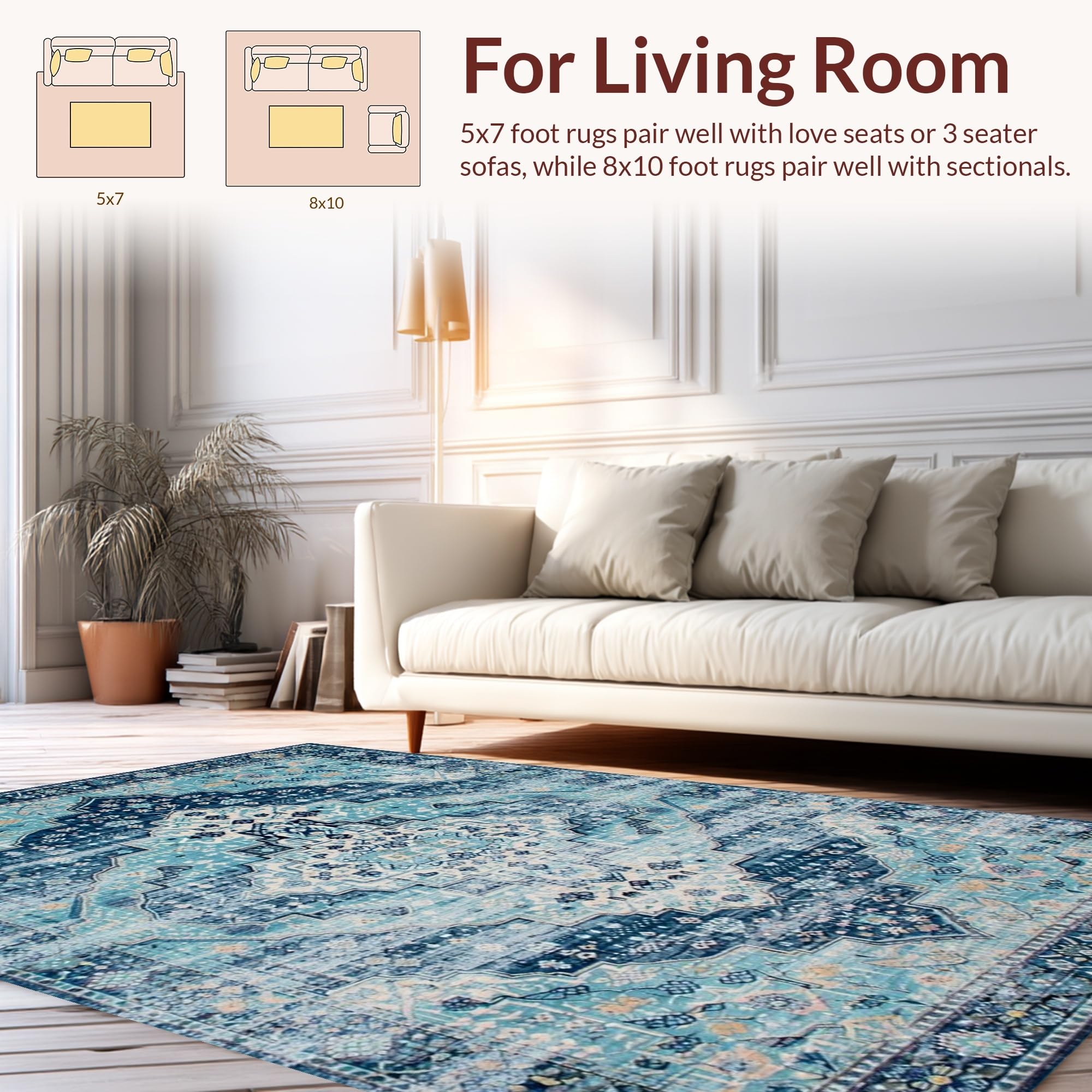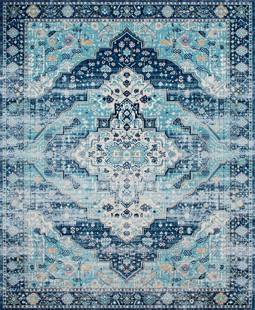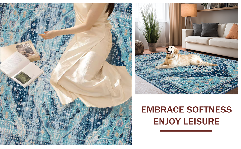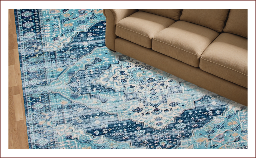 Ultra Soft Area Rug, Non Slip, Stain Resistant, Washable Area Rugs for Living Room, Bedroom, Rustic Blue Geometric Trellis(Blue) Overview: