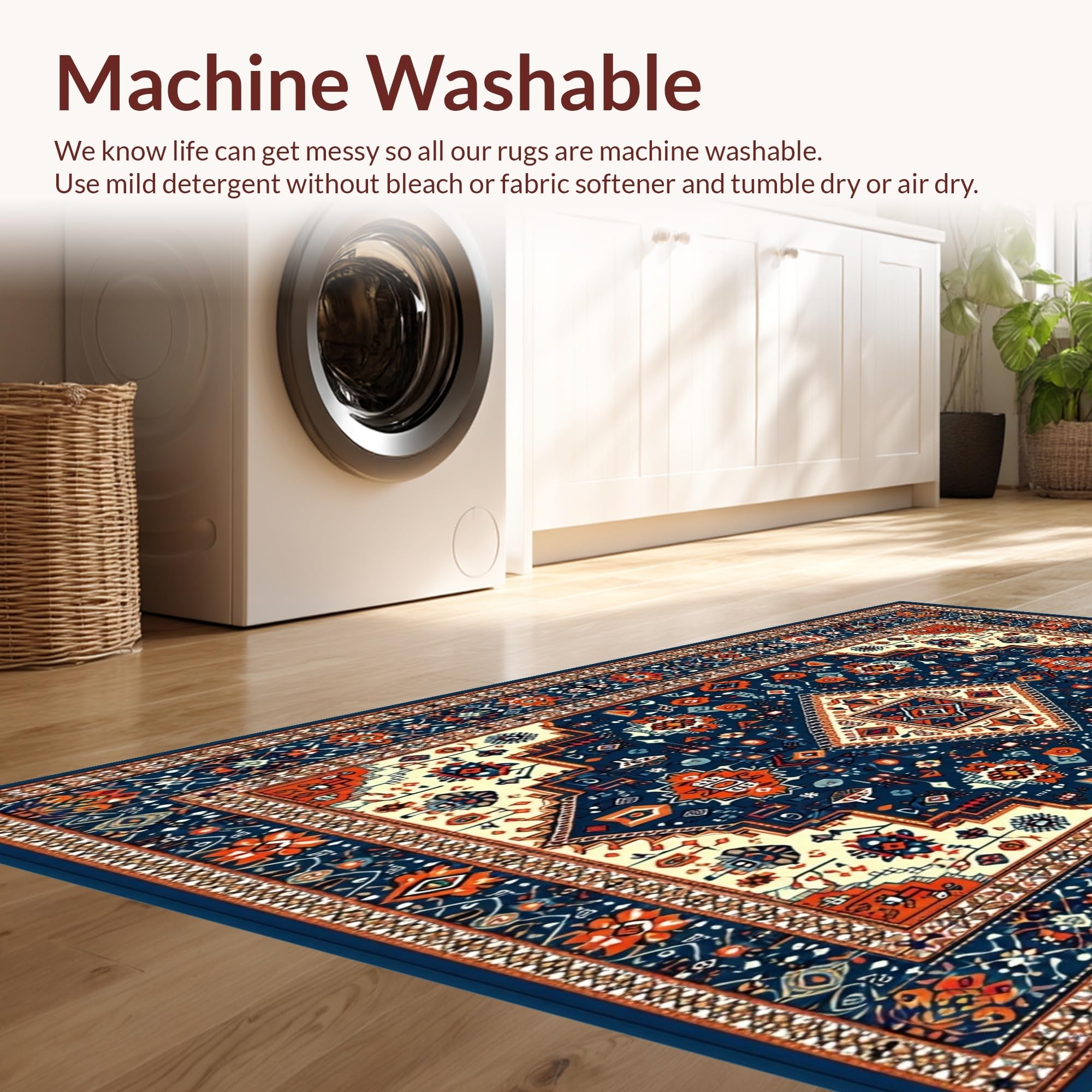- Machine Washable: Our rugs can be easily thrown in the wash machine.