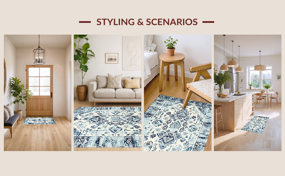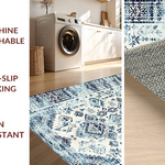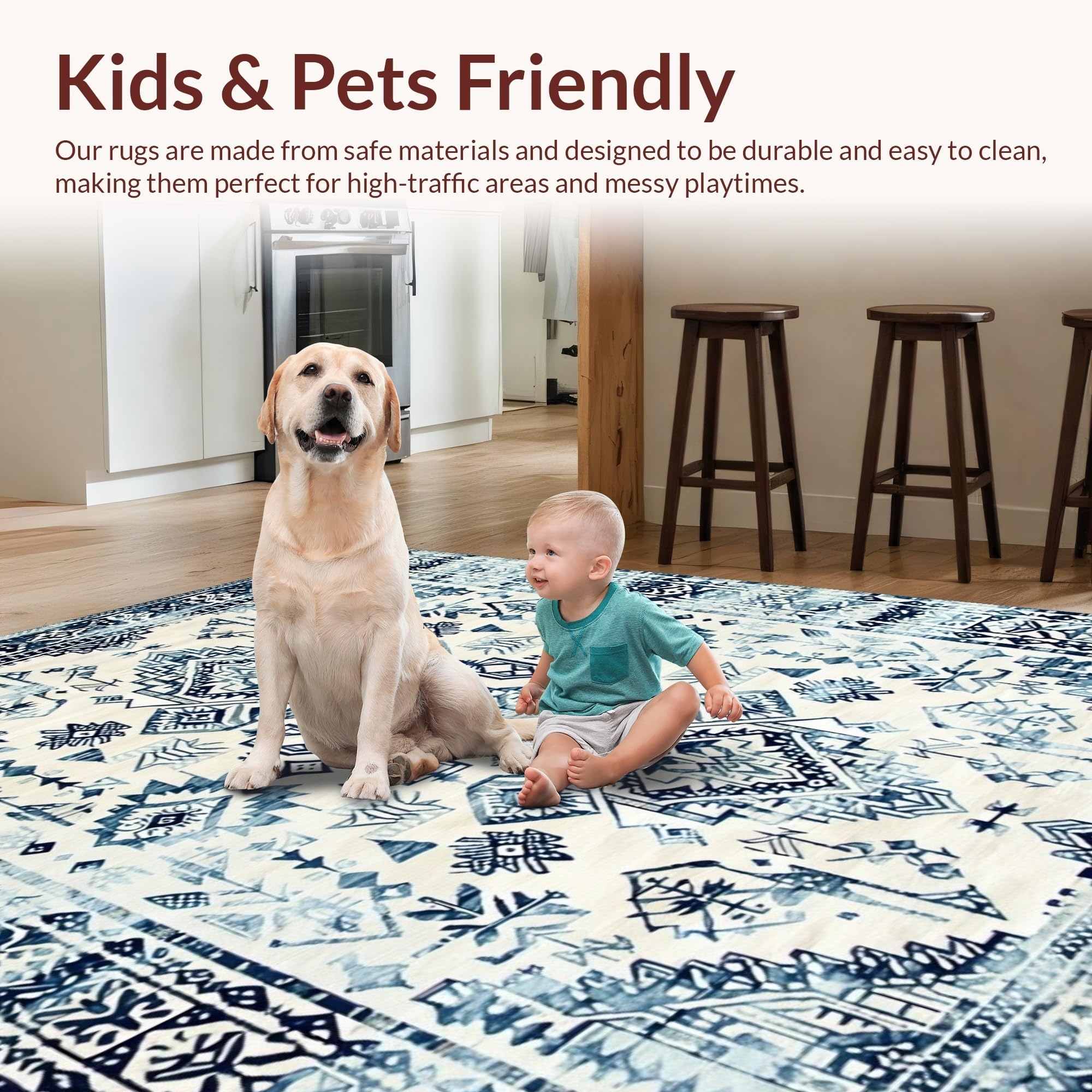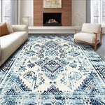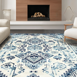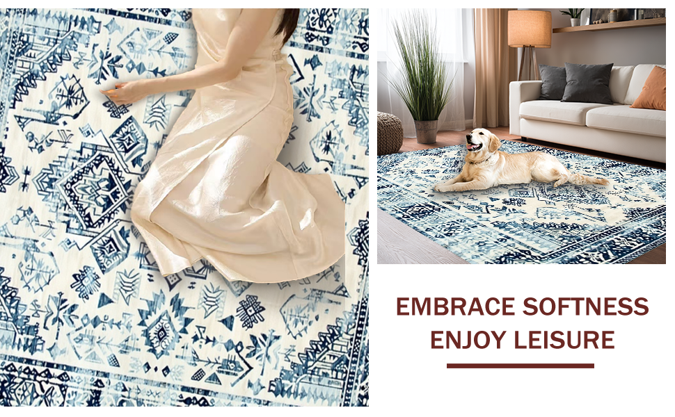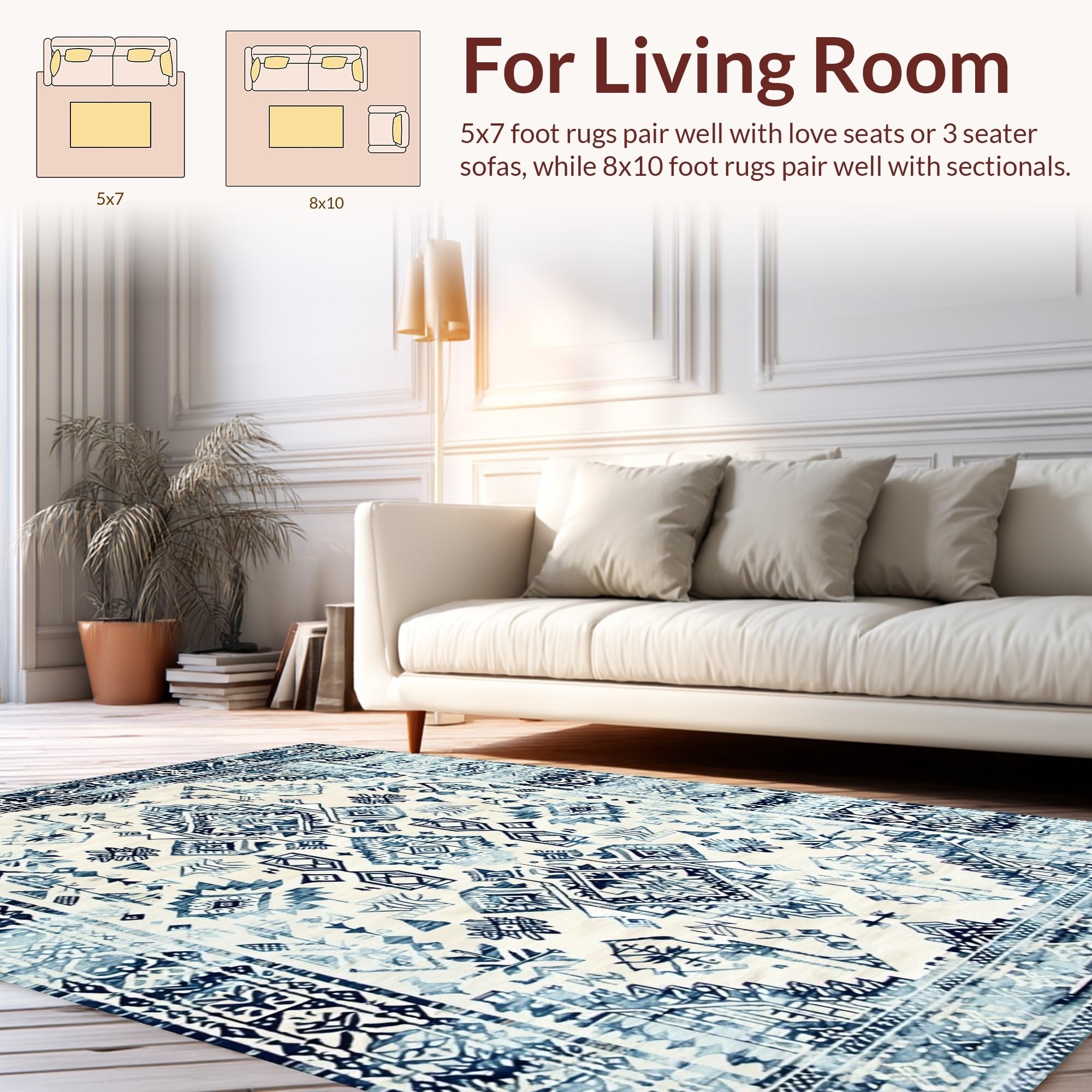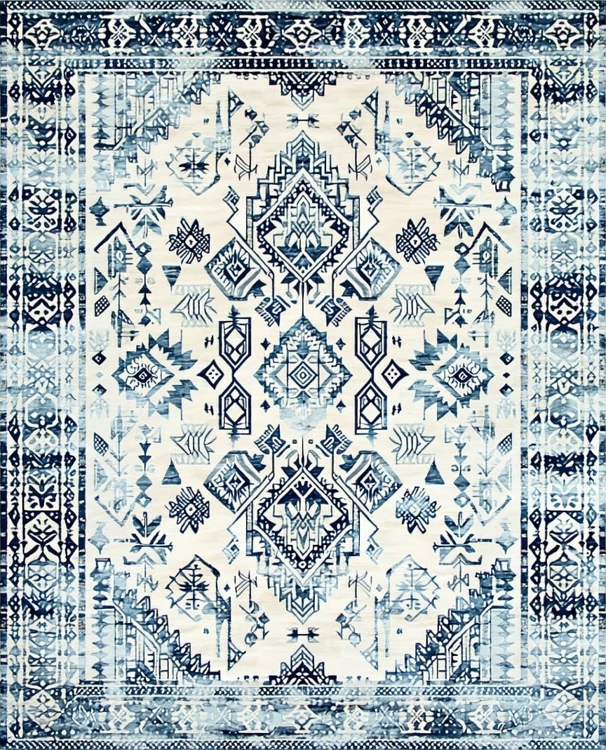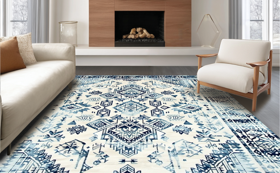 Ultra Soft Area Rug, Non Slip, Stain Resistant, Washable Area Rugs for Living Room, Bedroom, Rustic Blue Tones with Artistic Flair(White) Overview: