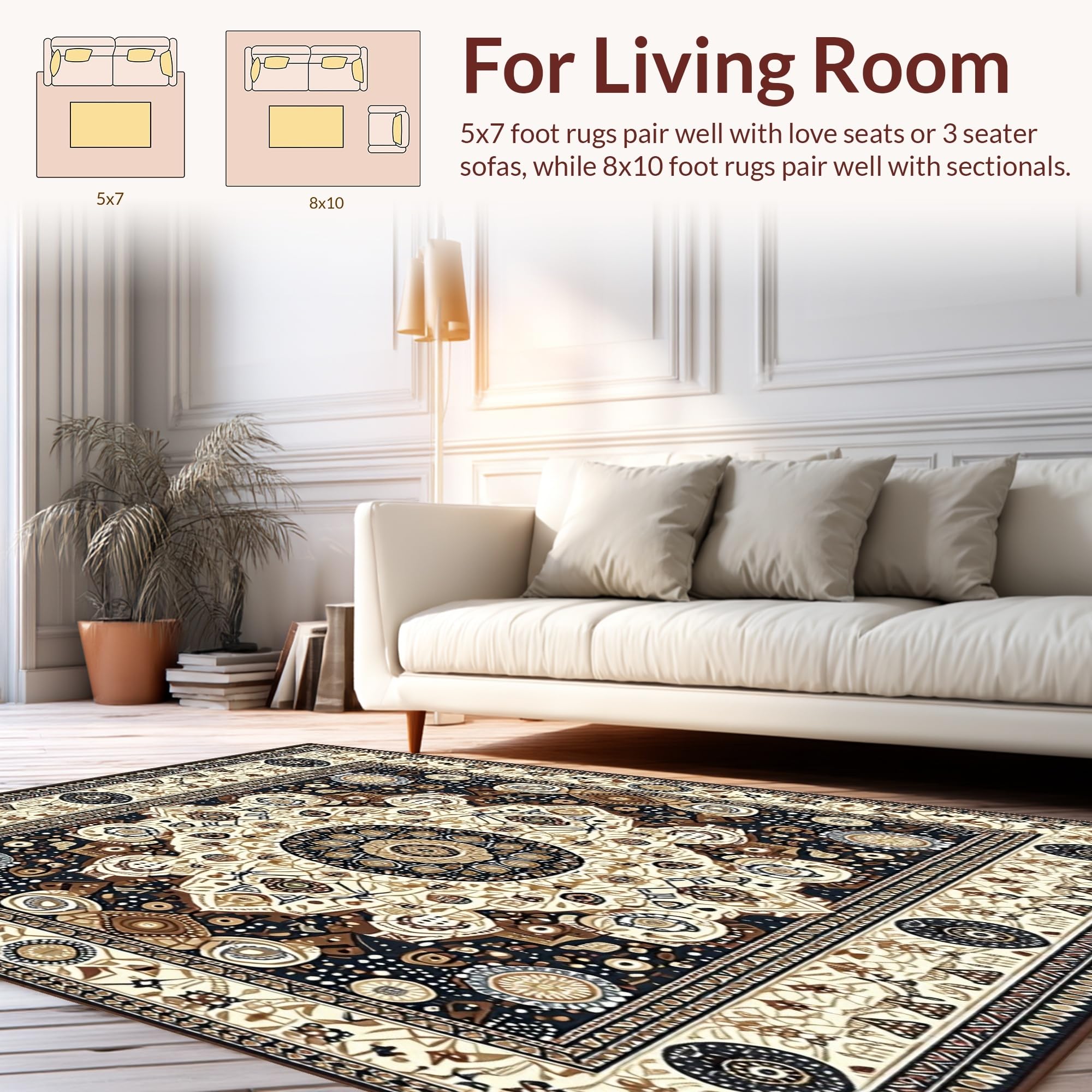 Ultra Soft Area Rug, Non Slip, Stain Resistant, Washable Area Rugs for Living Room, Bedroom, Rustic Boho Area(Beige) Overview:
