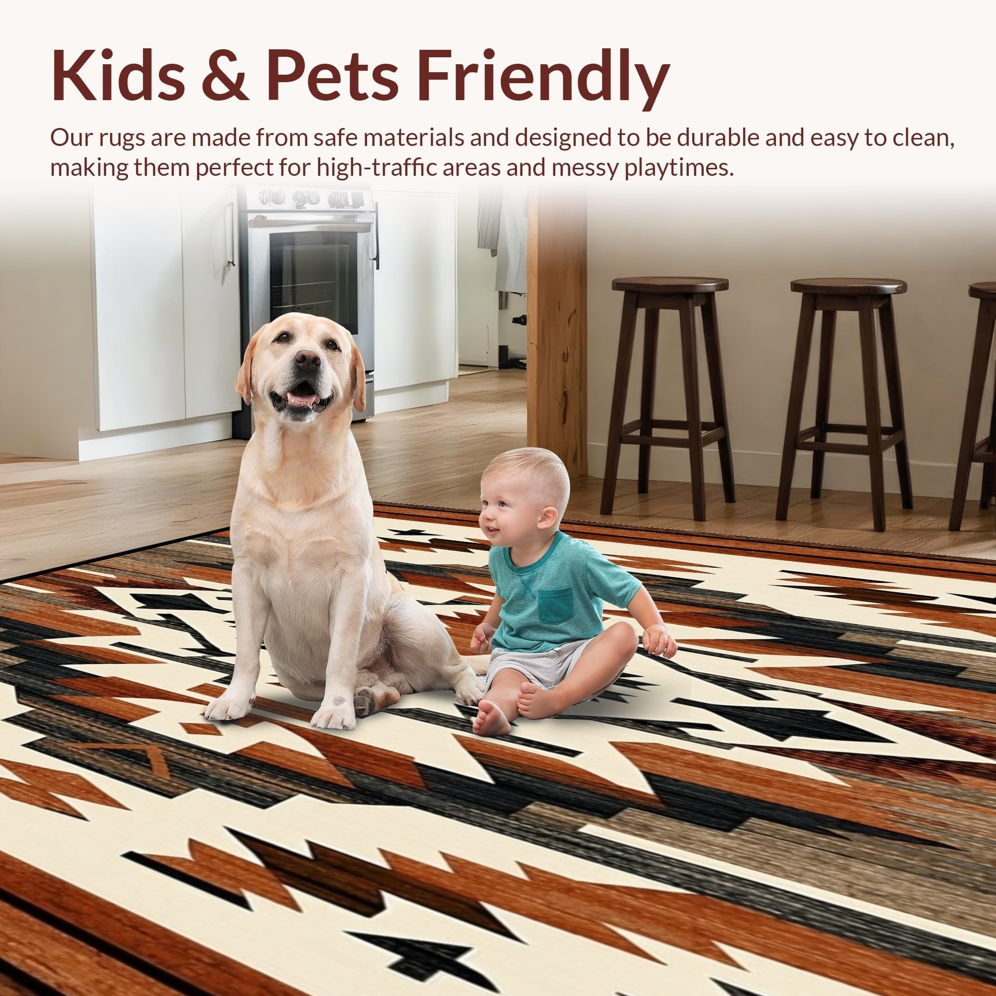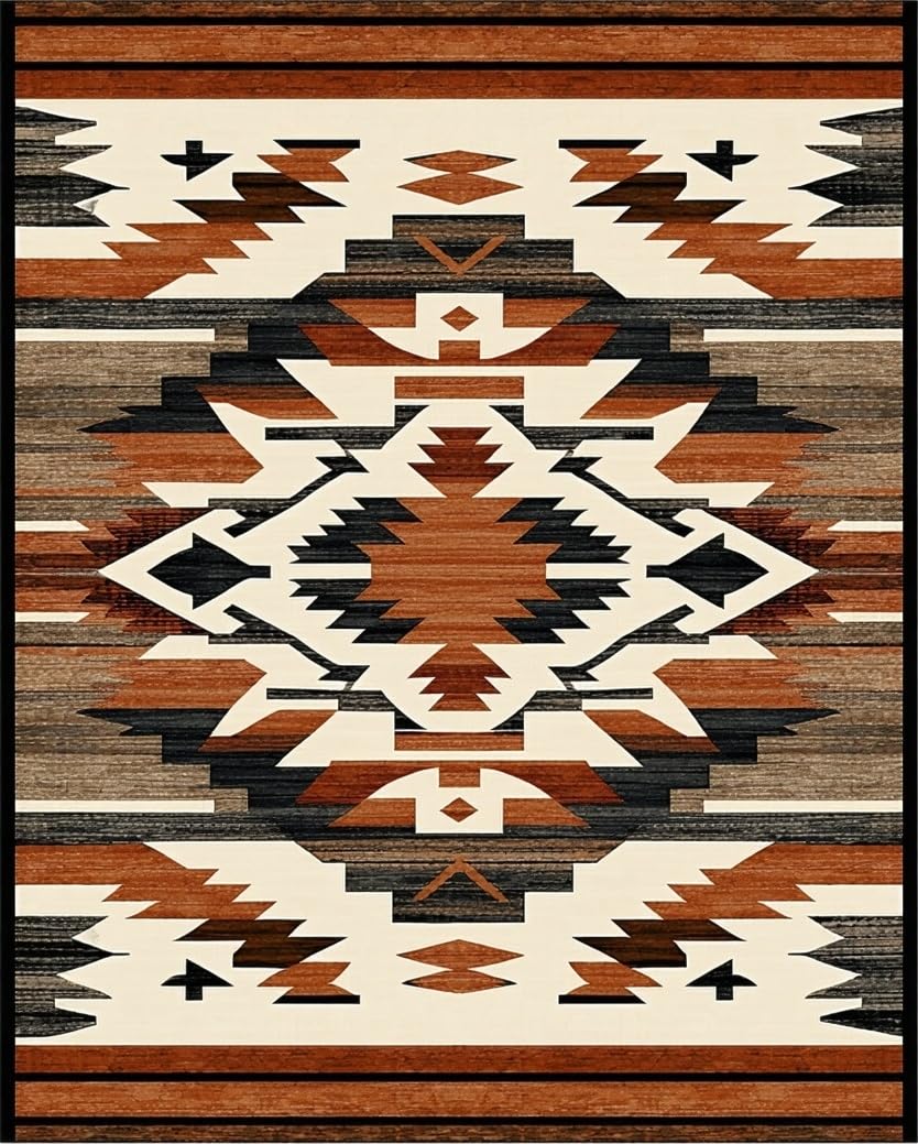 Ultra Soft Area Rug, Non Slip, Stain Resistant, Washable Area Rugs for Living Room, Bedroom, Rustic Boho Brown & Beige Southwestern Style Earthy Tones(Brown) Overview: