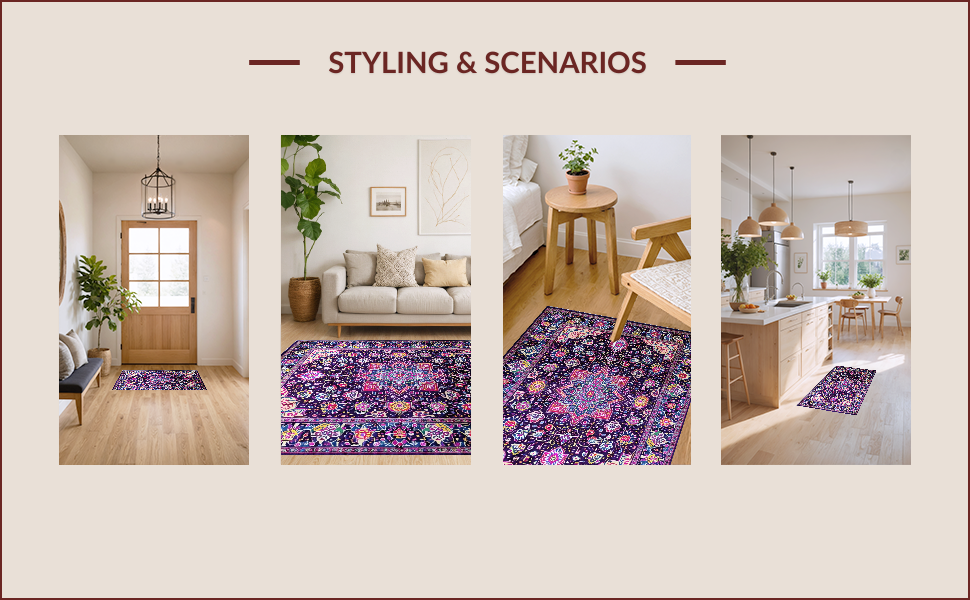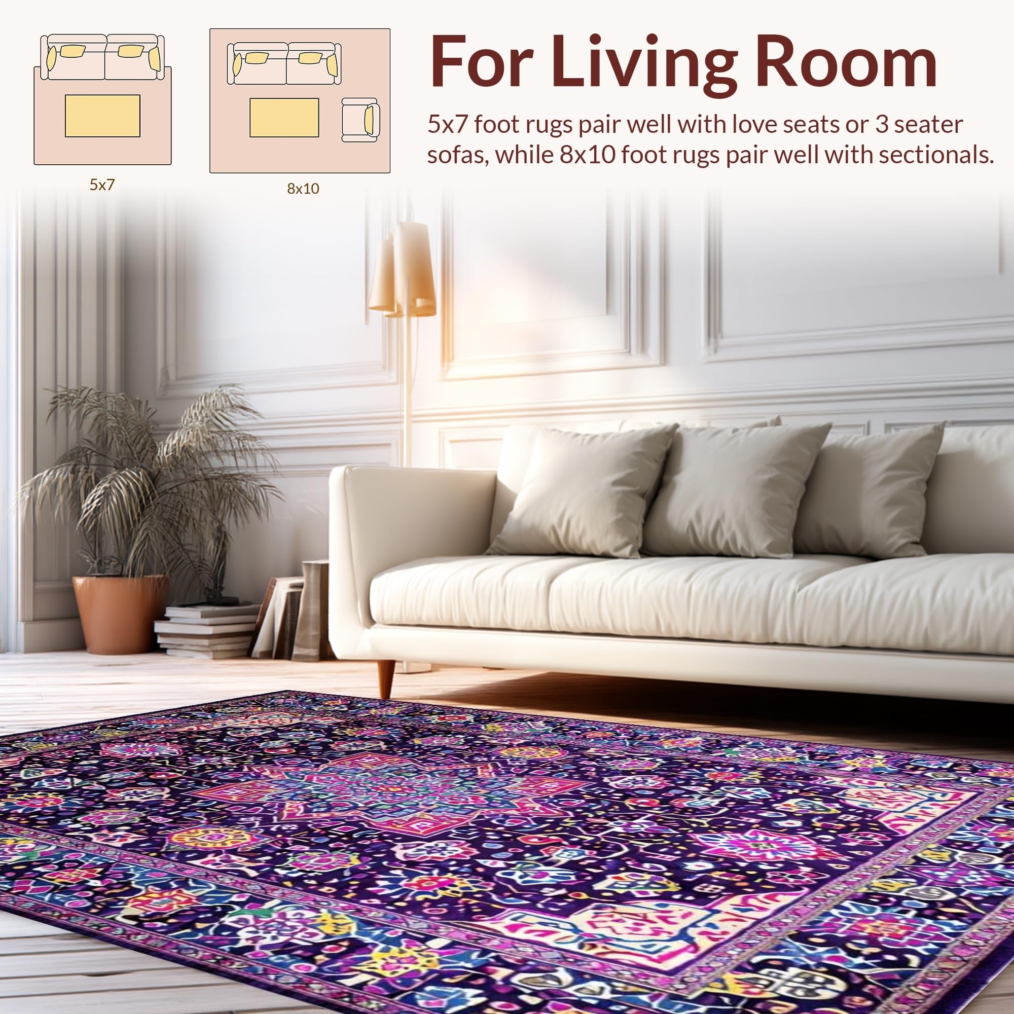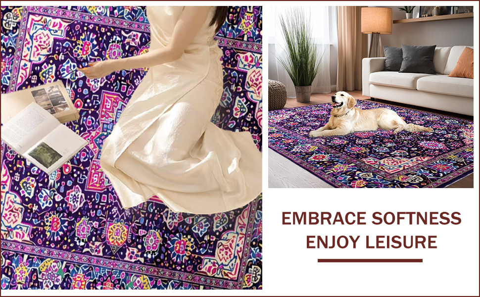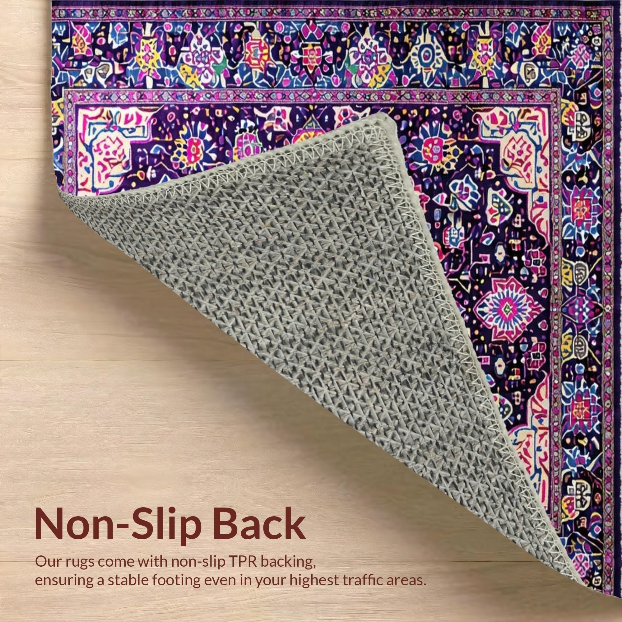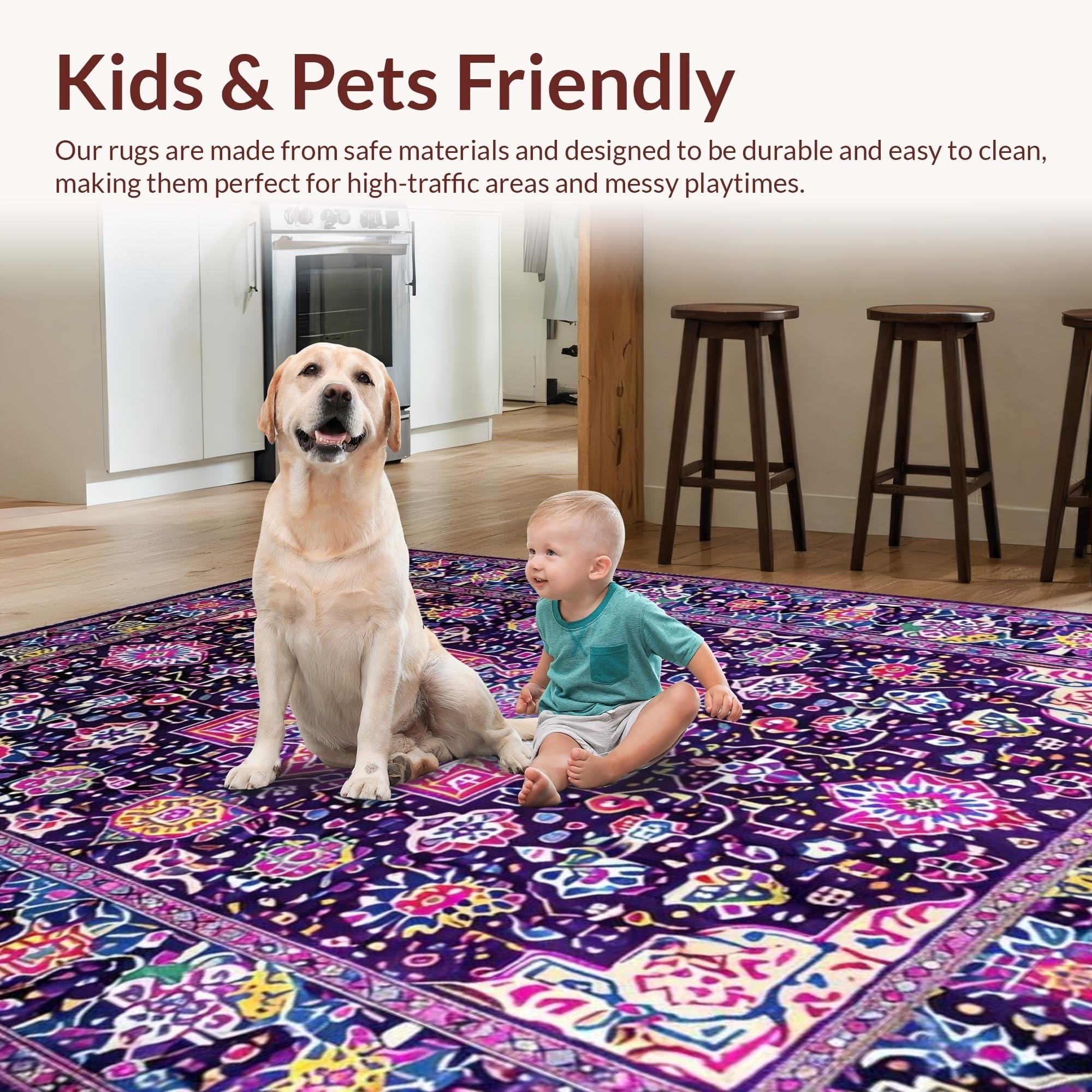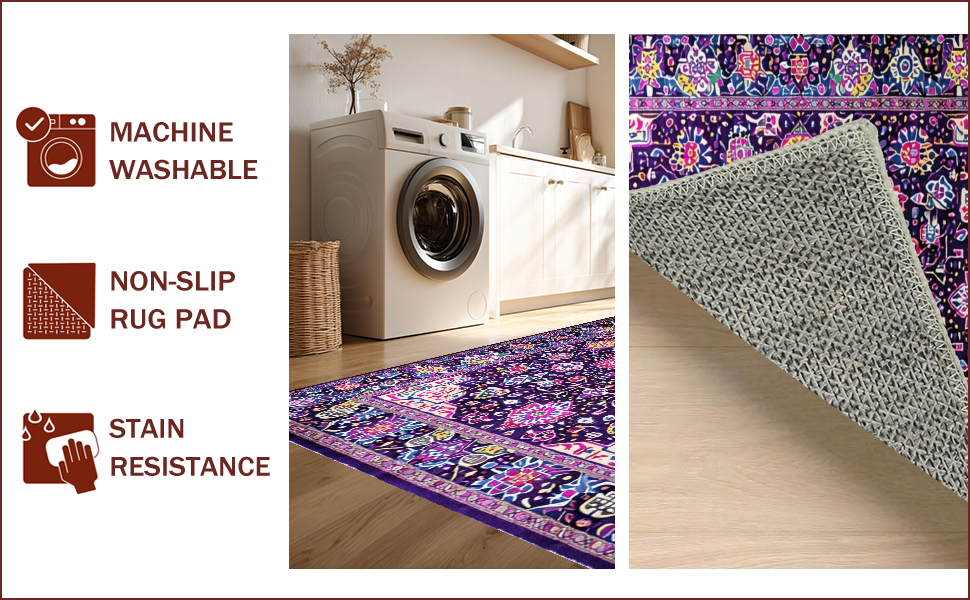 Ultra Soft Area Rug, Non Slip, Stain Resistant, Washable Area Rugs for Living Room, Bedroom, Rustic Boho Tiled Pattern(Purple) Overview: