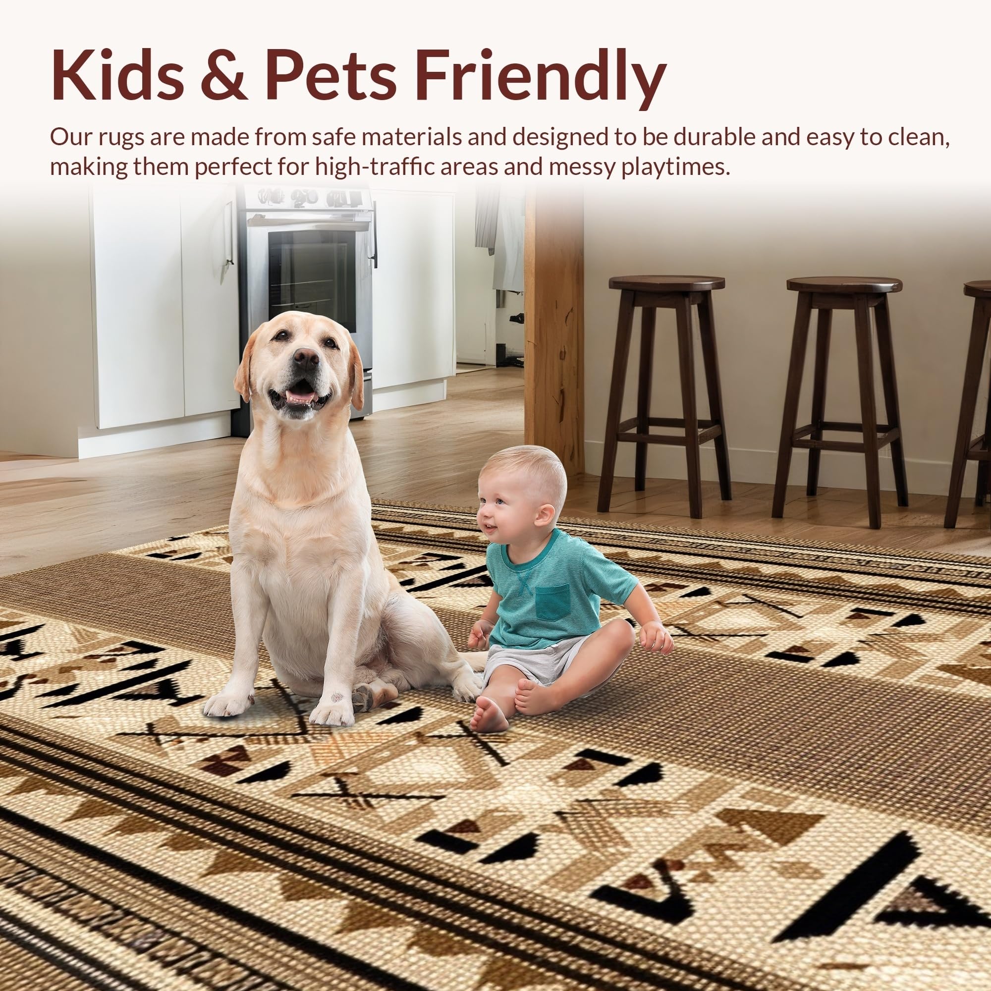 Ultra Soft Area Rug, Non Slip, Stain Resistant, Washable Area Rugs for Living Room, Bedroom, Rustic Brown Cream Man Cave Fishing Rug(Beige) Overview: