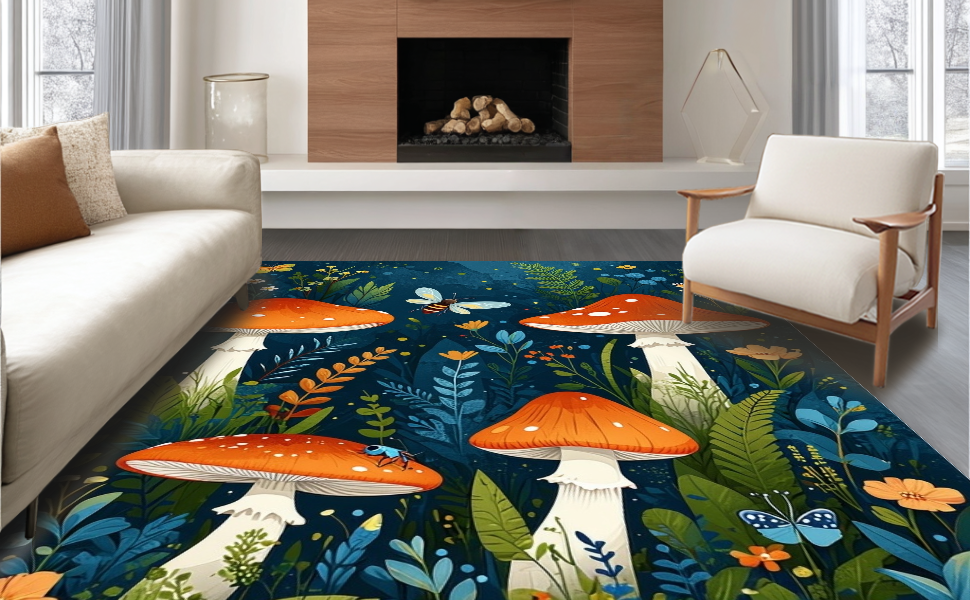 Ultra Soft Area Rug, Non Slip, Stain Resistant, Washable Area Rugs for Living Room, Bedroom, Rustic Butterfly and Flower Medley(Blue) Overview:
