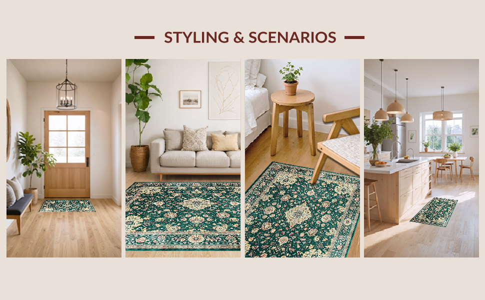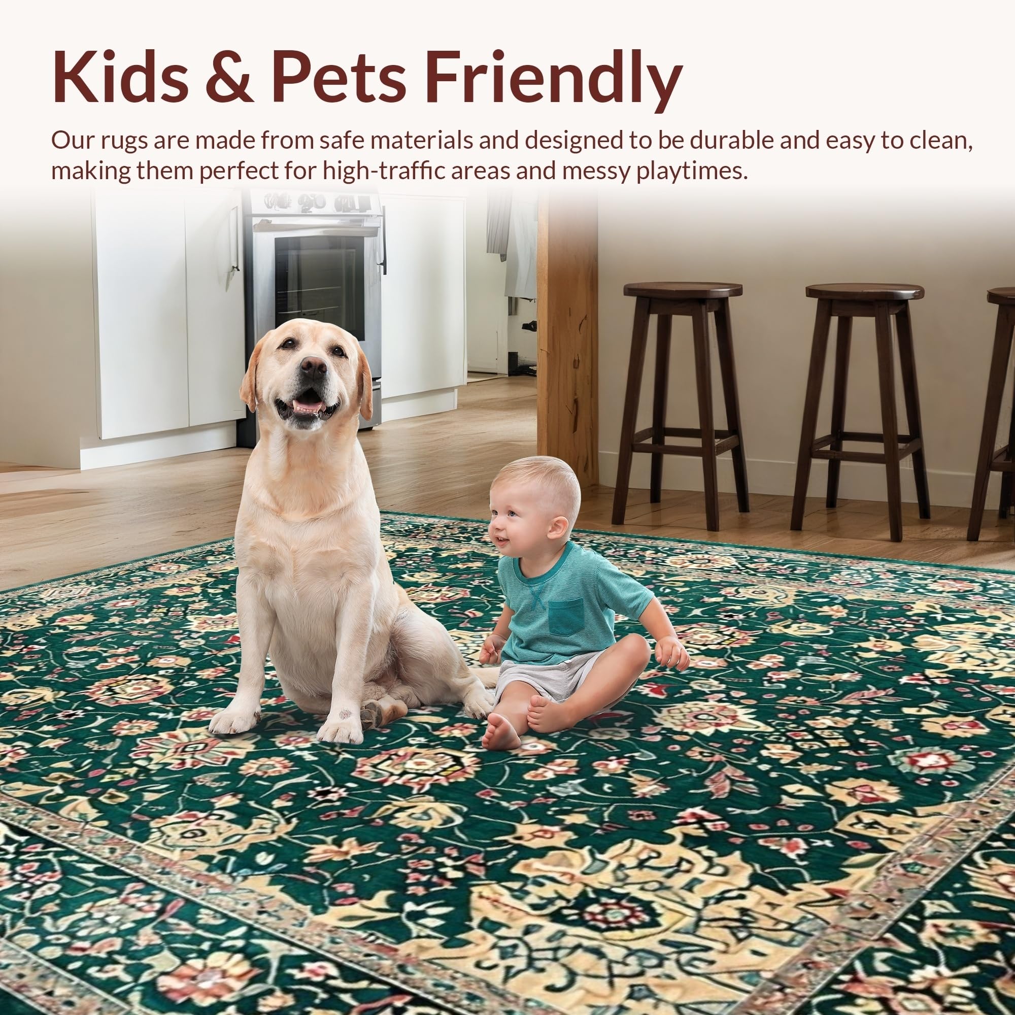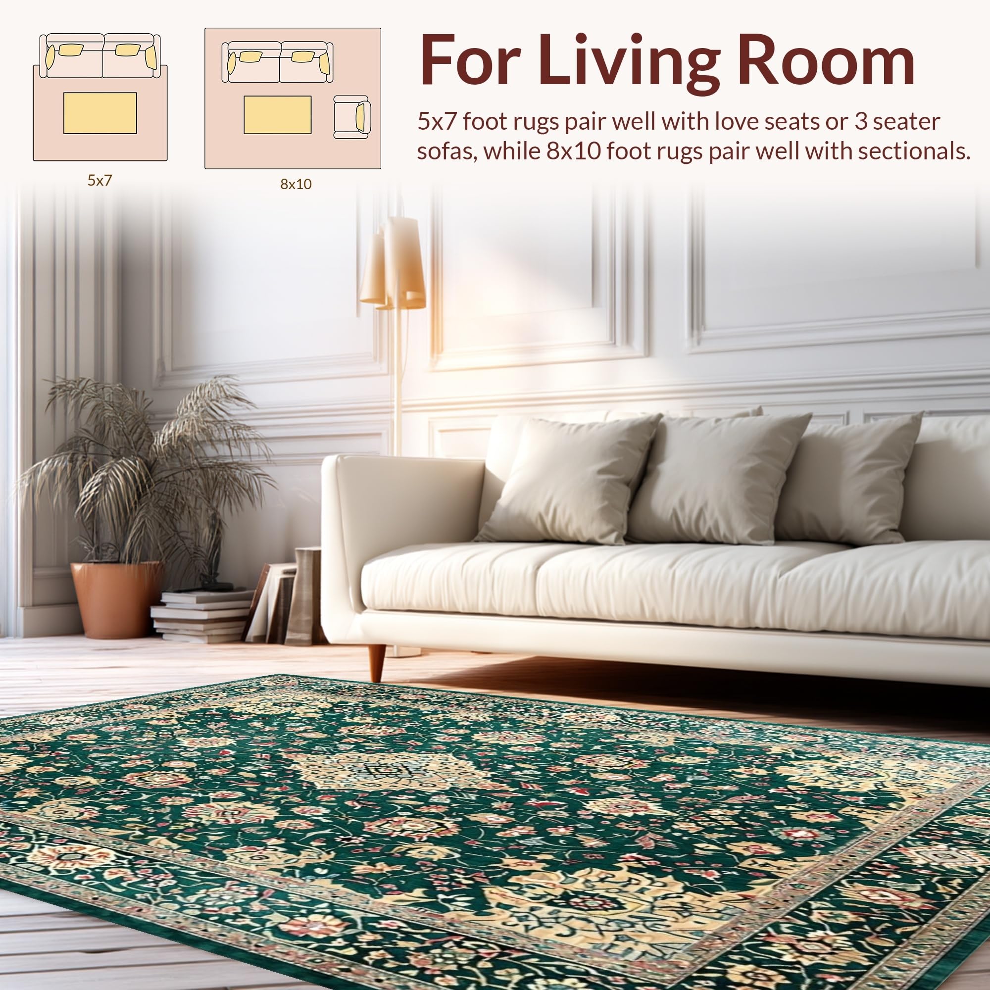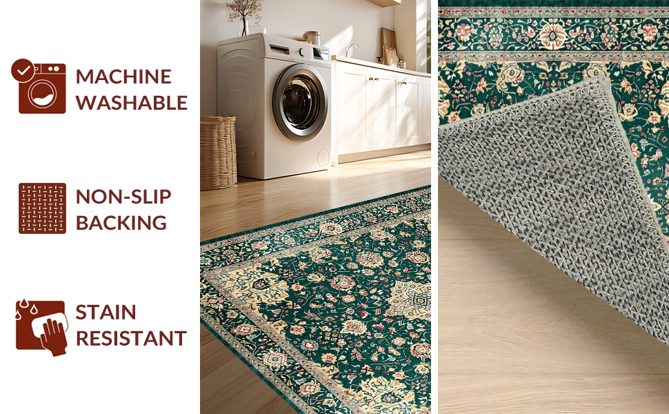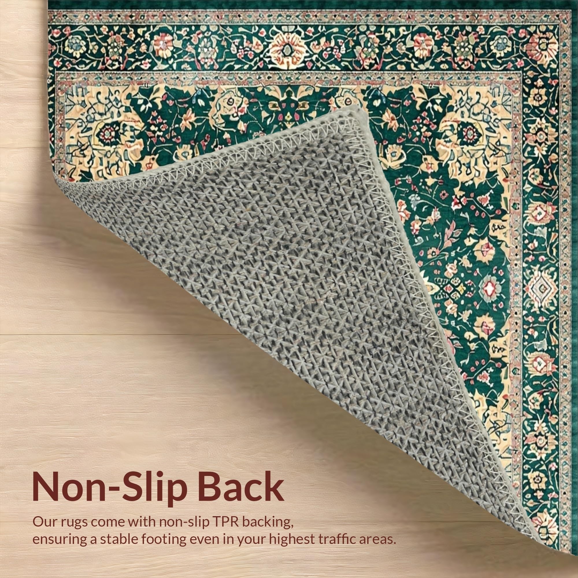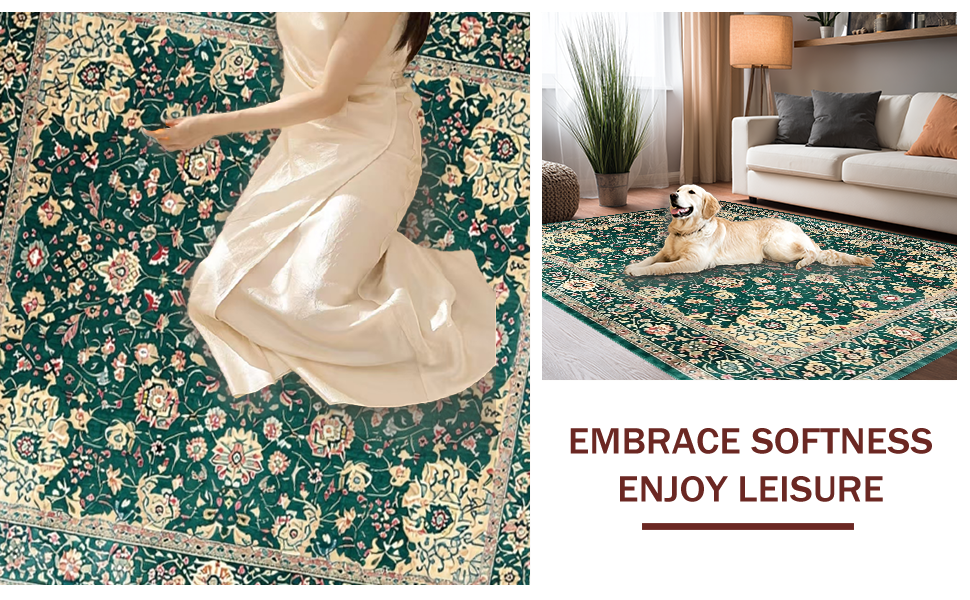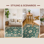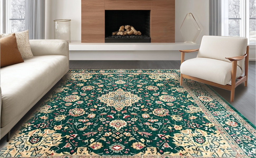 Ultra Soft Area Rug, Non Slip, Stain Resistant, Washable Area Rugs for Living Room, Bedroom, Rustic Centerpiece with Floral Design(Green) Overview: